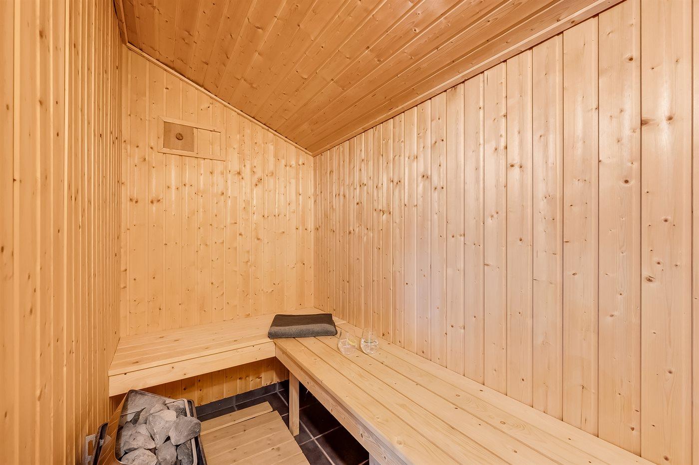 Der er 1 badeværelse med bruseniche og 1 toilet.. Der er gulvvarme på 1 badeværelse. I saunaen er der mulighed for afslapning.