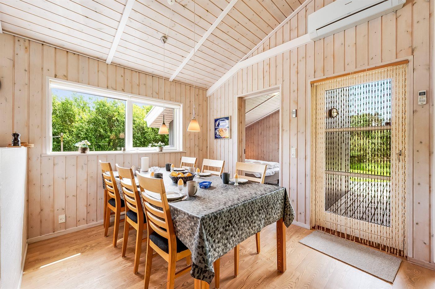 Sommerhuset egner sig til 6 personer. Ferieboligen er på 91 m² og er bygget i 2005. Det er ikke tilladt at medbringe husdyr. Ferieboligen er udstyret med energibesparende varmepumpe. Ferieboligen har vaskemaskine. Frysekapacitet på 60 liter. Der er desuden brændeovn. Til de små er der 1 stk. barnestol.