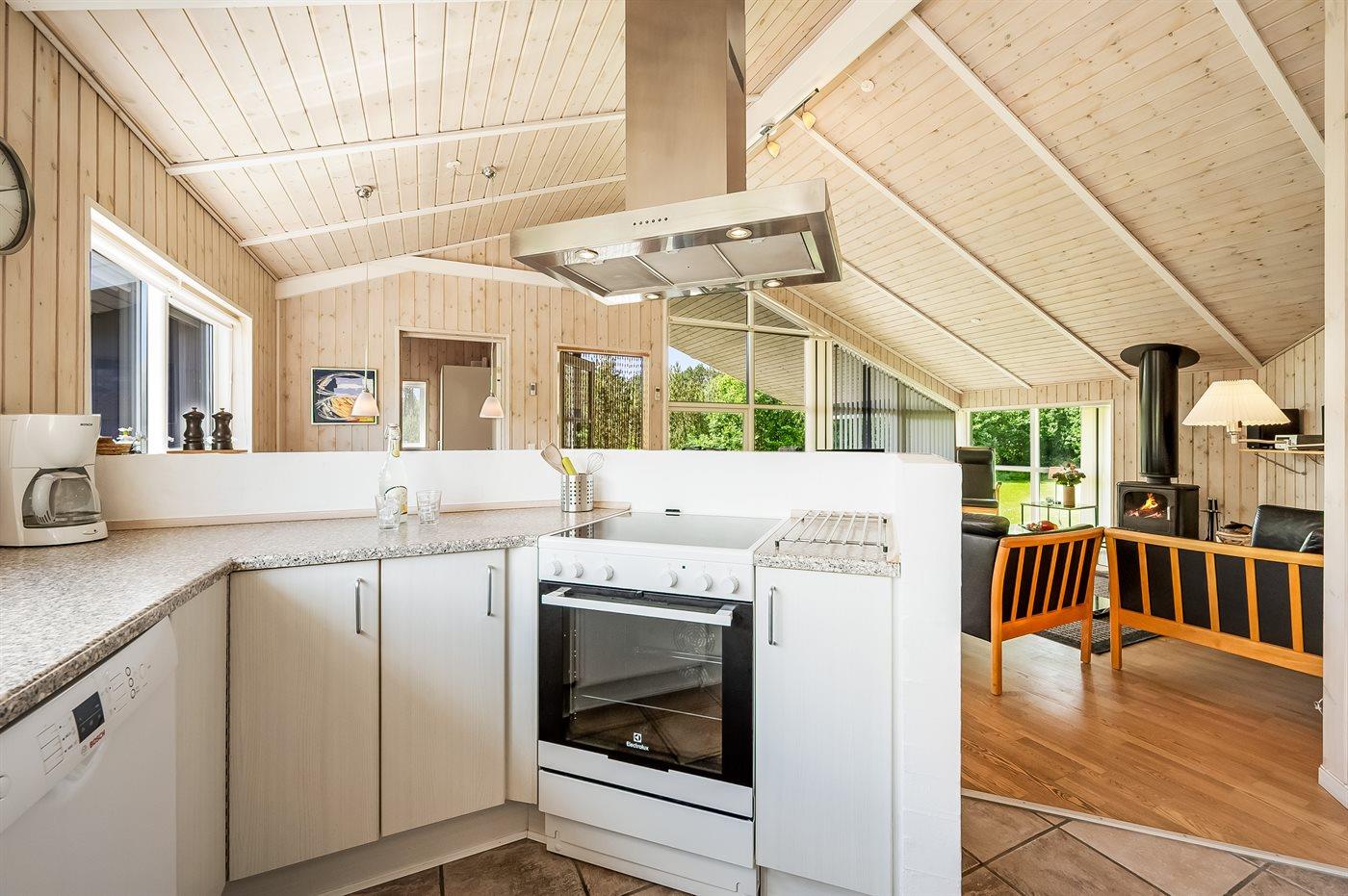 Køkkenet er udstyret med 1 køleskab. Der er 4 keramiske kogeplader, varmluftovn, mikrobølgeovn samt opvaskemaskine.