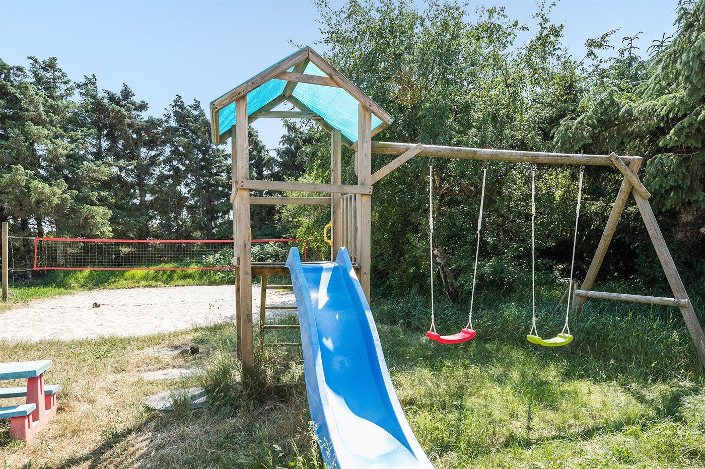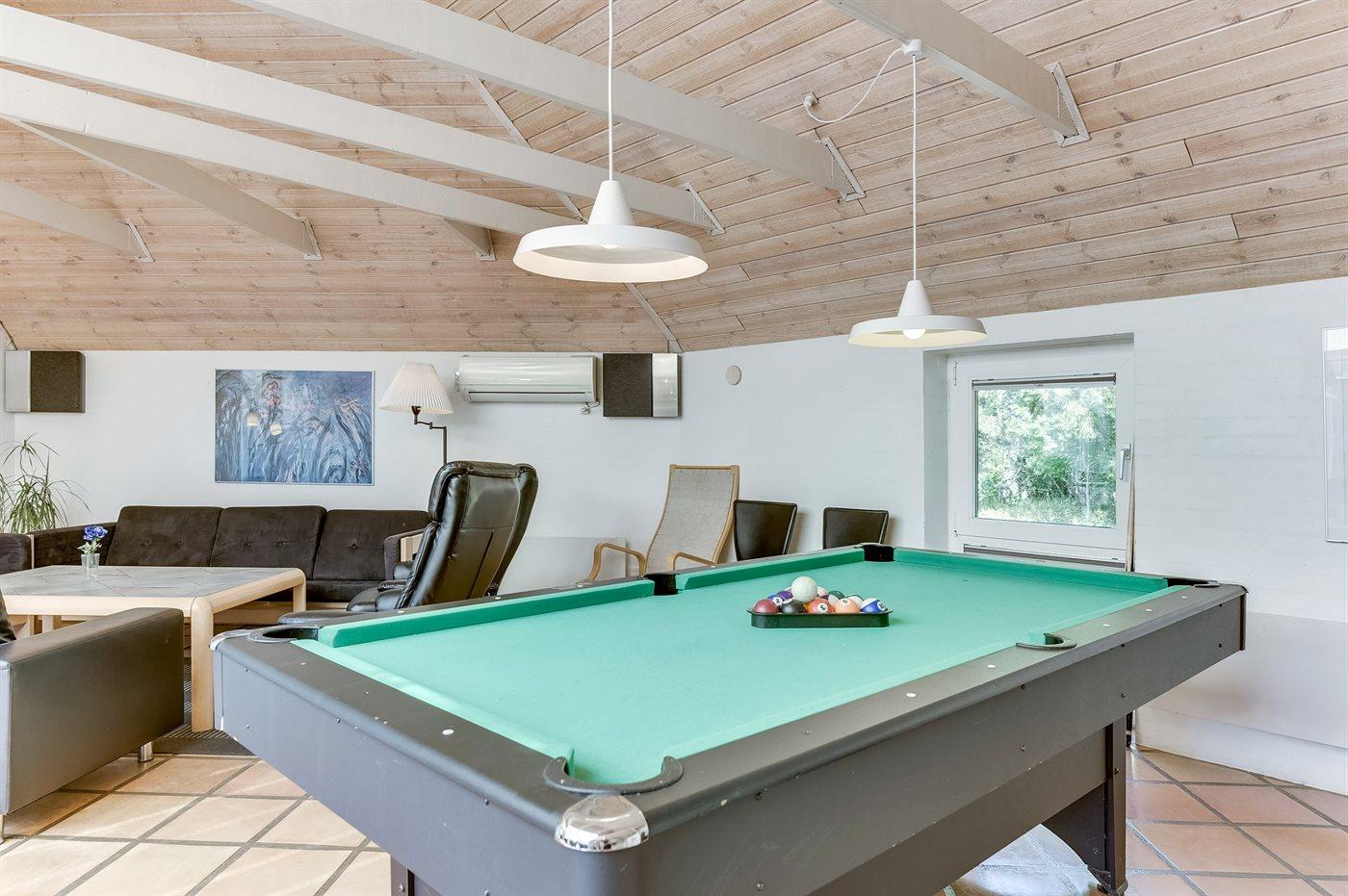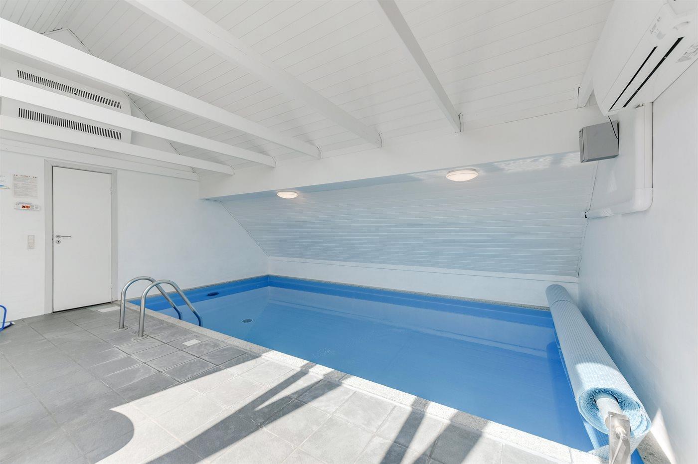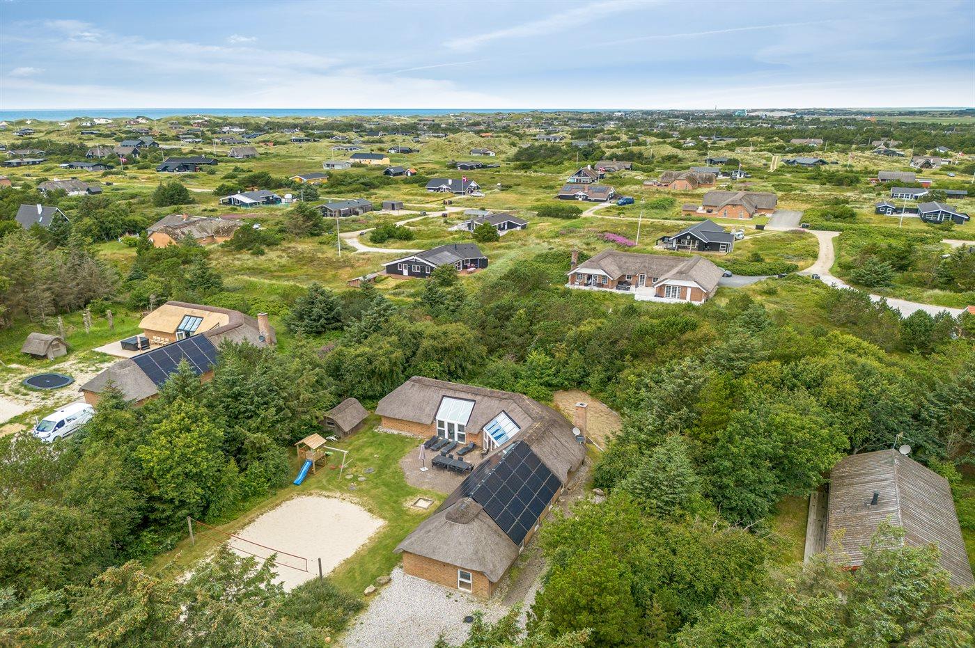 BESKRIVELSE. Dette store swimmingpool-sommerhus med rigtig mange aktivitetsmuligheder både inde og ude er perfekt til den store familie og til flere familier med børn året rundt. Varmepumper til både rum- og pool-opvarmning sikrer et lavt energiforbrug. INDRETNING. Centralt i sommerhuset er et stort kombineret køkkenalrum og stue, der har store ovenlysvinduer og højt til kip, hvilket gør huset særligt lyst, rummeligt og behageligt at opholde sig i. Stuen har brændeovn, poolbord, fladskærms TV, og meget mere. I den ene ende af huset finder man det store poolrum med en swimmingpool på 18 m2 m/svømmetræner, samt et spabad. Huset har to nye moderne badeværelser med toilet og bruser, hvorfra der fra det ene er adgang til saunaen. I den modsatte ende af huset er der fire soveværelser med dobbeltsenge, samt 2 hemse(soverum 5+6), som begge har 2 sovepladser. I forgangen er der vaskemaskine, tørretumbler og fiskerensebord. Huset har klinkegulve overalt. Der er desuden gratis internet i sommerhuset. UDENDØRS. Dette dejlige sommerhus er pragtfuldt beliggende på en stor lukket naturgrund med lægivende træer og buske blot 700 m fra Vesterhavet. På grunden er der beachvolleybane, petanquebanen, legetårnet, gynger og sandkasse. Der er en stor sydvestvendt terrasse med gode lækroge. Der er kvalitets havemøbler, parasol, grill og liggestole på terrassen. BELIGGENHED. Huset er beliggende for enden af blind vej i et roligt sommerhusområde kun 400 m fra fiskesø og 2 km fra Søndervig centrum. Hele området omkring sommerhuset og Søndervig er fuld af aktivitetsmuligheder samt cykle- og vandrestier. BØRNE-VENLIGT. Sommerhuset har ud over de gode udendørsfaciliteter for børn også 2 barnesenge, 2 højstole og et væghængt puslebord. LYSTFISKER-VENLIGT. Med et fiskerensebord og 100 L fryser er sommerhuset endvidere yderst lystfisker-venligt.