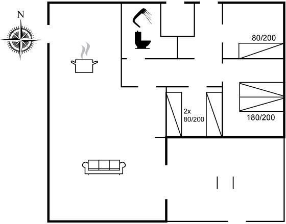 Der er i alt 3 soveværelser. Sovepladserne fordeler sig på: 2 sovepladser i dobbeltseng. 3 sovepladser i enkeltsenge.