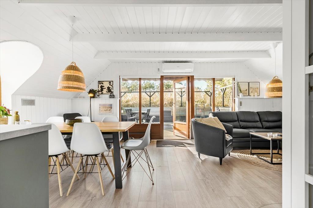 I har 73 velindrettede kvadratmeter til rådighed, når I holder ferie på Hvidbjergvej 4 i Søndervig. Inden døre i det totalrenoverede sommerhus hviler en skøn atmosfære, og ude kan I se frem til mange gode hyggestunder i den grønne, læfyldte have.