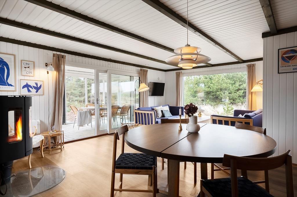 Det er nemt at komme i feriestemning, når I tilbringer dagene på Nordsøvej 466 lige syd for Søndervig. Sommerhuset er nemlig hyggeligt indrettet og der er der er lagt op til mange gode stunder inden døre, og ude kan I nyde livet på den ugenerede naturgrund, der byder på både vildmarksbad og petanquebane.