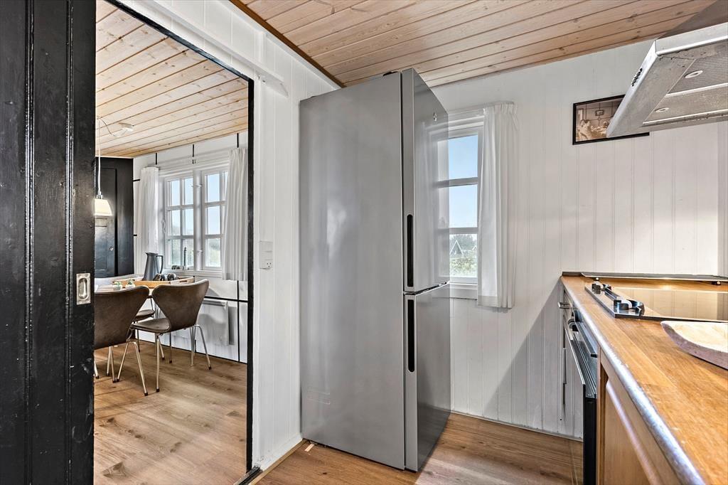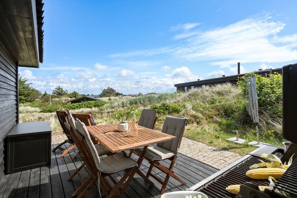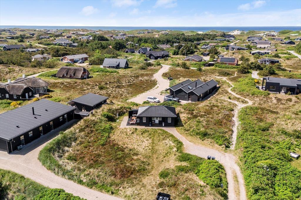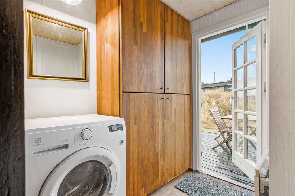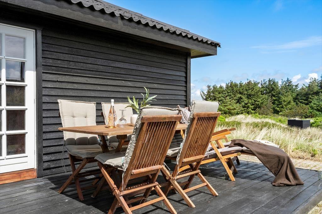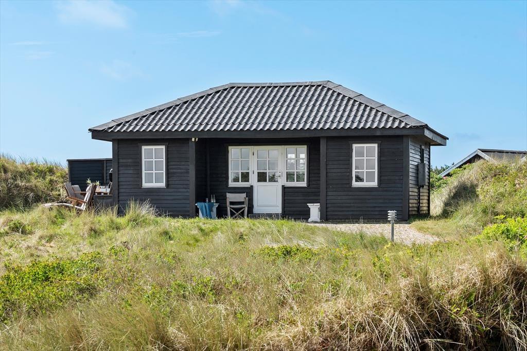 Sommerhus i Søndervig Strand og By, Vestjylland, med plads til 4 voksne og 1 husdyr. Der er en hyggelig indretning, og du finder desuden vaskemaskine, opvaskemaskine og tørretumbler i boligen.