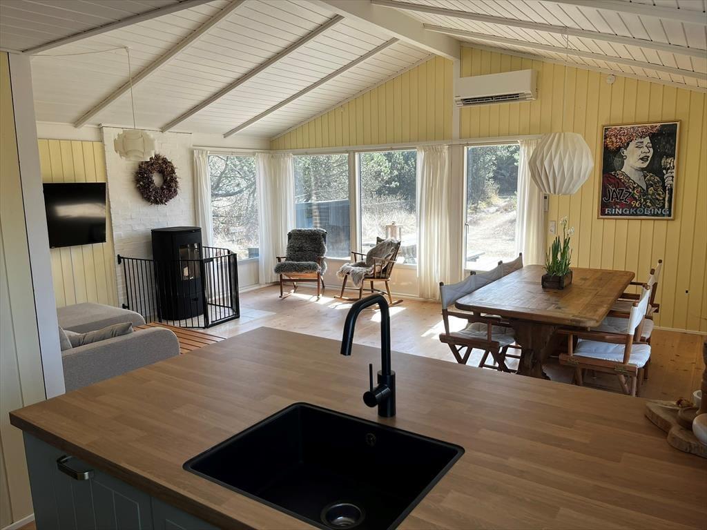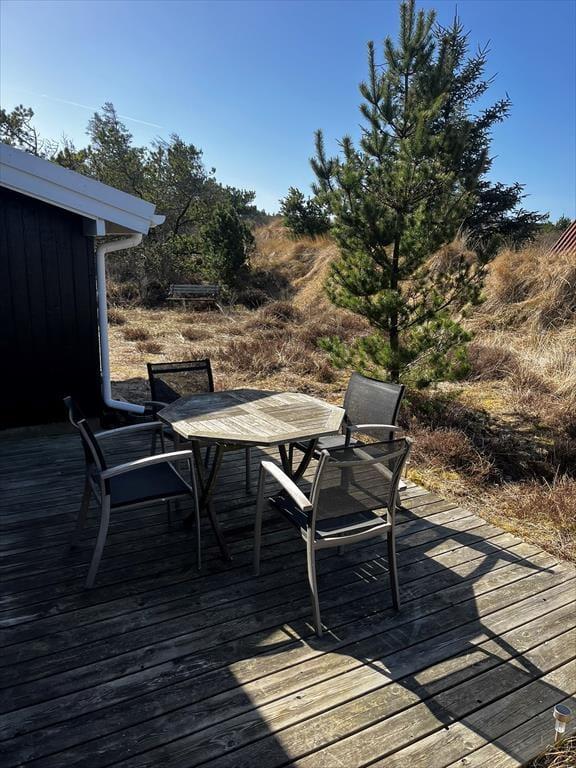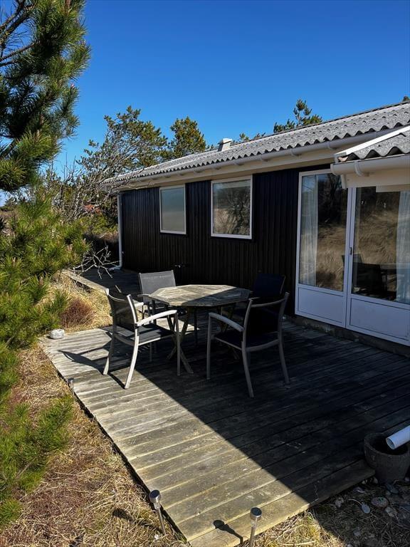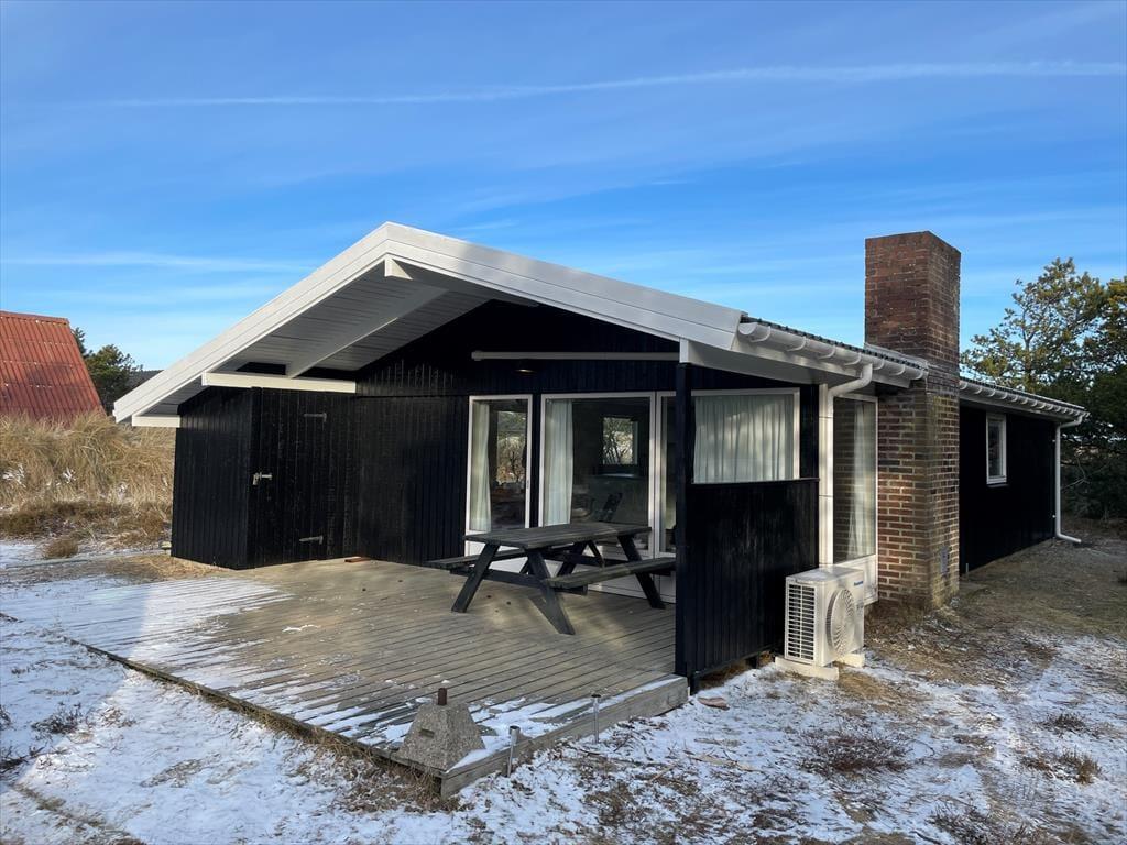 Hyggeligt sommerhus i Søndervig med brændeovn, internet og terrasse tæt på strand og by.