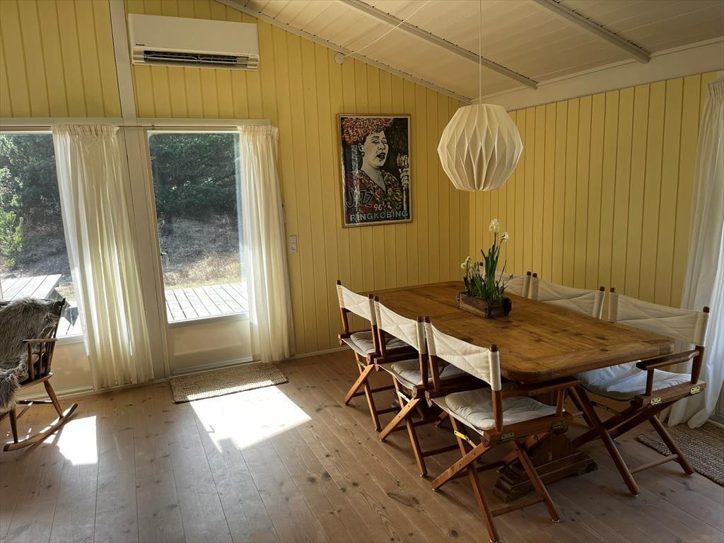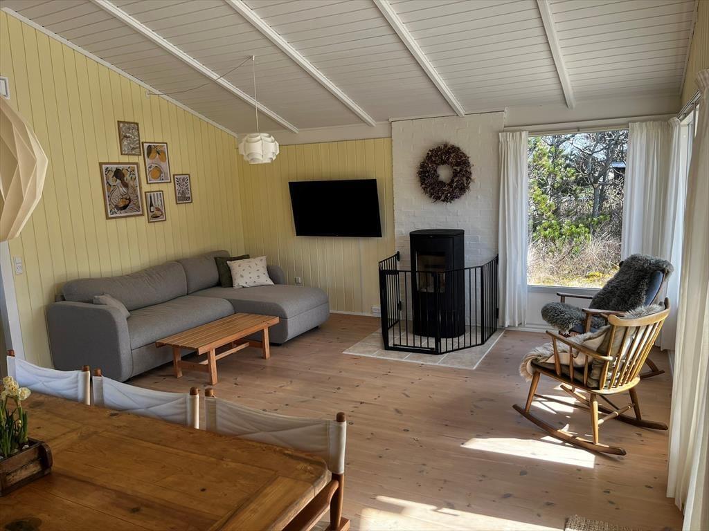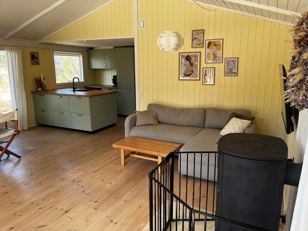 Sommerhus i Søndervig Strand og By, Vestjylland, med plads til 5 voksne. Der er en hyggelig indretning med bl.a. brændeovn, og du finder desuden vaskemaskine, opvaskemaskine og tørretumbler i boligen.
