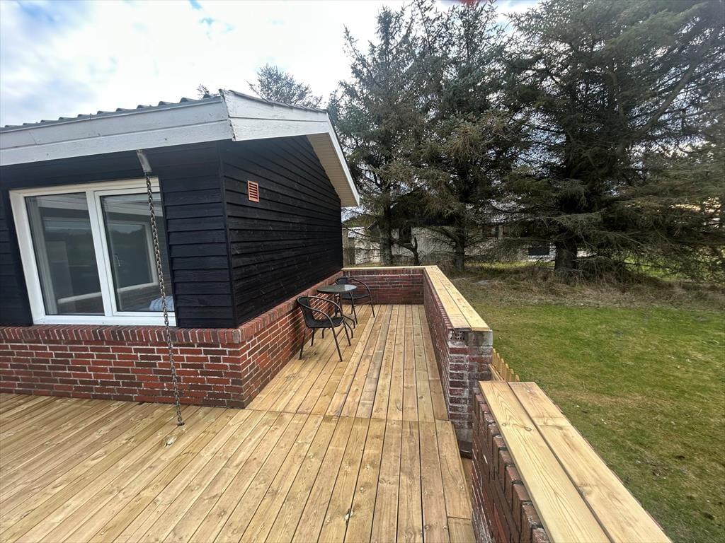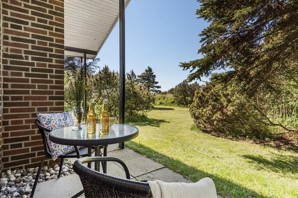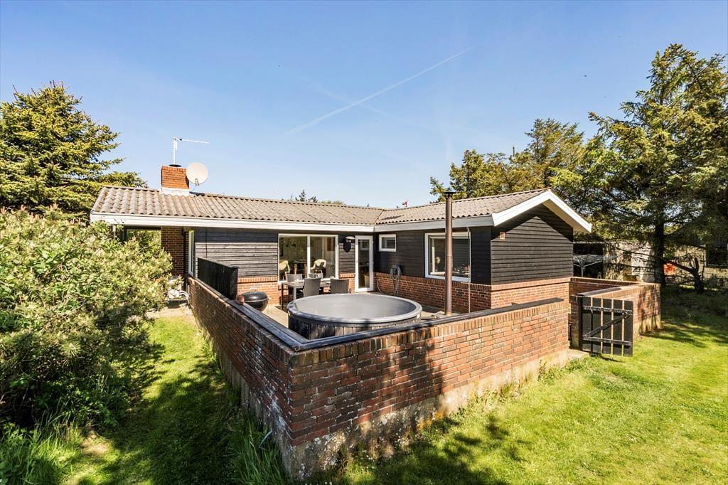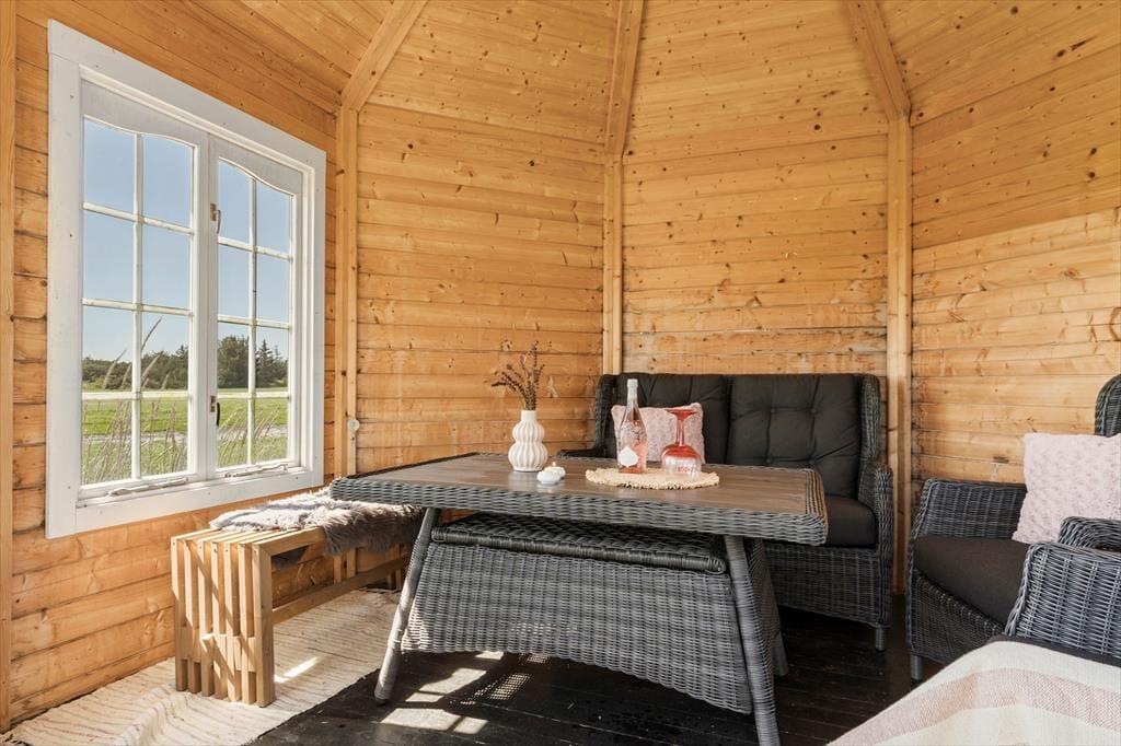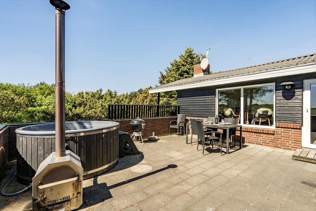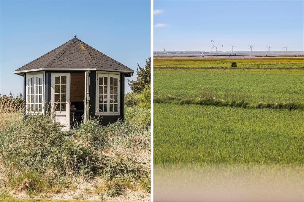 Vildmarksbadet. Den gode lænestol nær brændeovnen. Eller havepavillonen, der ligger med udsigt til mark og fjord? Det kan være svært at udpege sin yndlingsplads i dette hyggelige sommerhus, for der er mange dejlige hyggekroge og solbeskinnede steder at vælge imellem her på Fyrrekrat 2 i Søndervig.