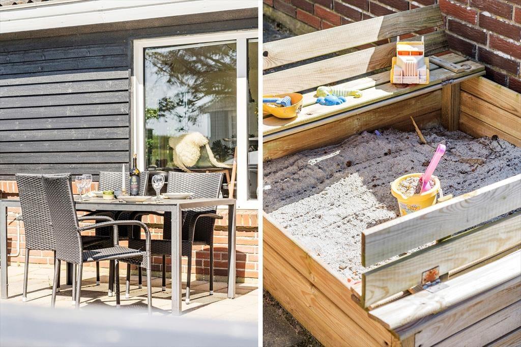 Grunden er ikke bare stor, men også skønt anlagt med flere dejlige haverum, så du og familien kan gå på opdagelse eller bare sidde helt roligt i de fredfyldte omgivelser. Havepavillonen står i den sydlige ende af grunden – lige op til det åbne marklandskab og med udsigt til fjorden. På græsplænen har de yngste god plads til leg og boldspil, og sandkassen på den indhegnede terrasse vil sikkert også være et hit, for her kan de voksne hygge sig med en varm kop kaffe lige i nærheden. På terrassen står der også et vildmarksbad, som kan være med til at forlænge udelivet i ydersæsonerne og gøre sommeraftenerne under stjernehimlen helt magiske.