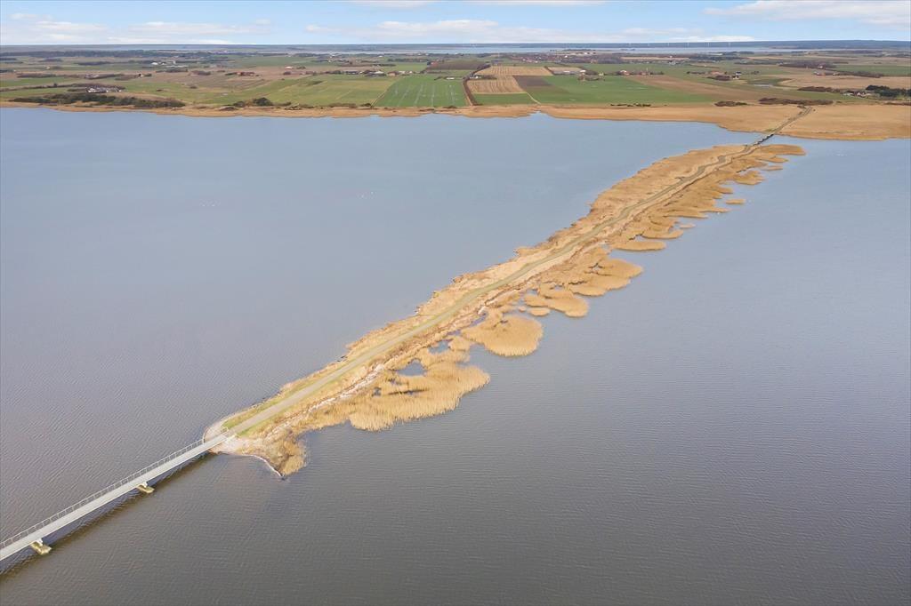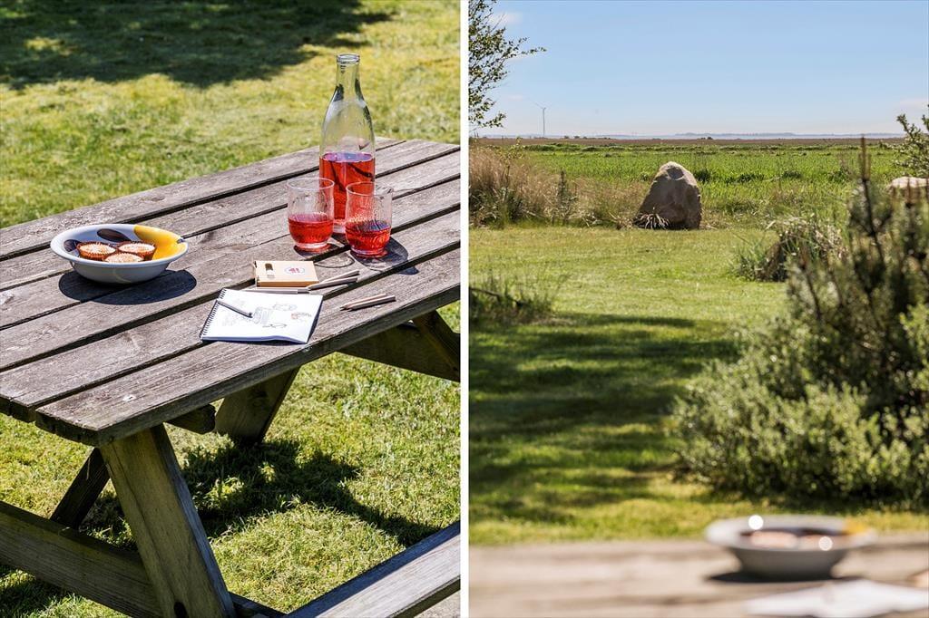 Sommerhuset ligger i rolige omgivelser på en lukket vej, og gennem stuevinduerne kan du ikke bare se ud på naturgrunden, men også videre ud over det åbne marklandskab. Inden døre er indretningen holdt i primært neddæmpede og lyse farvetoner. Møblementet er kønt og komfortabelt, for det skal selvfølgelig være rart, når du læner dig tilbage i stuen med en spændende roman eller en sjov film på fladskærms-tv’et. Spisekrogen med bænke og stole er et hyggeligt sted at samles for hele familien – og den er smart placeret lige ved køkkenet, så du kan sagtens fortsætte hyggesnakken, hvis du skal hen for at brygge mere kaffe eller spejle endnu et æg til brunchen.