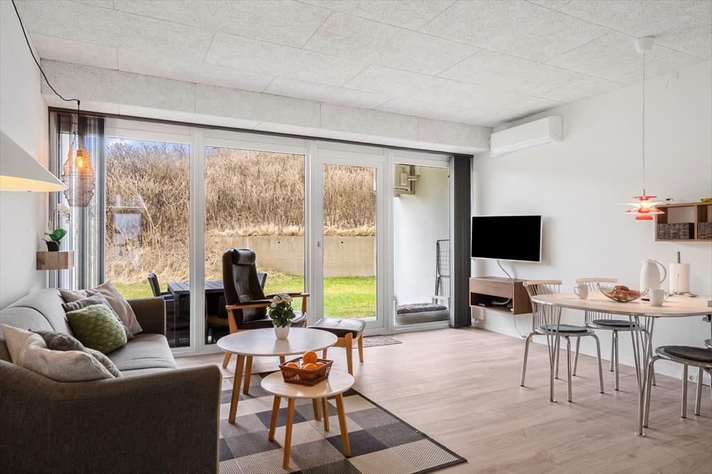 Når du træder ind i lejligheden, mødes du af en lys og afslappet atmosfære, hvor ferien hurtigt begynder at føles som en naturlig del af hverdagen. Indretningen er skabt med fokus på hygge og funktionalitet, så du nemt kan lande og finde rytmen. Stuen rummer en komfortabel dobbelt sovesofa, som gør det enkelt at skabe ekstra plads til børnene uden at gå på kompromis med komfort og fælles hygge.