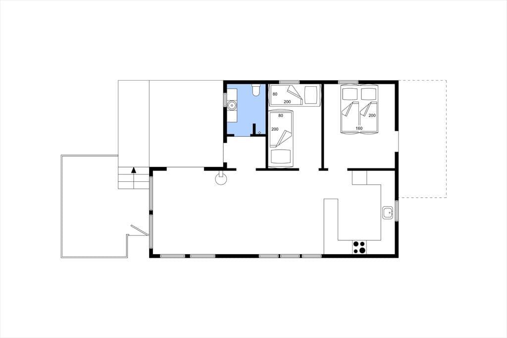 Udsigten bliver inviteret helt ind i stuen, og det er med til at gøre ferielivet ekstra skønt. Både spisebordet og sofahjørnet er placeret ved store vinduer, mens husets lænestole er stillet strategisk ved fladskærmen, så I kan sidde komfortabelt, når I ser film. I stuen er der både brændeovn og varmepumpe med kølefunktion, og i den ene ende ligger køkkenet, der er udstyret med keramisk komfur, varmluftsovn, opvaskemaskine og meget andet godt. Wi-fi-forbindelsen er lynhurtig, men selvom det er hyggeligt at sidde og surfe, kan det anbefales at komme i seng i ordentlig tid – for er der noget bedre end at kunne vågne helt udhvilet efter en lang og god nats søvn, når det er ferietid? Soveværelser er der to af, hvoraf det ene er med tv, og badeværelset fremstår pænt og lyst som de øvrige rum.