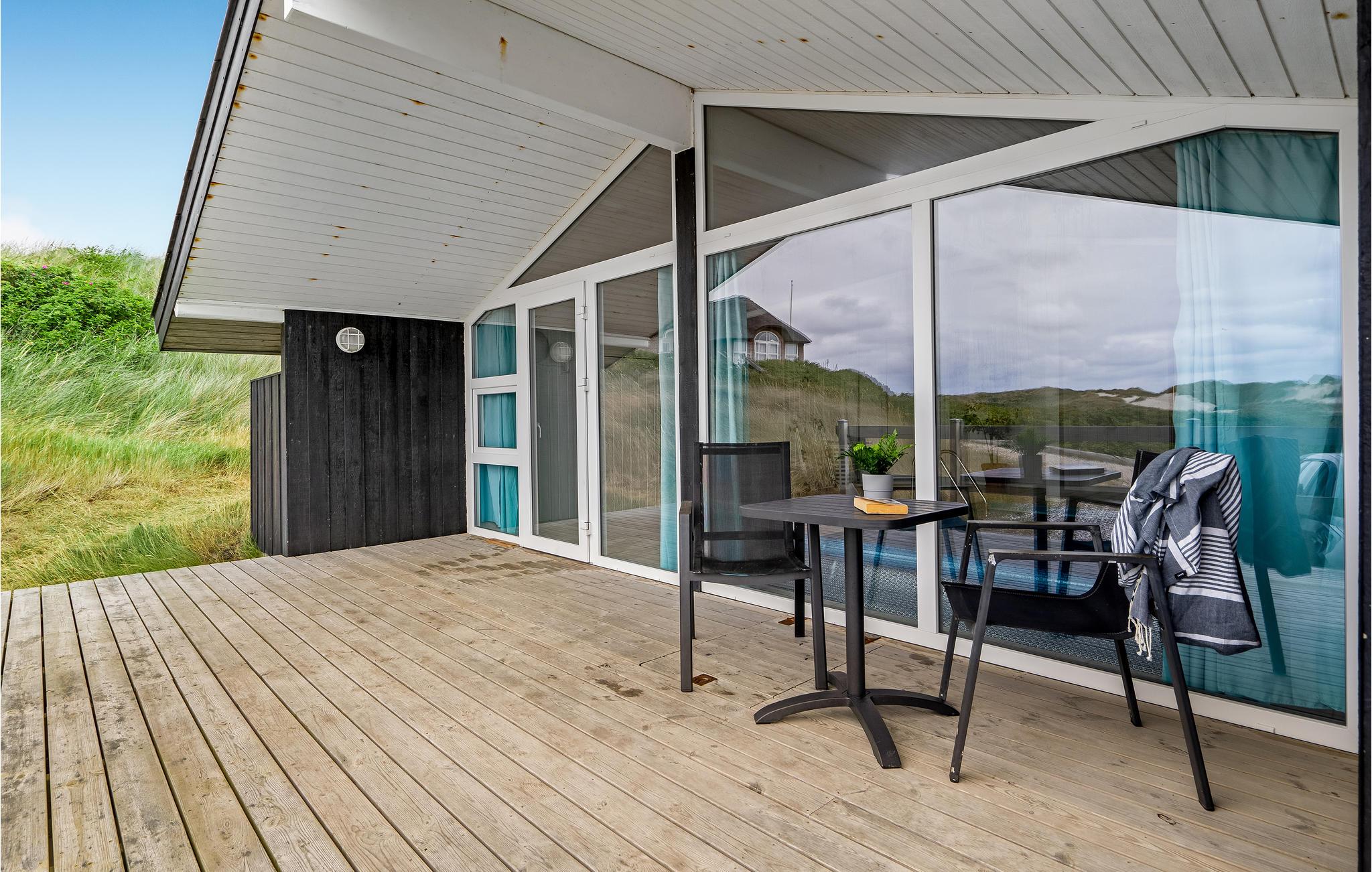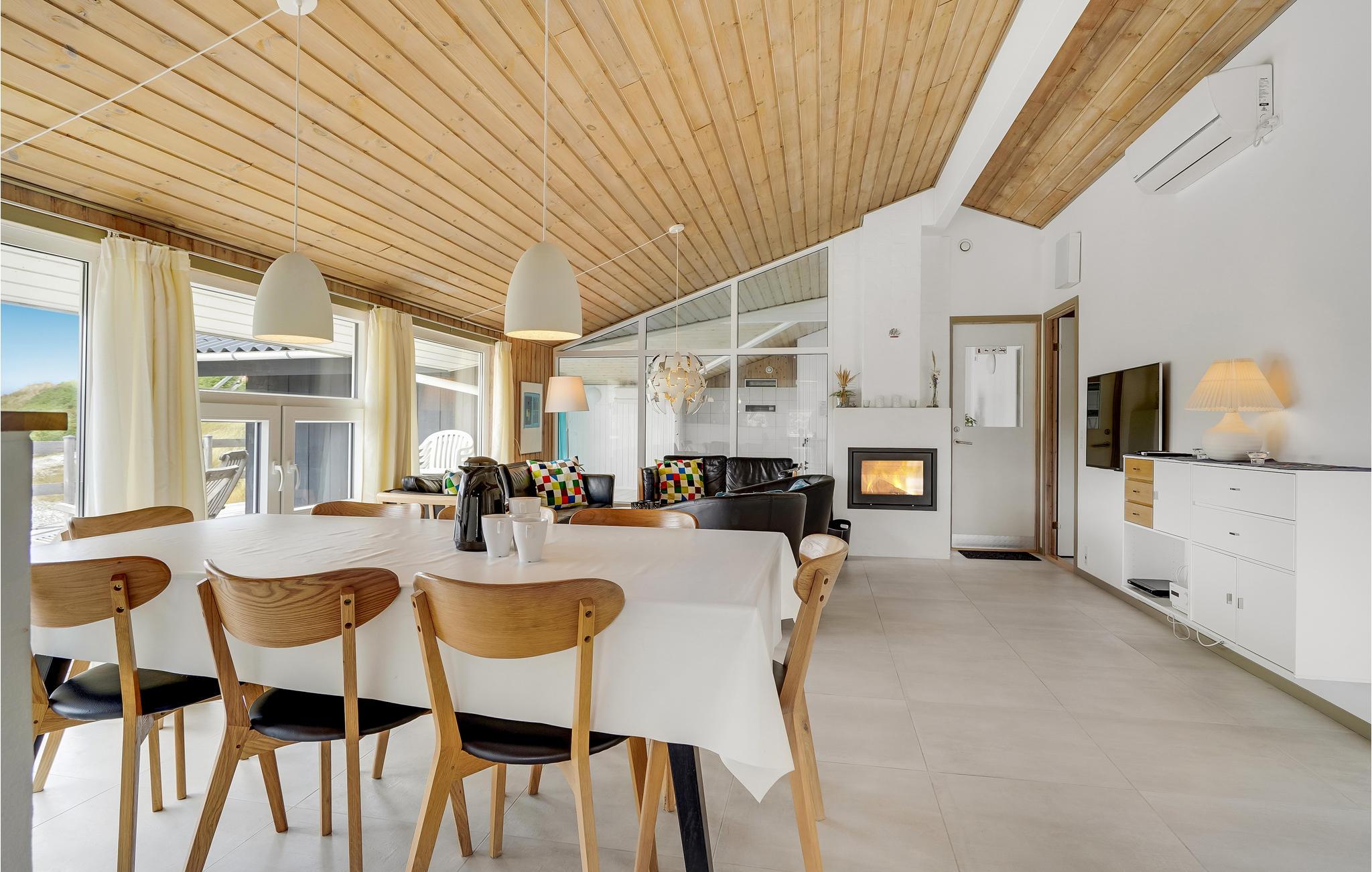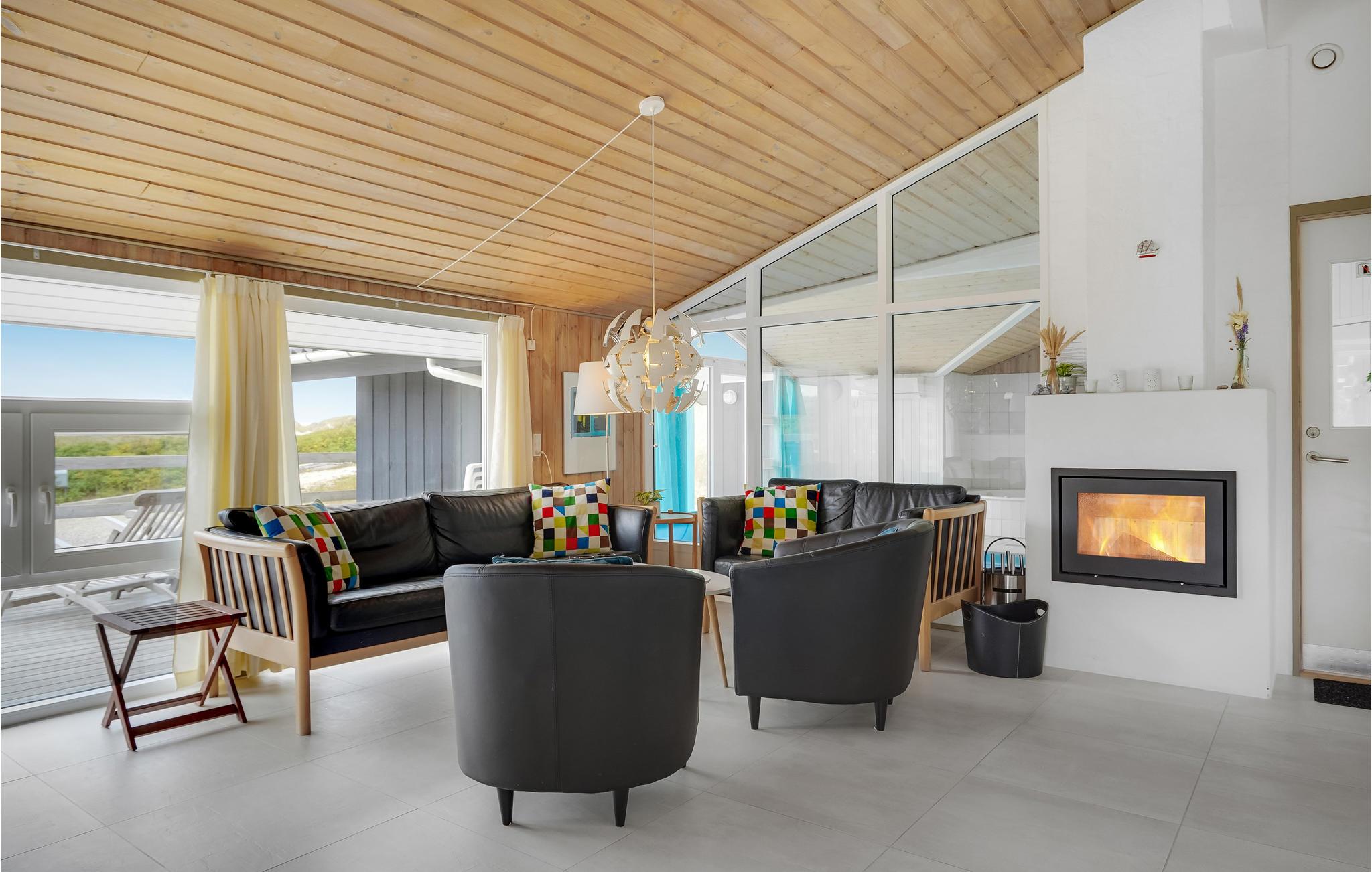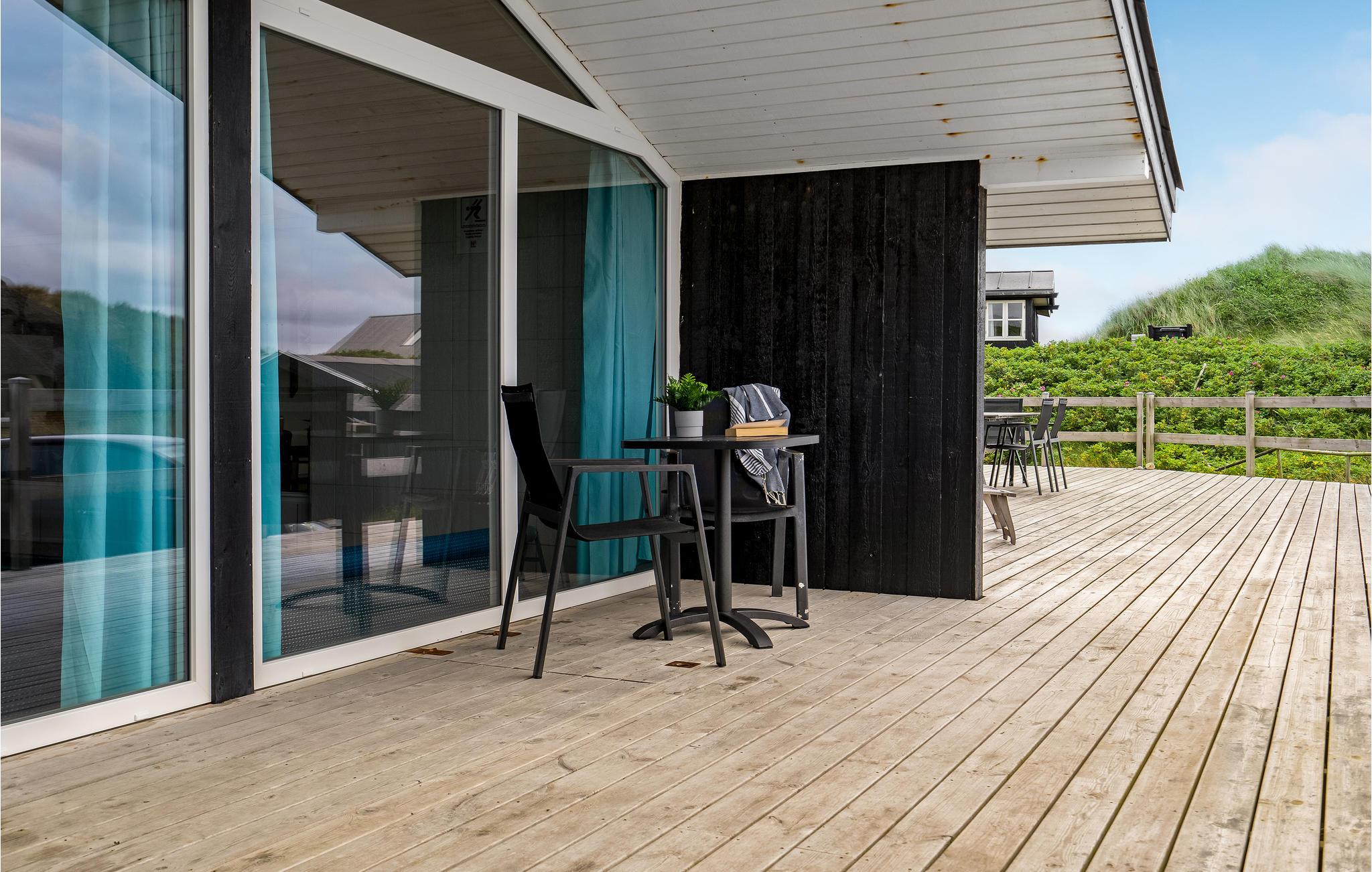 Dette dejlige sommerhus ligger på en naturgrund nær fredningslinjen med udsigt til det enestående klitlandskab. En fælles sti fører direkte til havet, hvor I året rundt kan gå afslappende ture i den uspolerede natur og blive blæst igennem. Huset har en dejlig stor terrasse, hvor I kan nyde solen og de lange sommeraftener - med uhindret udsigt til en fantastisk solnedgang. Indendørs kan I boltre jer i den store pool eller nyde undervandsmassage i det fire personers spabad. Huset er energirenoveret, så poolen opvarmes af en varmepumpe, og der er også varmepumper i både pool- og opholdsrum, som holder forbrugsudgifterne nede. Huset indeholder desuden en stor sauna og en brændeovn, som skaber ekstra hygge på kølige dage. I stuen er der 49” smart TV med internetadgang og musikanlæg med bluetooth, CD-afspiller og radio. Huset ligger tæt på havet og på områdets faciliteter og ligger samtidig ugenert til en afslappet og rolig ferie. I nærheden af sommerhuset ligger en spændende 27 hullers golfbane. For lystfiskere byder området på gode betingelser både i de nærliggende put & take-søer eller direkte fra stranden i havet. Har I cyklerne med, eller vil I gå langeture, er der i hele området mange kilometers velanlagte stier. Vil I surfe kan vi varmt anbefale Ringkøbing Fjord, der er kendt for sine gunstige forhold og som tiltrækker mange nationaliteter. Her er plads til alle - både nybegyndere og øvede. Sommerhuset ligger tæt på Søndervig, som er byen med den letteste adgang til Vesterhavet. Derfor er den også, fra gammel tid, en rigtig badeby, som gør meget for, at gæsterne skal føle sig velkomne. De forretningsdrivende i Søndervig ved hvad der skal til for at opfylde alle gæsters ønsker, uanset om I er inde i byen for at købe ind, spise eller få en kop kaffe på en café - eller for at blive forkælet med wellness. Ikke langt fra Søndervig ligger den hyggelige, gamle købstad Ringkøbing. Her er atmosfære, charmerende brostensbelagte gader og gode shoppingmuligheder. Lidt syd for Søndervig ligger Hvide Sande, som er en gammel fiskerby. Især om sommeren er her masser af liv på havnen, og der er gode muligheder for at fiske fra molen. Dette område byder på et væld af aktiviteter for alle aldre.