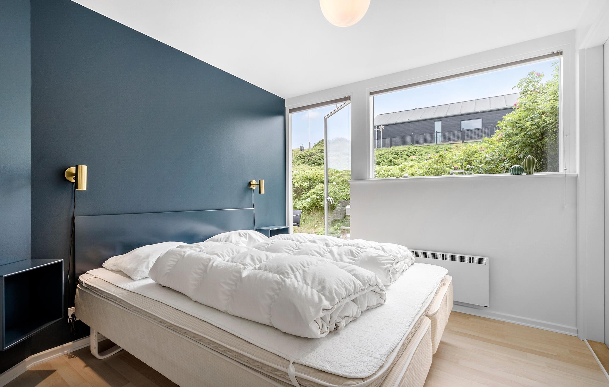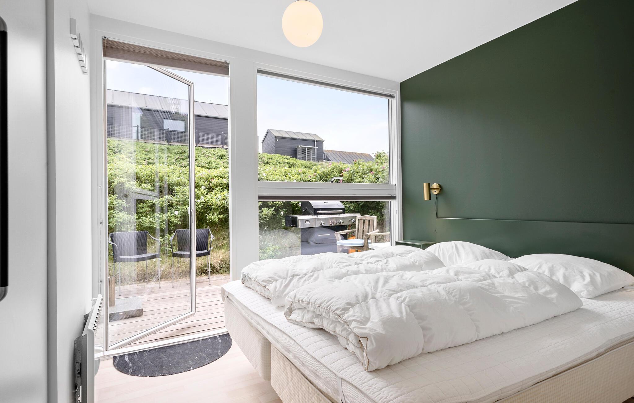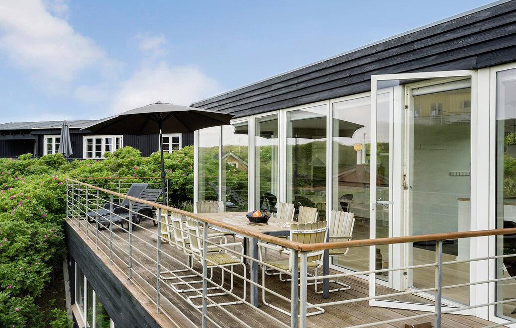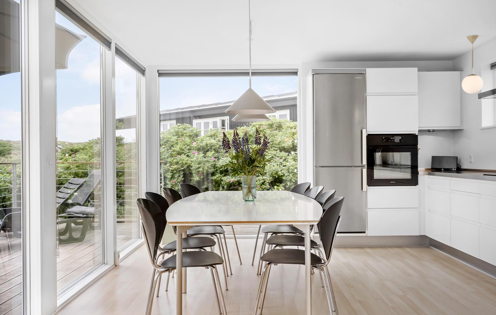Velkommen til dette arkitekttegnede hus, der ligger få minutters gang fra Vesterhavet, og hvor I får godt med plads og komfort over to etager til en ferie med den udvidede familie. I bor i fredelige omgivelser på en ugeneret grund i klitterne, og indretningen fremtræder virkelig stilsikkert og elegant over hele linjen. Dagslyset strømmer ind gennem den sydvestvendte glasfacade, der samtidig giver en vidunderlig udsigt til det grønne. Med gode rumløsninger, komfortable møbler og et fuldt udstyret køkken får I her alt, I behøver for at kunne slappe af og bruge god tid med hinanden. Hvis vejret bider lidt fra sig, kan I fyre op i brændeovnen, der giver varme og et knitrende lydtapet til en hyggelig filmaften. Og hvis I skal gøre det ekstra godt for jer selv, kan I forkæle jer selv med en aftentur i saunaen, mens I lægger planer for de kommende dage.