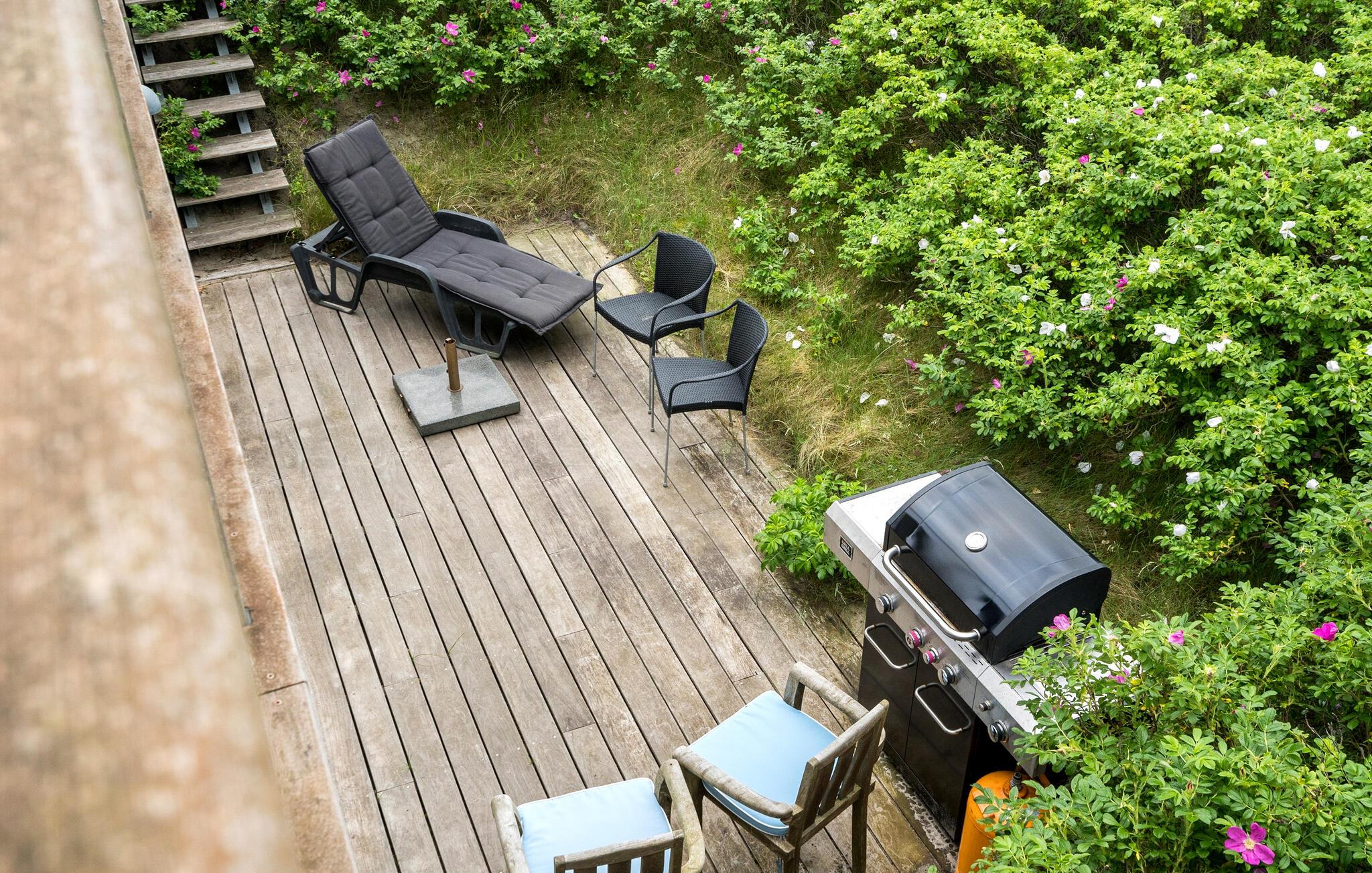 Til huset hører flere terrasser, der ligger på forskellige niveauer og går om flere sider af huset, så I kan nyde solen, men også finde læ til at læse en god bog på de varme sommerdage. Begynd dagen med en god kop kaffe, nyd den friske luft og lyt til havet, inden I begiver jer på tur. Holder vejret hele dagen, kan I smide lidt godt på grillen og runde aftenen af med bøffer og et godt glas vin under aftensolen.