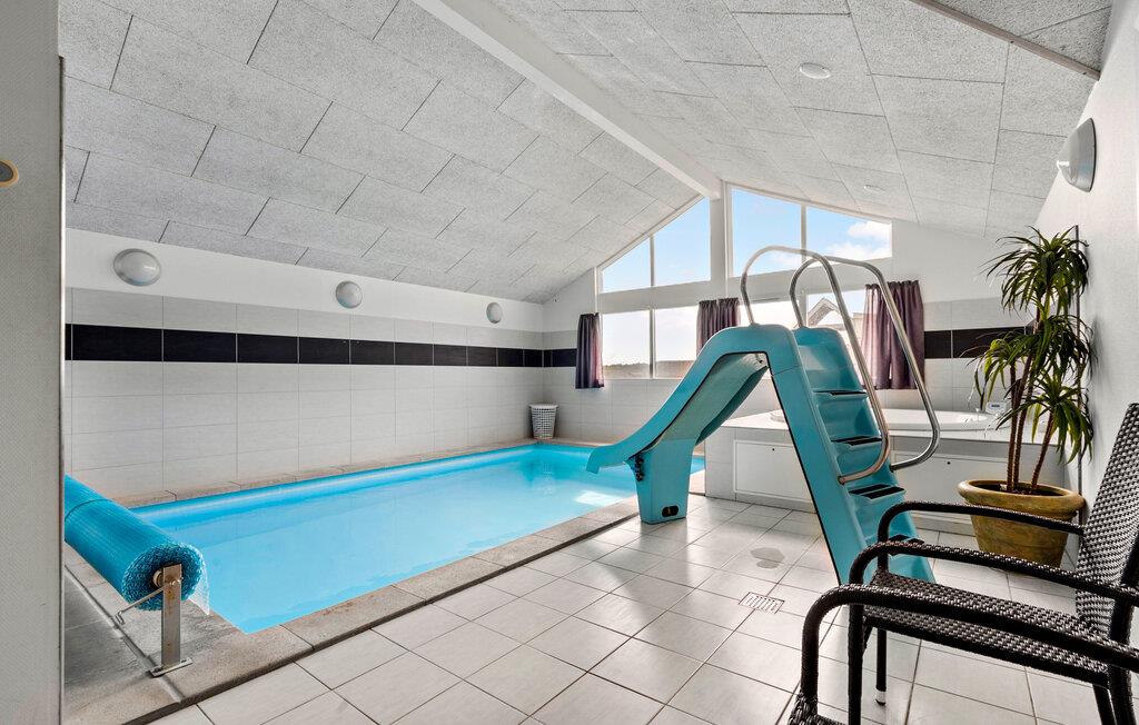 Stort sommerhus nær Vesterhavet med spa, sauna, pool og aktivitetsrum til en aktiv eller afslappende ferie.