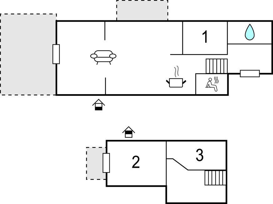 Badeværelse 7m2 (nr. 1) - WC. Varmt og koldt vand. Bruser