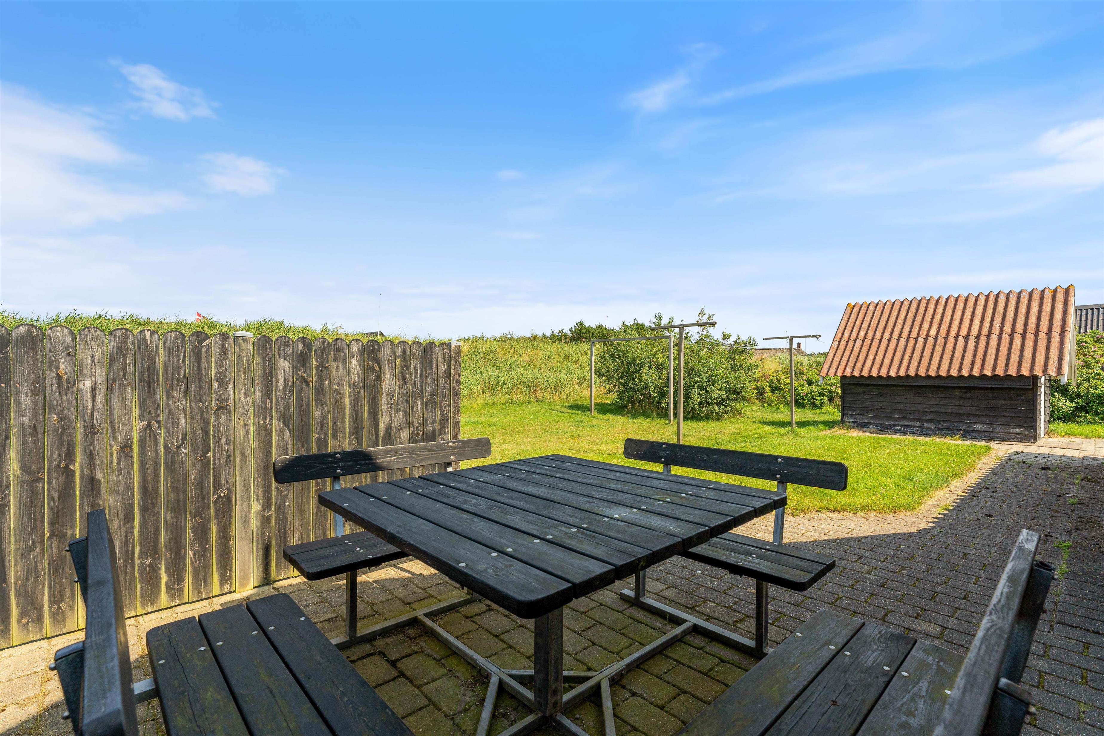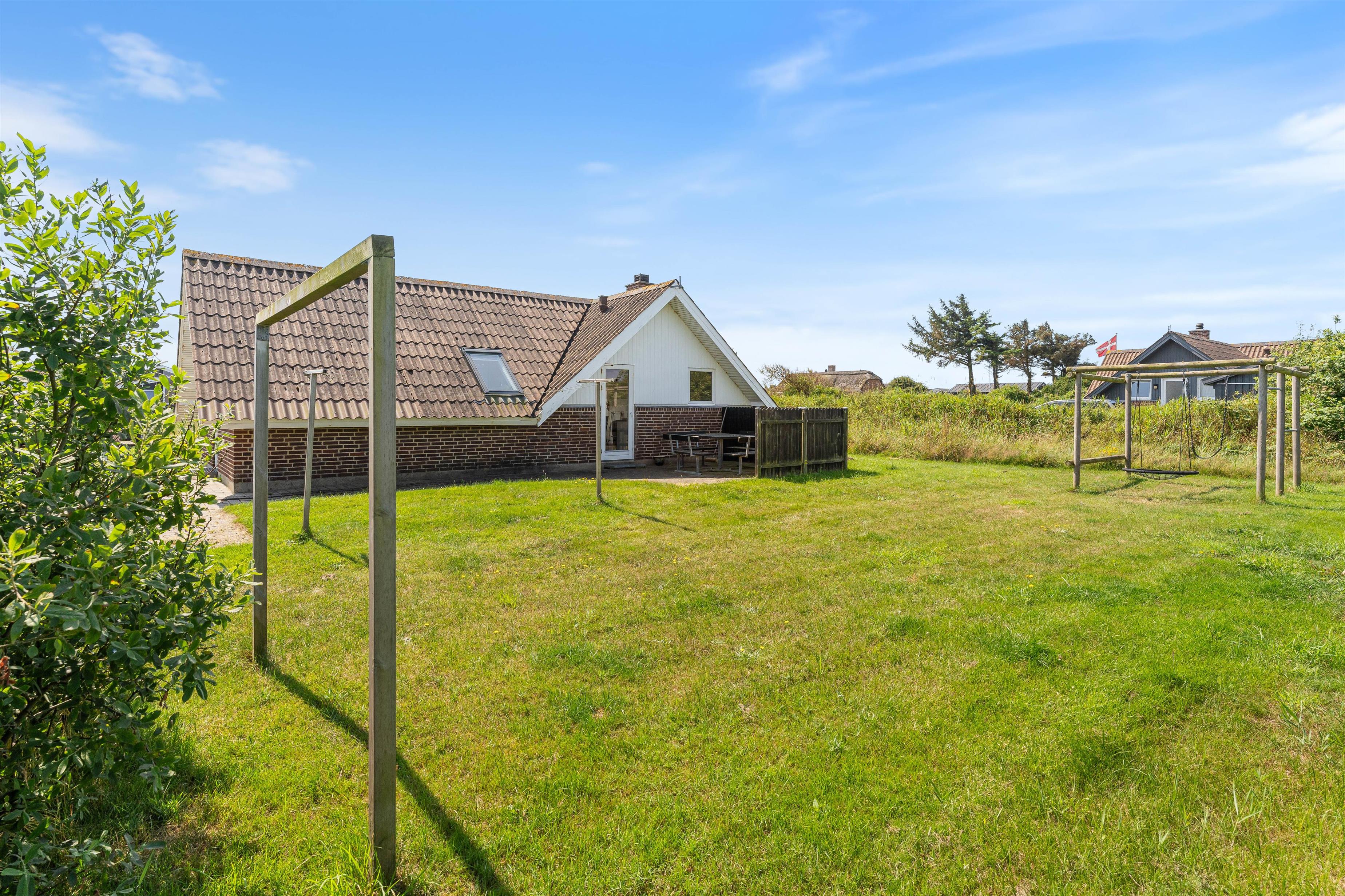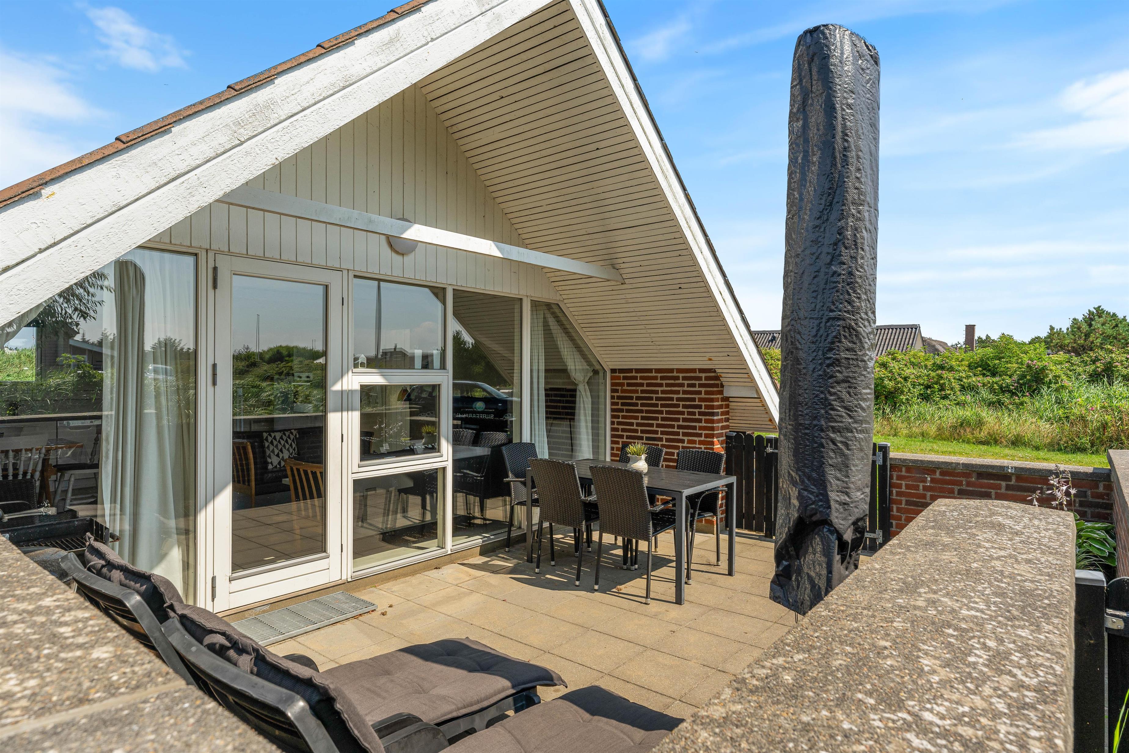 Terrassen mod nord er god om morgenen, når vejret tillader morgenkaffe udenfor. Mod syd er terrassen delvis overdækket, delvis afskærmet og lukket. Huset er placeret for enden af en rolig stikvej, så trafikken er minimal. Der er ikke langt til havet og den skønne badestrand, ligesom Søndervig kun ligger en rask travetur fra huset. Søndervig er en hyggelig og charmerende badeby, hvor der er et godt udvalg af butikker og restauranter. Hvide Sande og Ringkøbing er også populære udflugtsmål, både som turist eller som lystfisker.