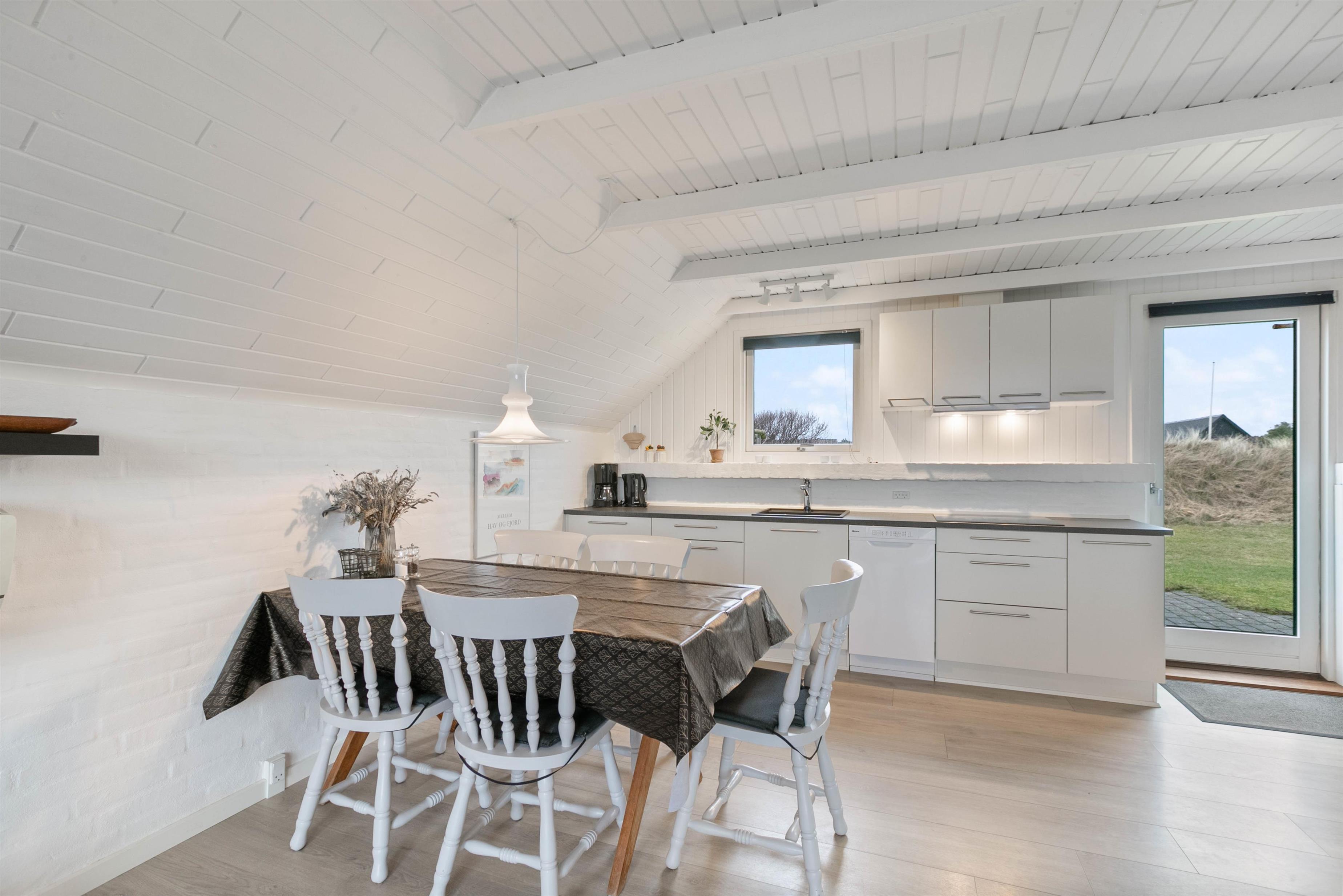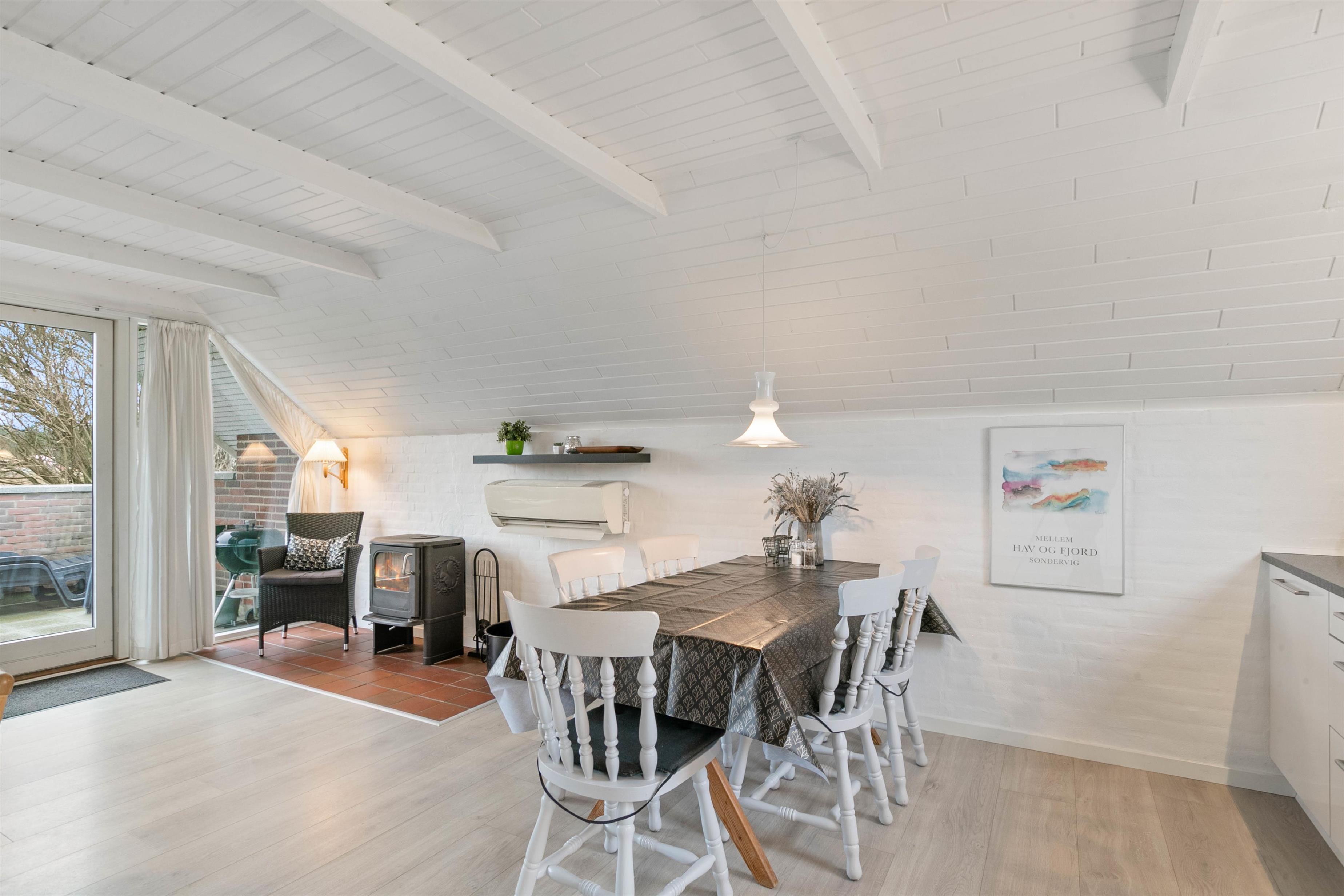 Hyggeligt sommerhus beliggende på en rolig stikvej i Søndervig. Hjelmevej 87 er smagfuldt og moderne møbleret, og der er hvidmalede vægge og lofter. Der er opvaskemaskine, fladskærms-TV, gratis trådløst internet og en varmepumpe. Hund er tilladt i huset. Der er en energibesparende varmepumpe
