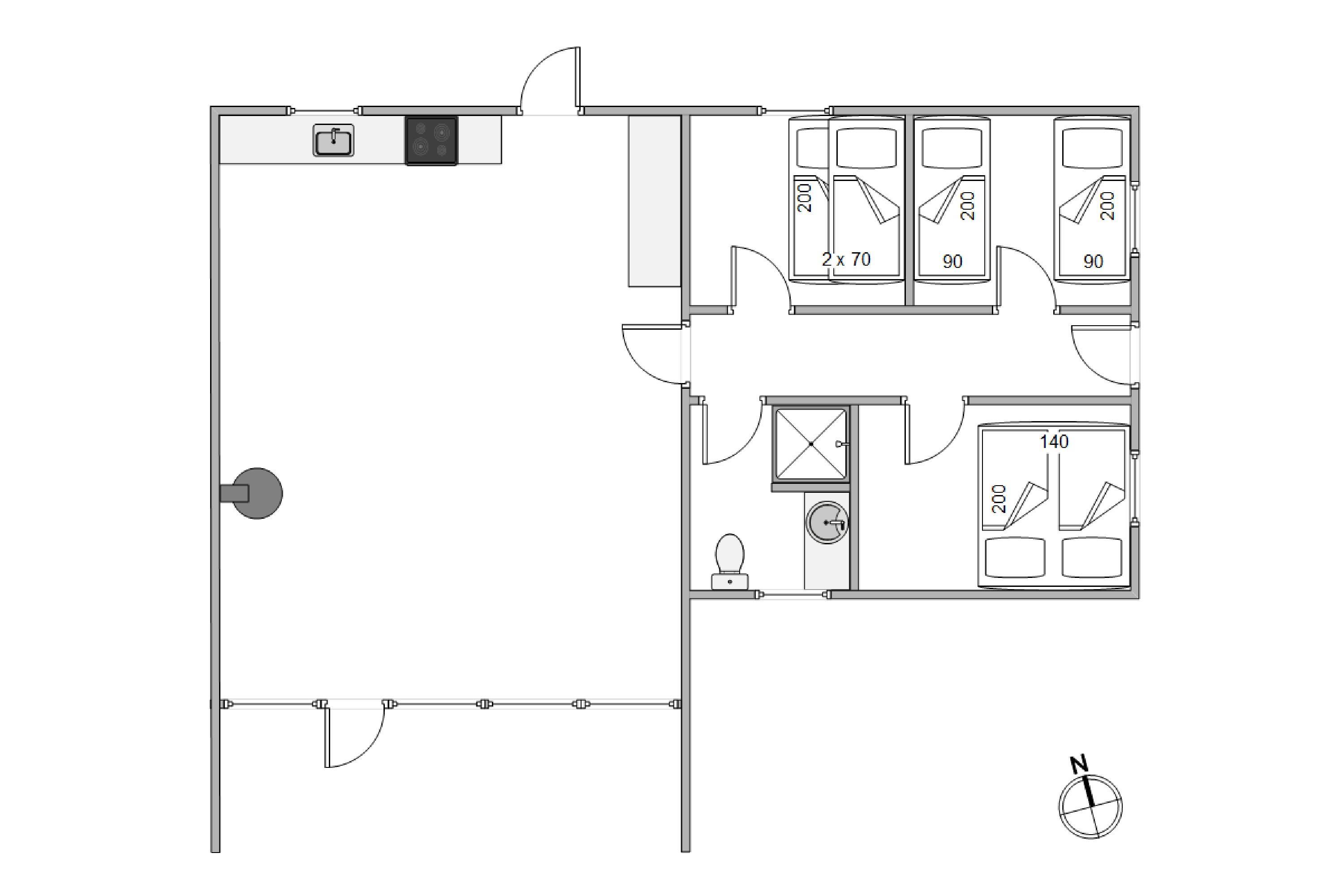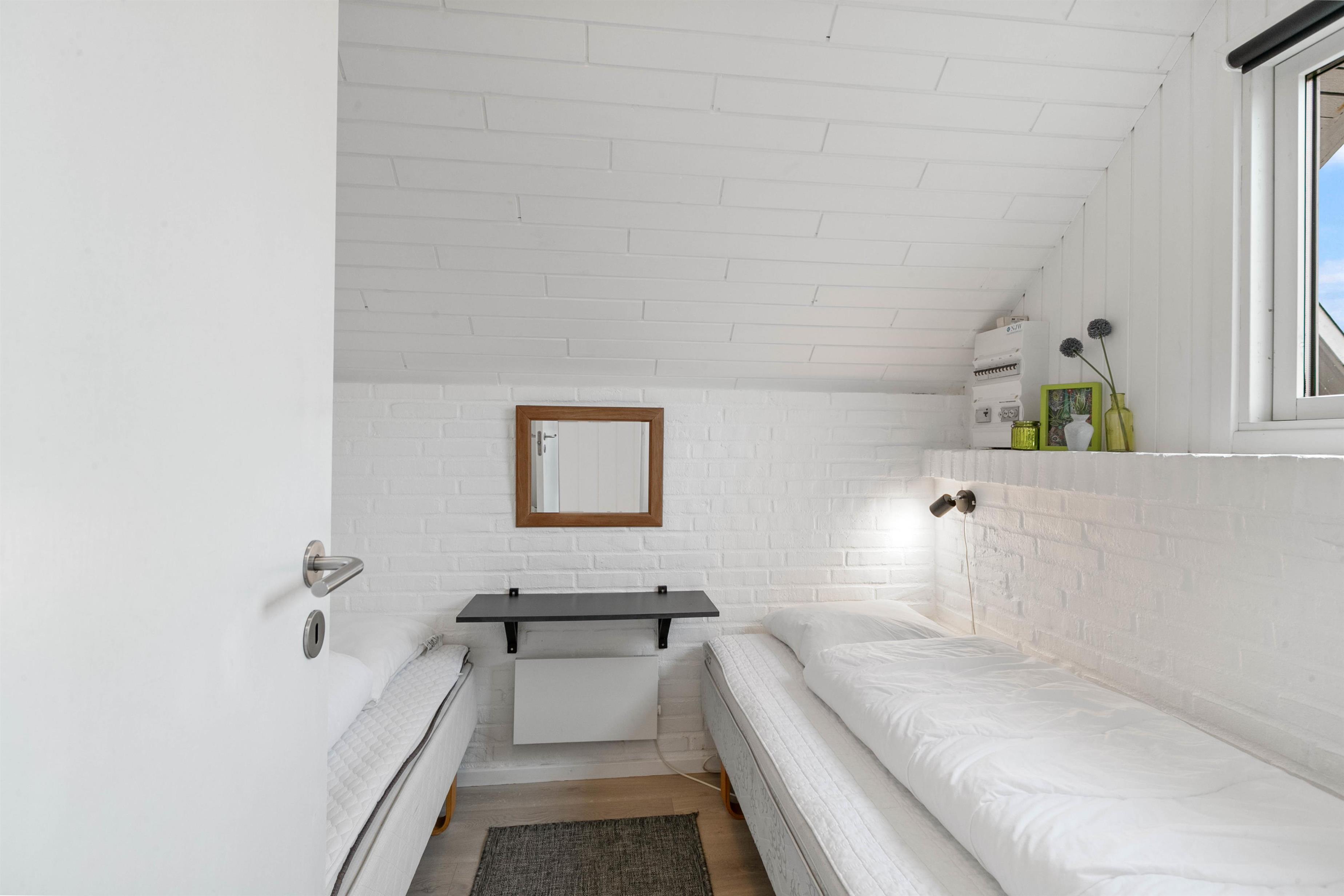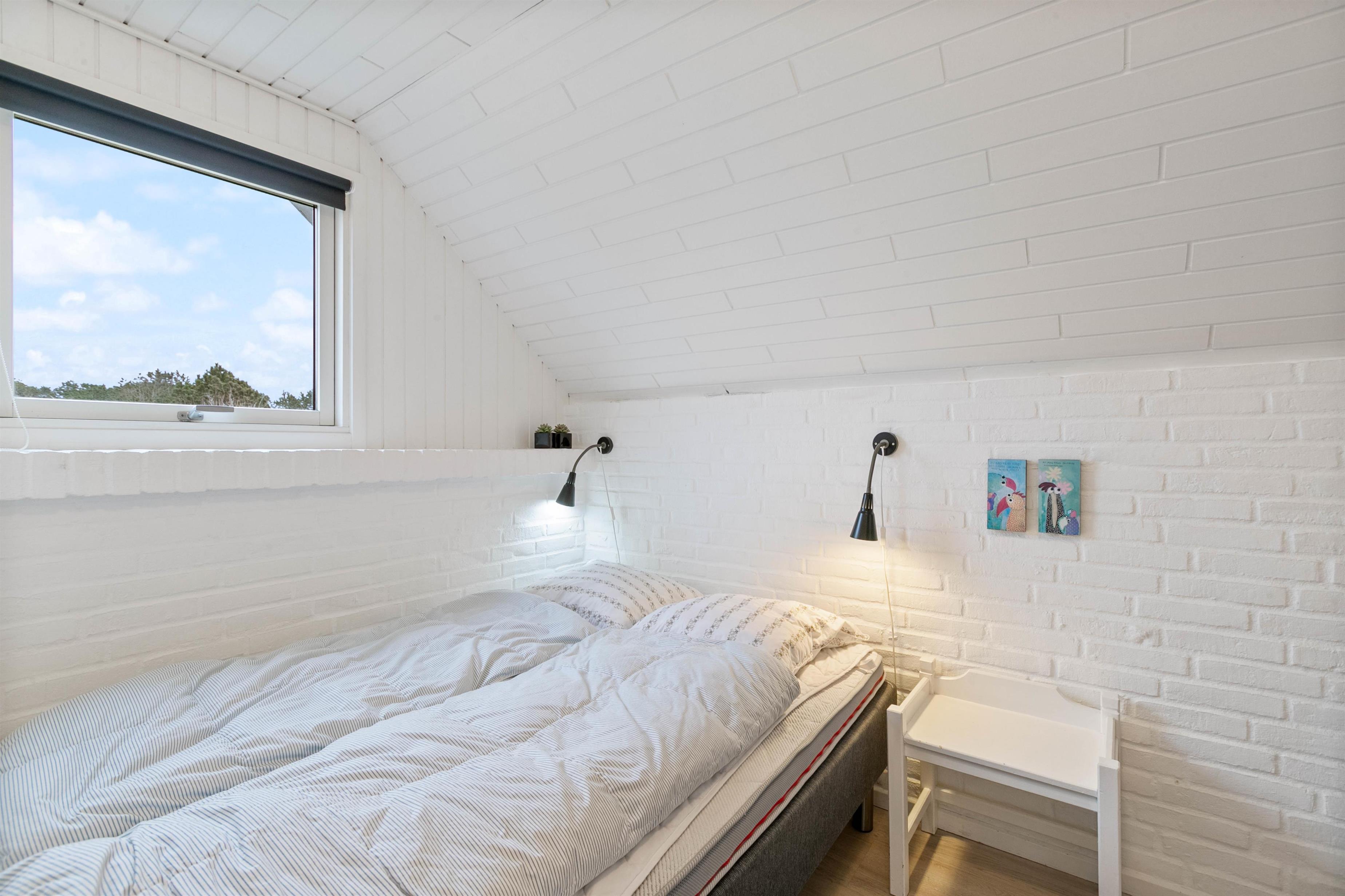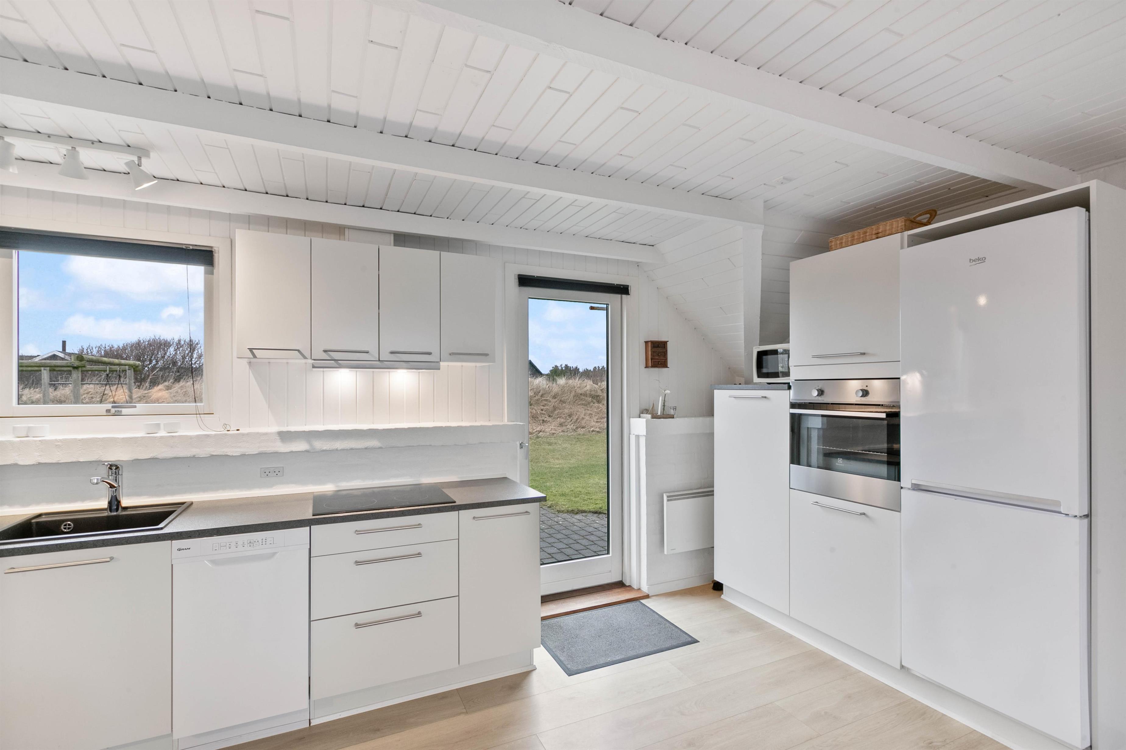 Dette sommerhus er renoveret i 2018 bl.a. med nyt køkken, og fremstår lyst og indbydende. Der er tre soveværelser, et med dobbeltseng, et med to enkeltsenge og det tredje med køjesenge. I badeværelset er der gulvvarme og en bruseniche.