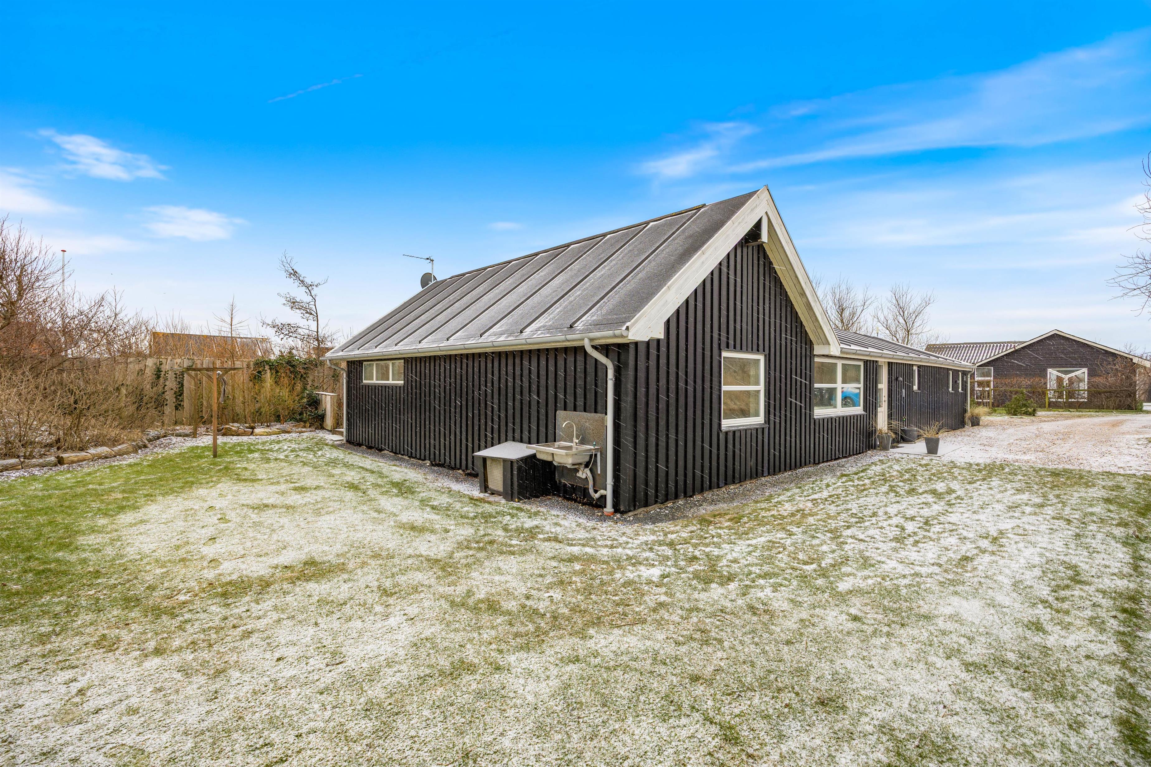 Sommerhuset er beliggende på en 1.156 kvadratmeter stor natur- og plænegrund, hvor det er oplagt at spille kongespil eller petanque. For de mindre feriegæster er der et gyngestativ og en sandkasse, hvor tiden kan flyve afsted. Der er installeret udendørshøjttalere, så I kan høre stemningsmusik, mens I hygger jer.