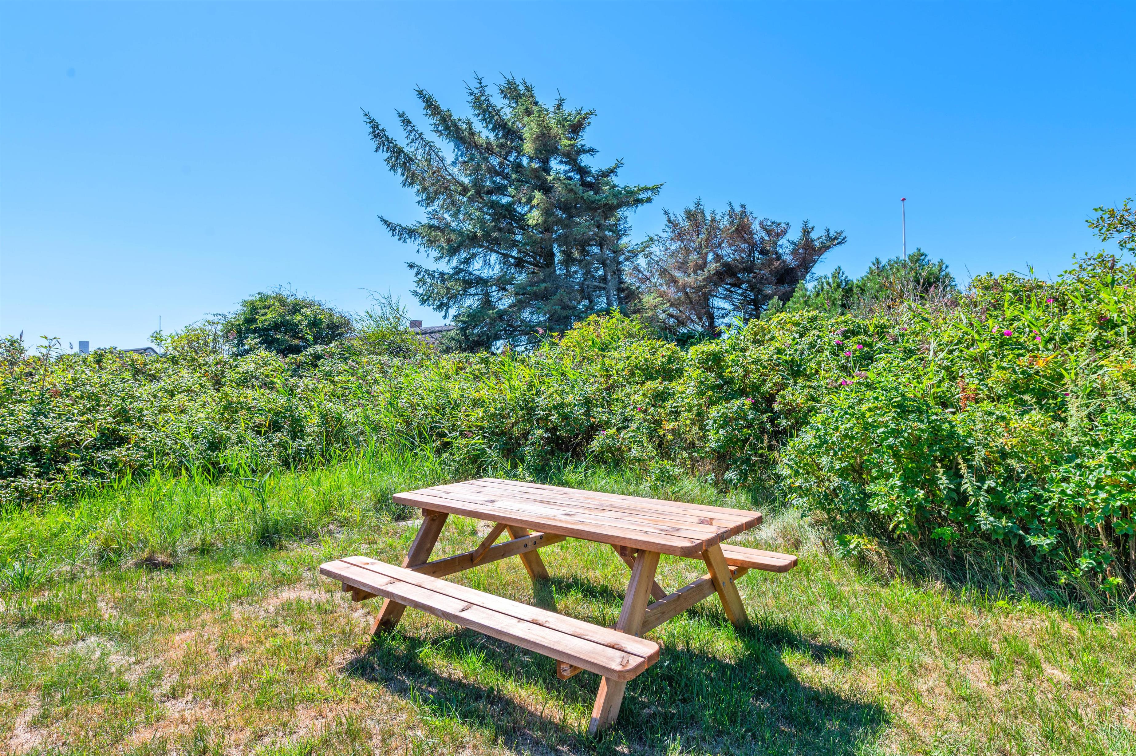 Læg jer til rette på liggestolene med en god bog, mens grillen tændes op. På husets nordside er der desuden etableret en terrasse, hvor I kan nyde dagens sidste solstråler. Sommerhuset byder også på et hyggeligt bålsted, hvor hele familien kan samles og bage snobrød eller lave andre lækkerier sammen.