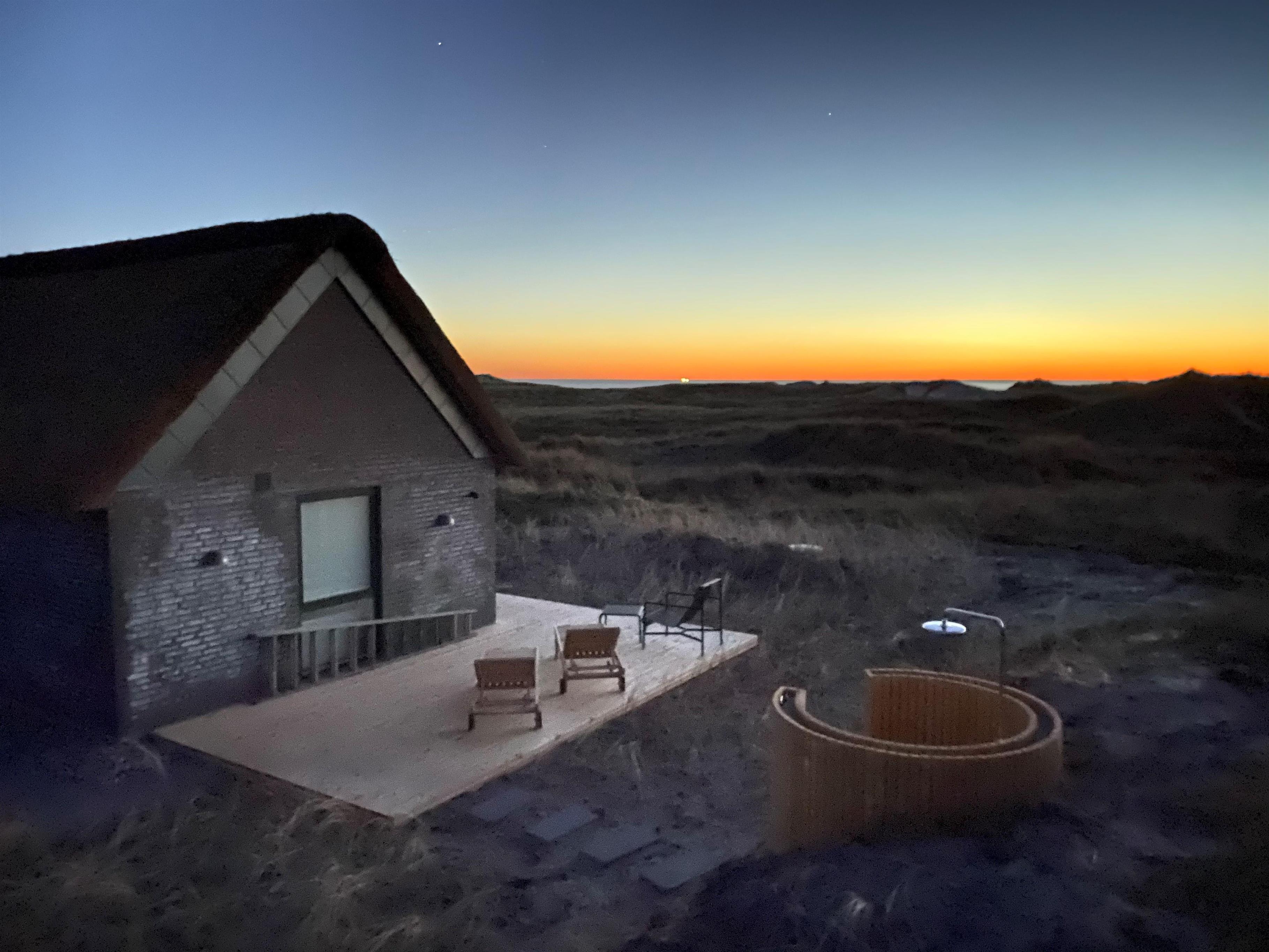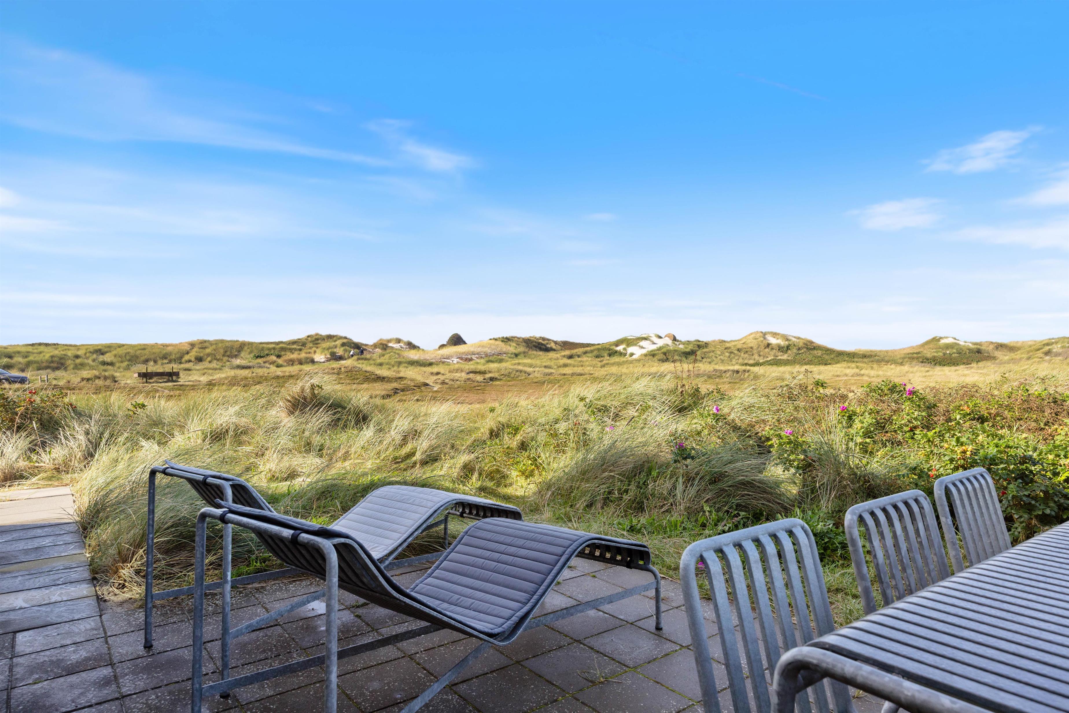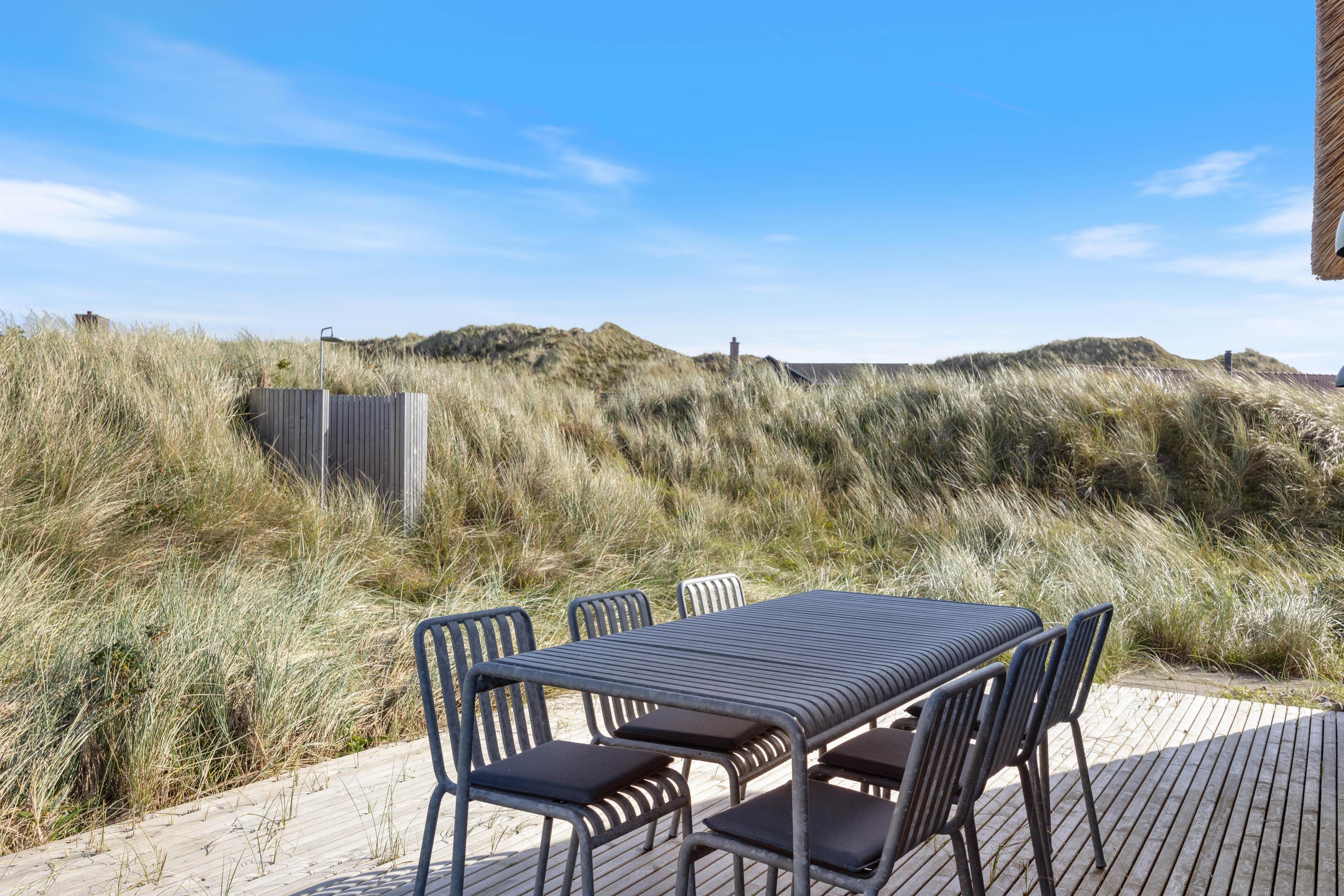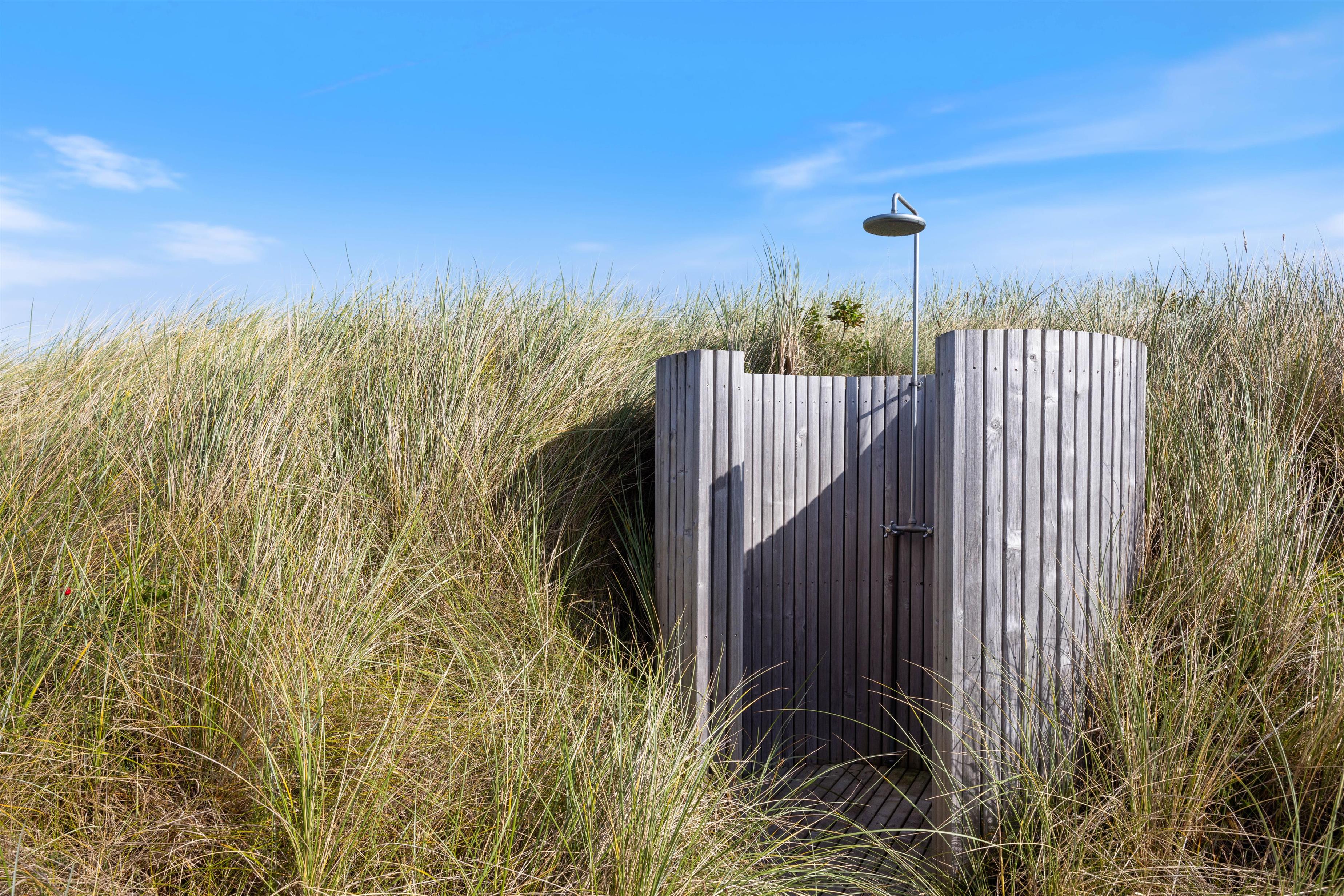 Nyd en betagende og uforstyrret udsigt over fjorden i Ringkøbing og havet. Stranden ligger blot 75 meter væk, så der er rig mulighed for at opleve Vesterhavet. Efter en tur i det brusende Vesterhav, kan I skylle alt salt og sand af i den udendørs bruser, som er ved sommerhuset. Udebruseren er åben fra april til og med oktober.