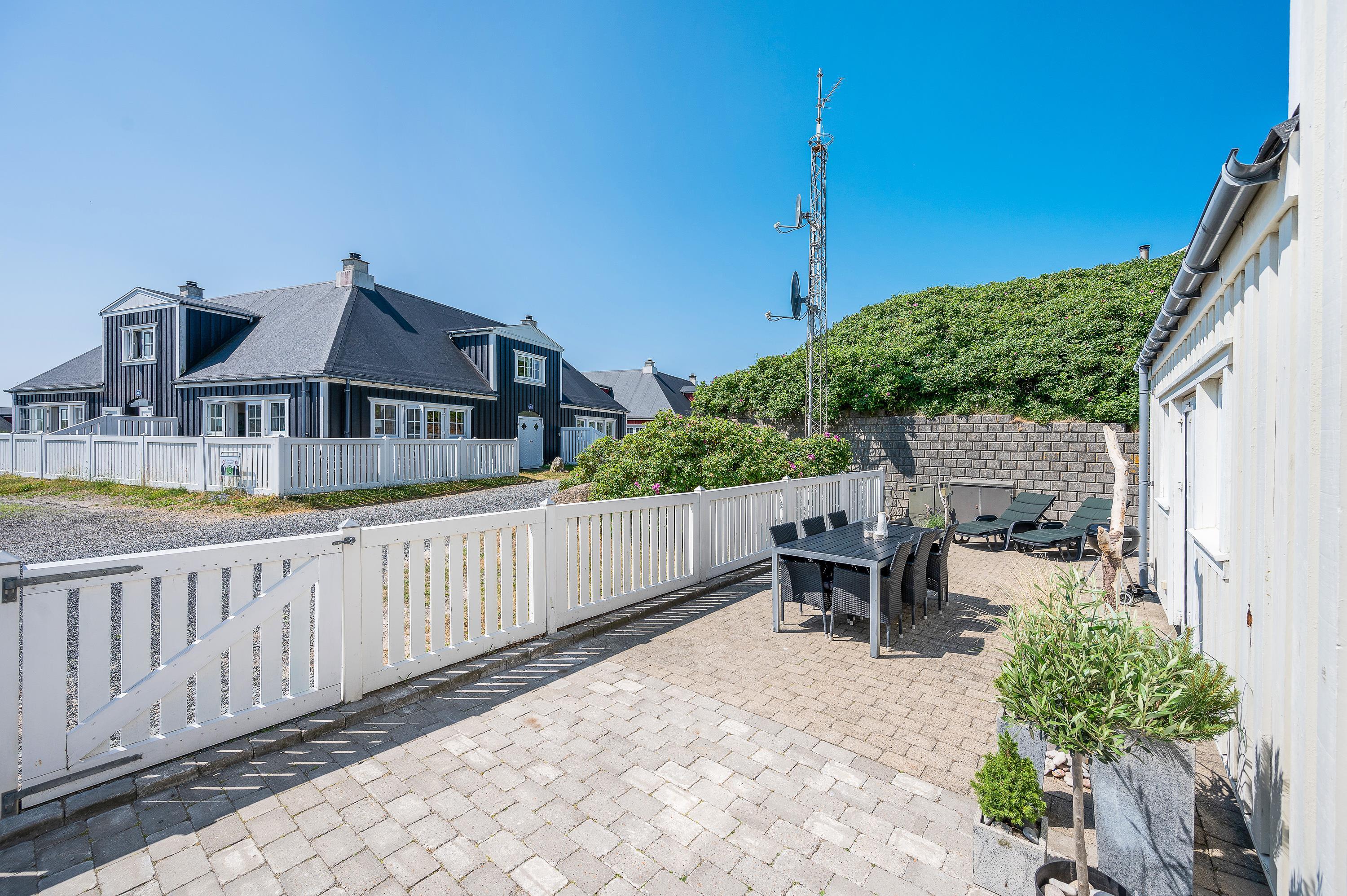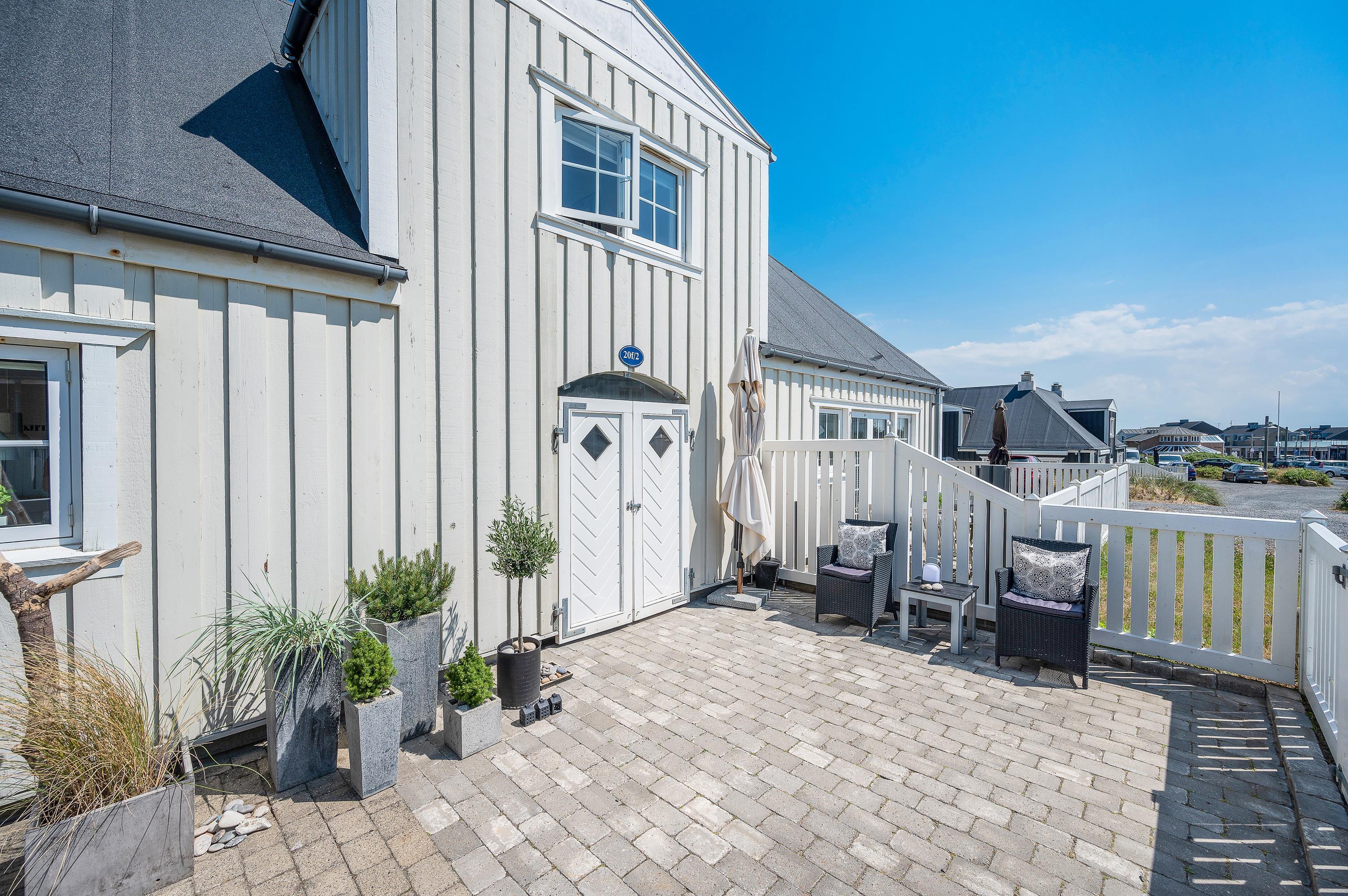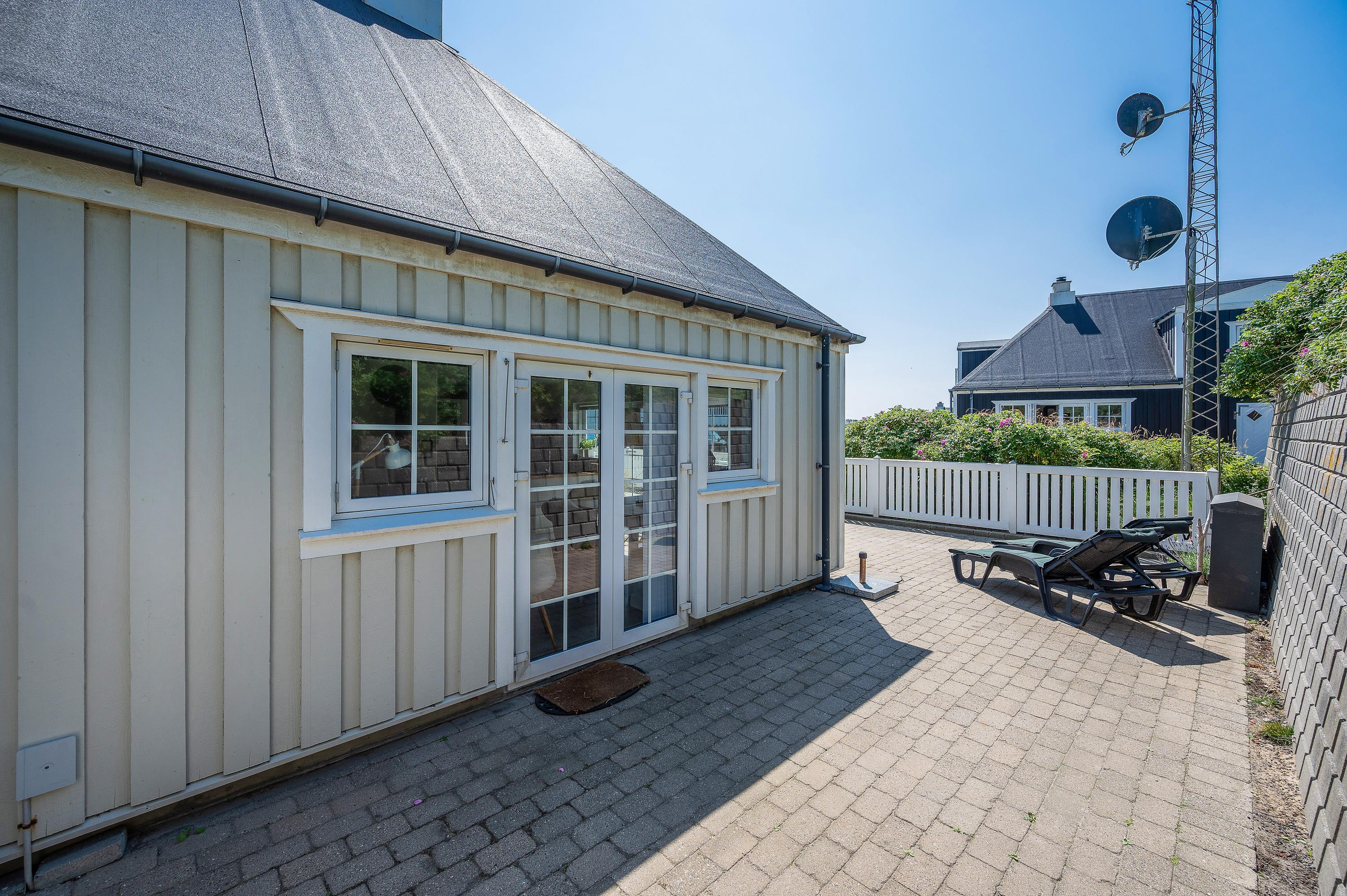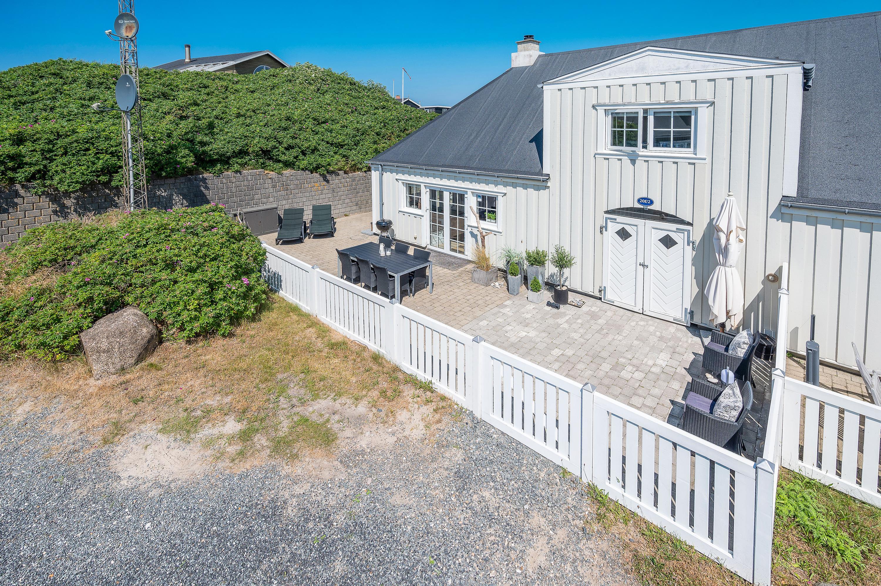 På den afskærmede og lukkede terrasse er der gjort klar til, at I kan nyde de varme solskinsdage i liggestolene eller havemøblerne, og om aftenen kan der tændes op i ferielejlighedens grill, hvis I skal have en ekstra hyggelig feriemiddag.