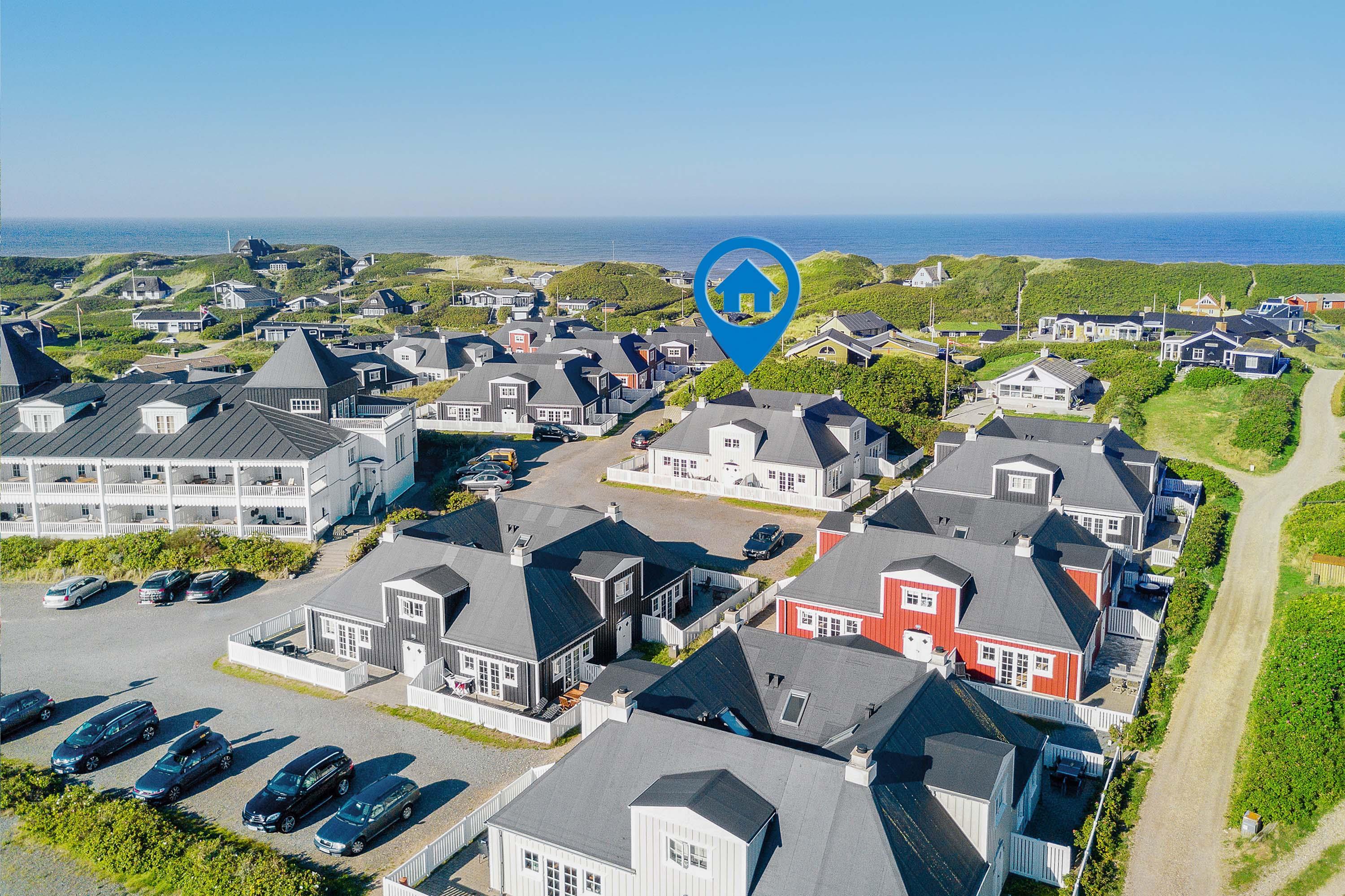 Fra terrassen kan I høre det brusende Vesterhav kalde på jer, og på få minutters gang kommer I til den kilometerlange sandstrand, som i øvrigt er let tilgængelig for alle med den gode strandovergang. Her kan både store og små følge med, og de modige og badeglade feriegæster kan hoppe en tur i bølgerne.