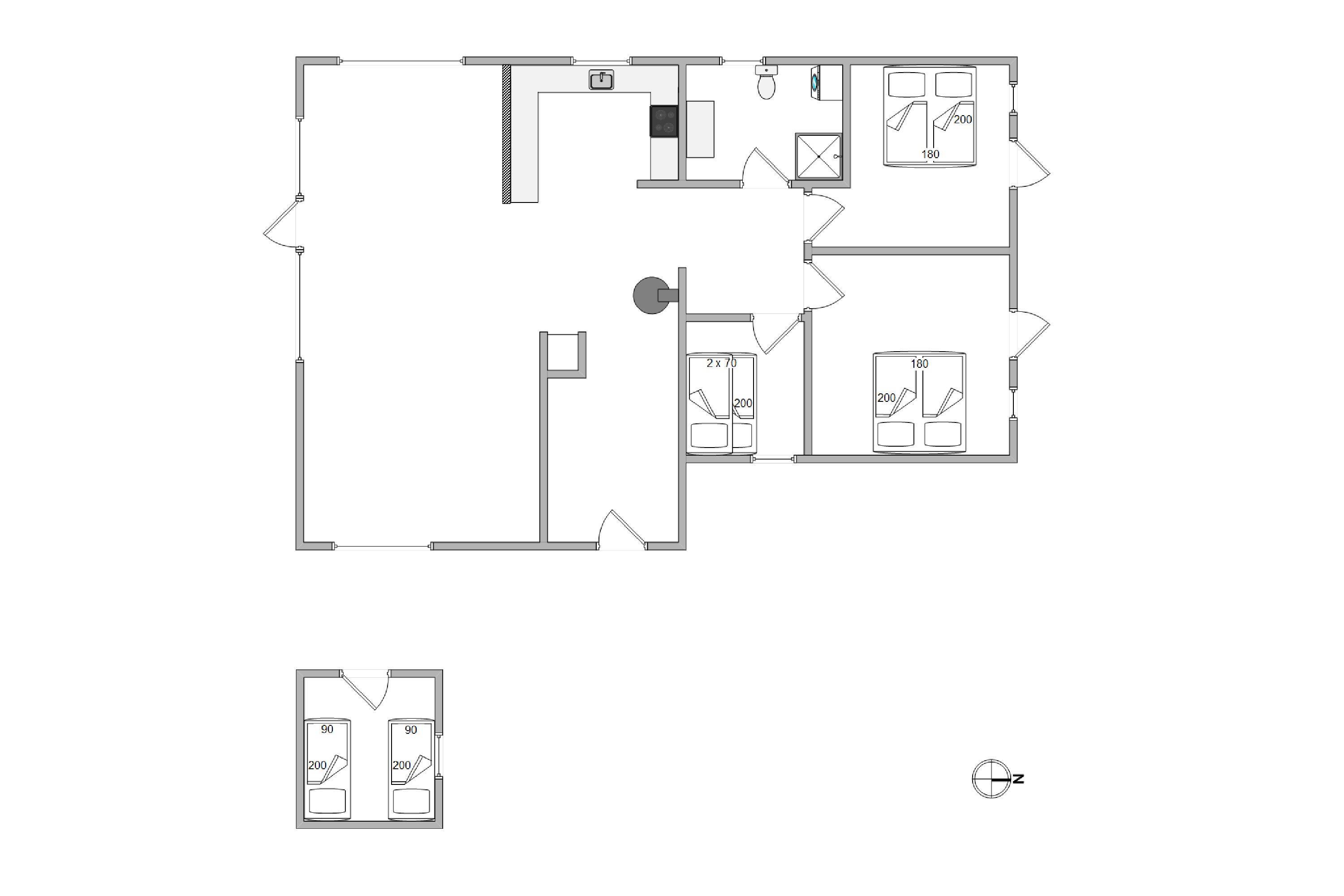 Med tre rummelige soverum inde i huset er sommerhuset ideelt for både par og familier. Sommerhuset tillader op til seks feriegæster, og to af værelserne er udstyret med indbydende dobbeltsenge, mens det tredje værelse er med køjeseng. Yderligere overnatningsmuligheder findes i det hyggelige anneks, hvor der også er to sovepladser er til rådighed.