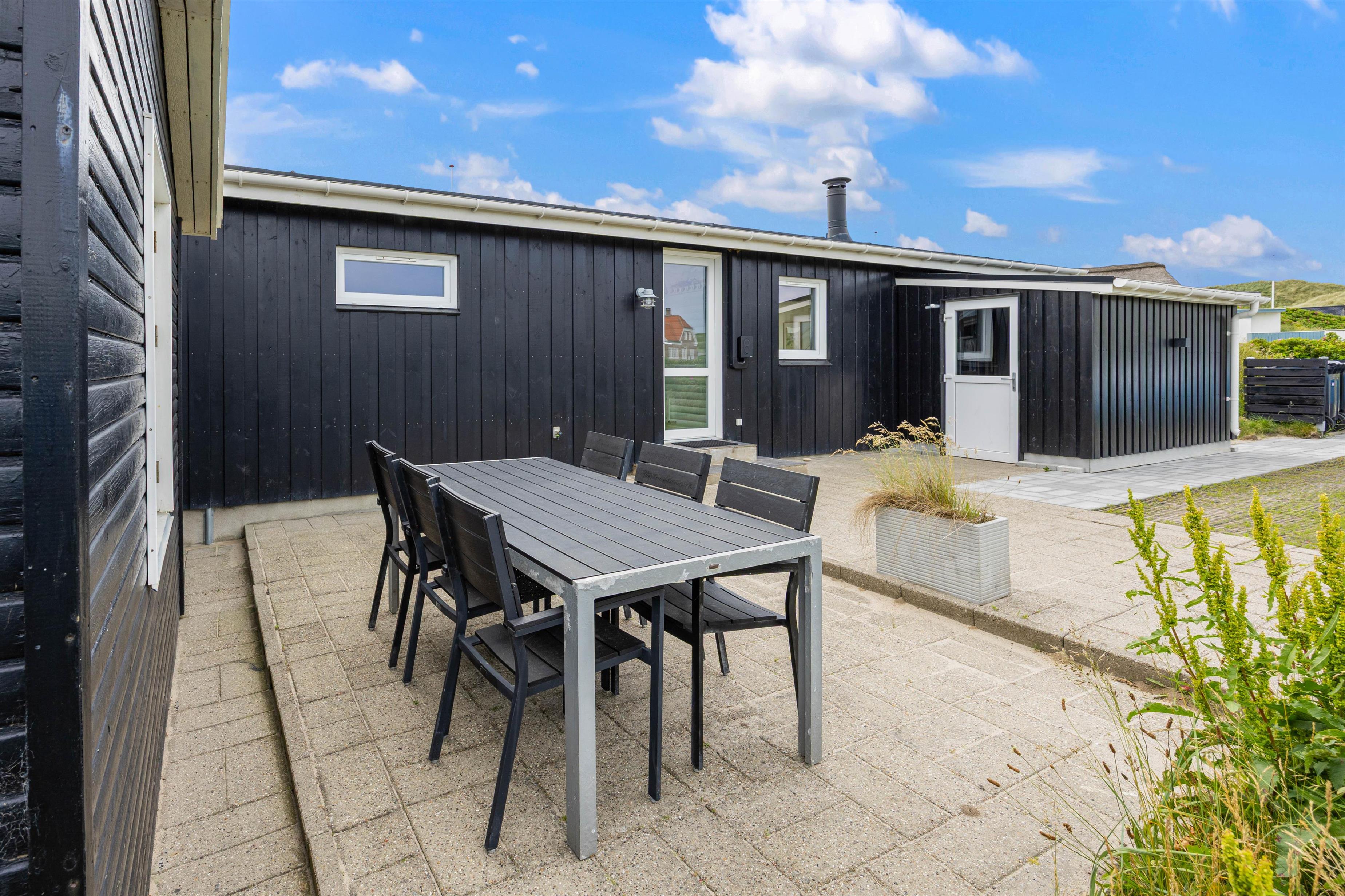 Tæt på Søndervigs hyggelige bymidte og kun 150 meter fra det brusende Vesterhav ligger dette hyggelige feriehus til 8 personer. Det nyligt renoverede (2025) sommerhus er charmerende indrettet med brændeovn, og med til huset hører et lille anneks med to soveværelser og eget badeværelse. Rejser I i elbil, har I også mulighed for at lade jeres elbil ved feriehuset.