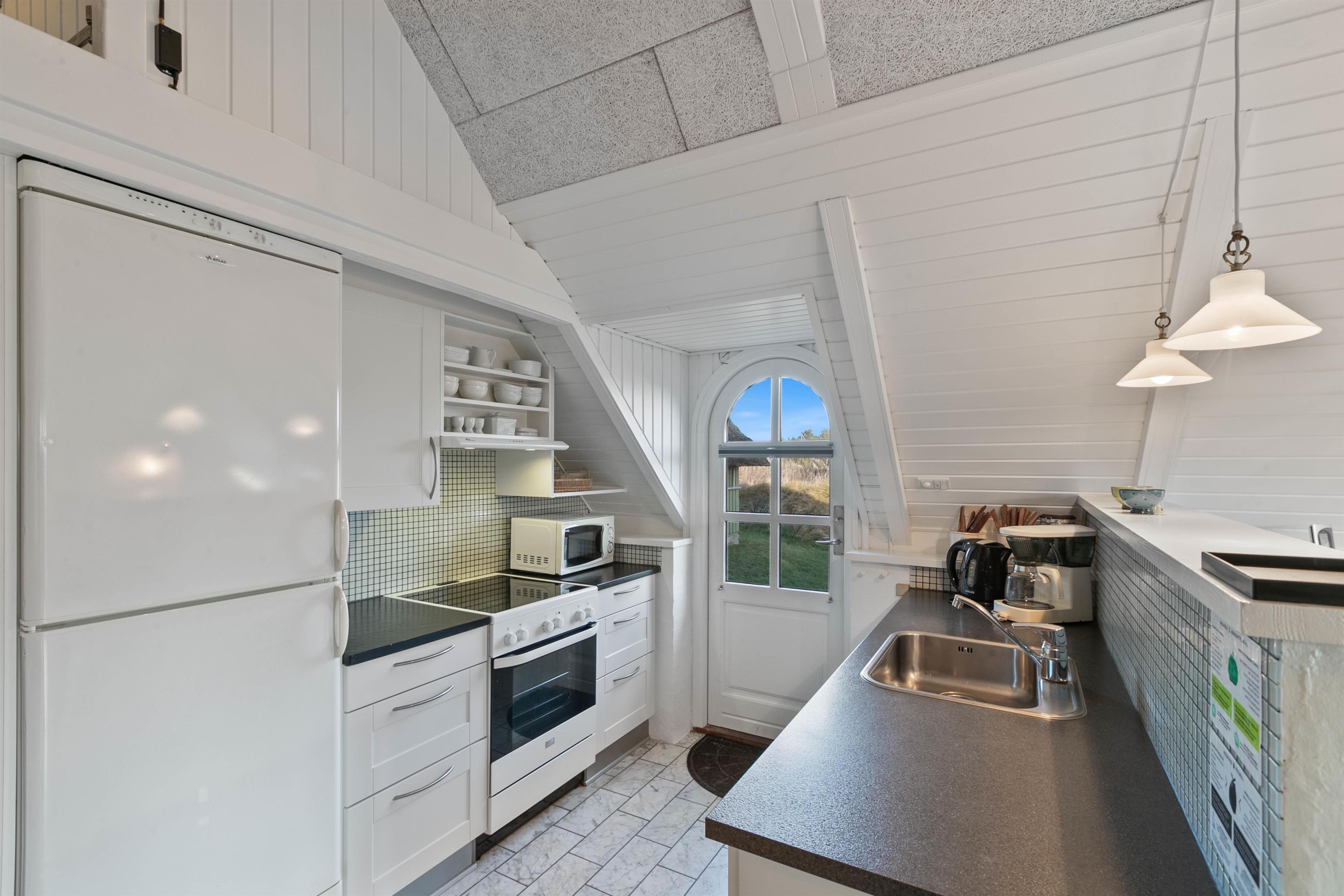 I stuen finder I også brændeovnen, som tilfører ekstra hygge og en behagelig varme på de koldere årstider. Huset er yderst velholdt og generelt rigtig godt udstyret og inviterer til mange timers kvalitetstid med de nærmeste. Der er også en lille hems som vil være en hyggelig krog for de mindste i familien, hvis I rejser med mindre børn.