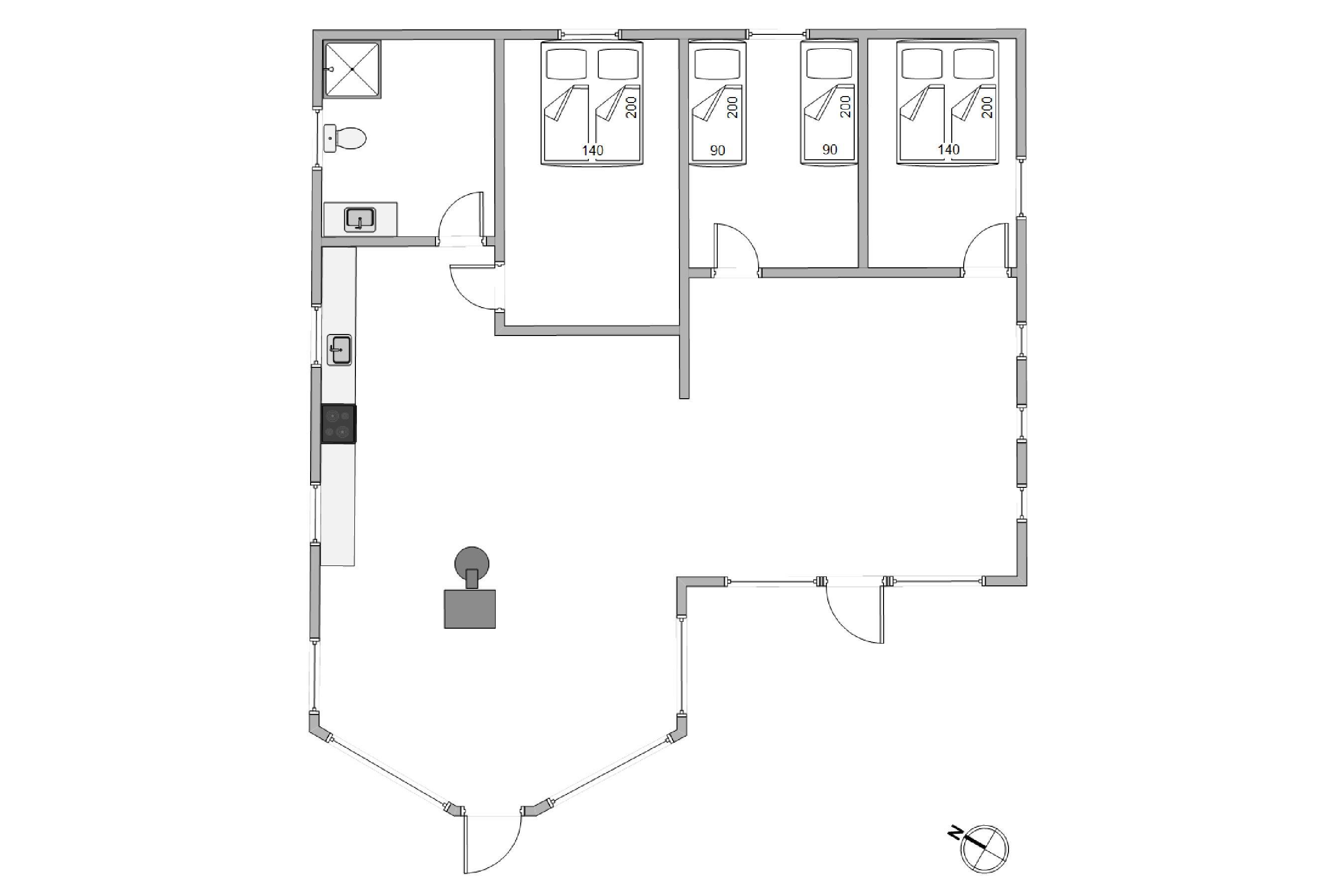 Dette sommerhus rummer i alt 3 soverum, hvilket gør det ideelt for op til seks personer. Sov komfortabelt og vågn op til lyden af bølgerne i et af de hyggelige soveværelser. Uanset hvilken tid på året I besøger, kan I skabe en hyggelig atmosfære i stuen ved at tænde op i brændeovnen. I skal ikke bekymre jer om kolde fødder, når I træder ind i badeværelset, da badeværelset har gulvvarme.