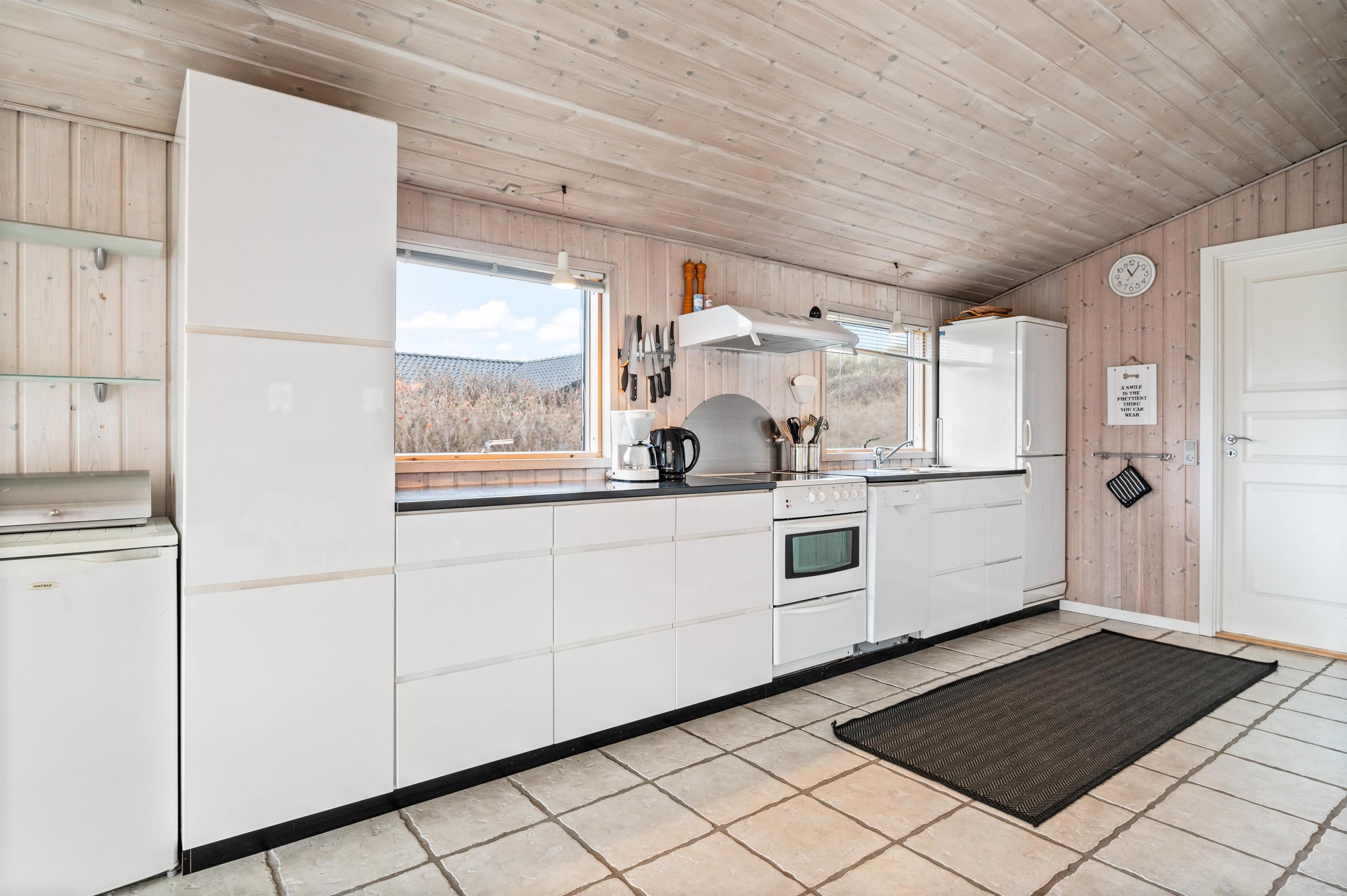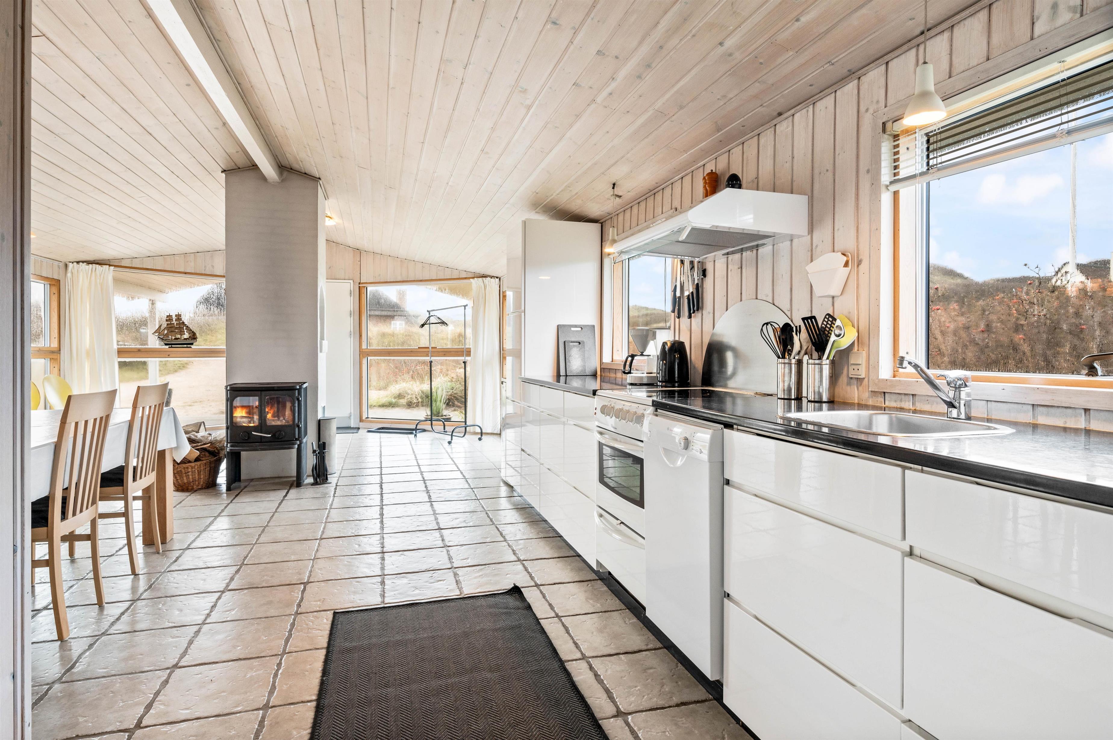 For jer, der elsker at kombinere hygge med moderne bekvemmeligheder, er dette sommerhus i Søndervig det ideelle valg. Køkkenet er fuldt udstyret med en opvaskemaskine, så I kan spare tid og nyde jeres ferie fuldt ud uden at skulle bekymre jer om opvasken. Det kombinerede spise- og opholdsområde inviterer til hyggelige måltider og afslappende aftener sammen. Desuden er der en vaskemaskine og tørretumbler, der giver ekstra bekvemmelighed under jeres ophold. Sommerhuset har også et redskabsrum, der kan aflåses, hvilket giver ekstra sikkerhed for jeres ejendele.
