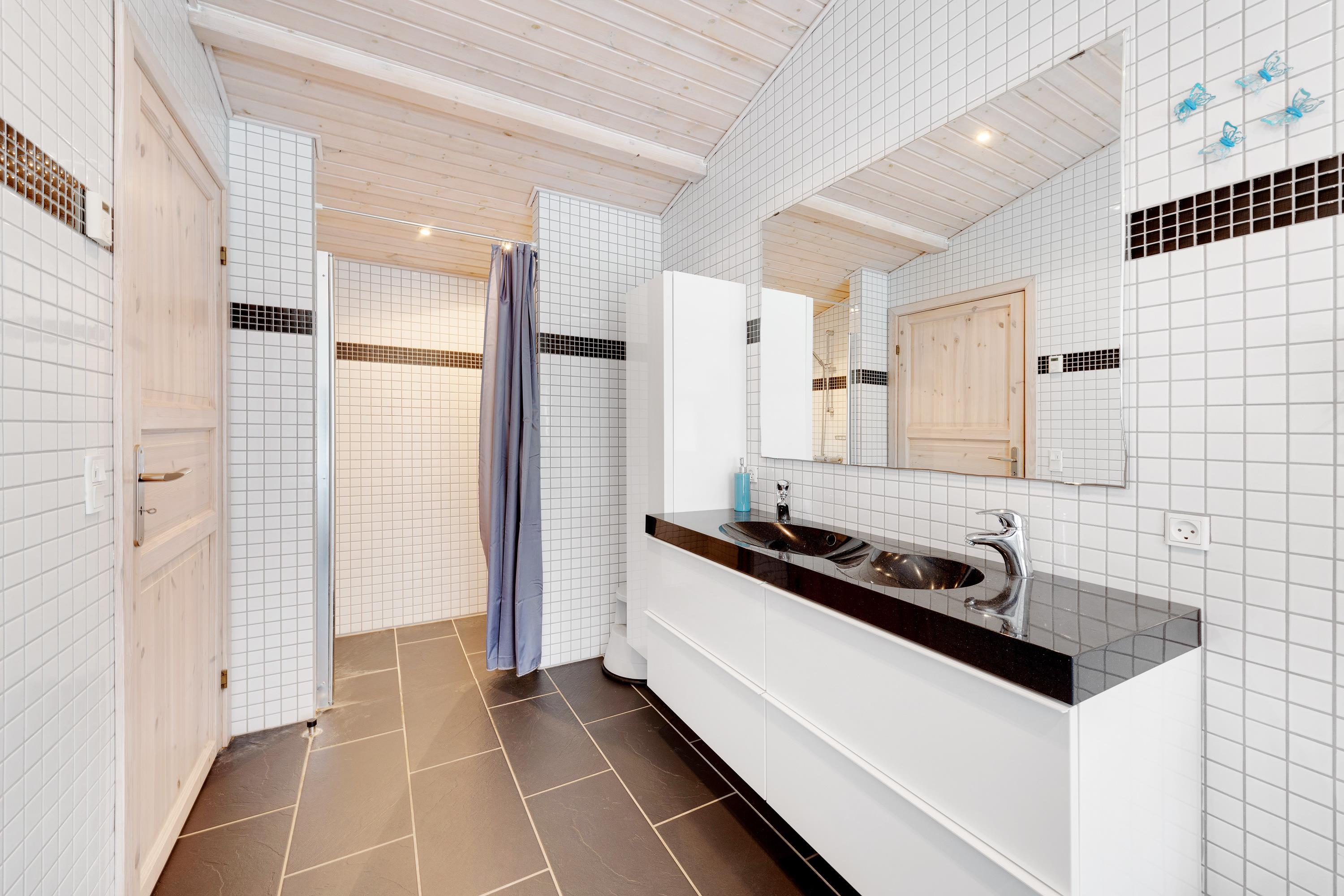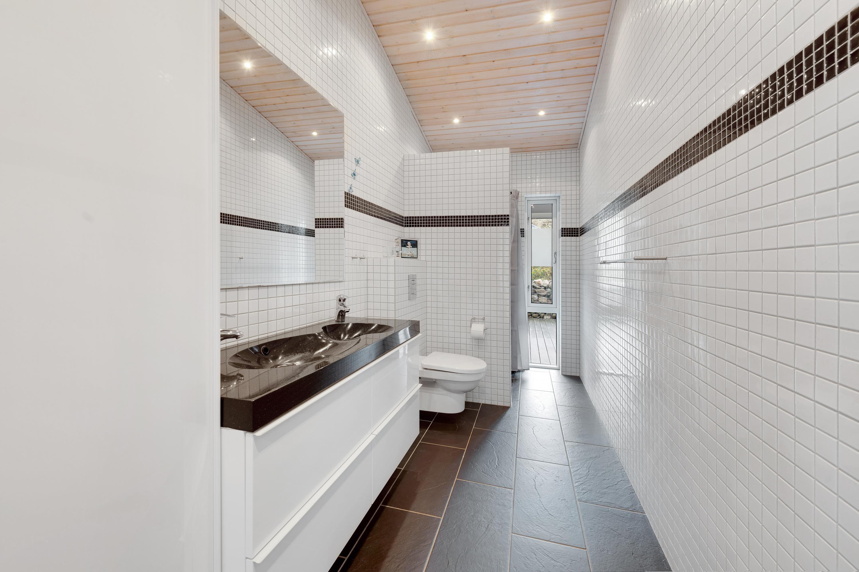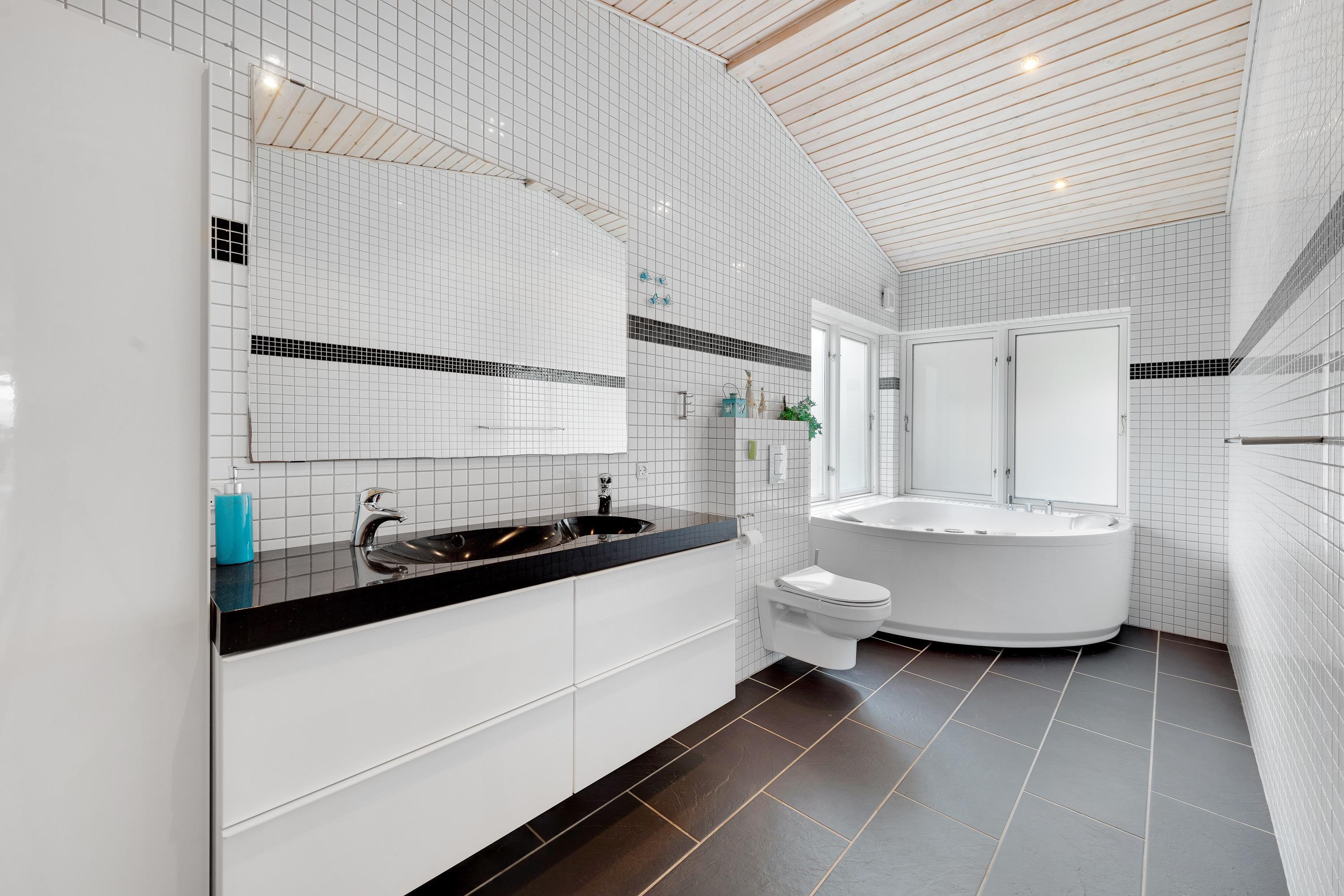 Feriehuset har en flot og moderne indretning med masser af gode, praktiske detaljer, som giver en følelse af afslapning og velvære. Efter en lang og aktiv dag ude kan I eksempelvis hoppe en tur i husets spabad eller nyde en lækker middag i spisestuen. De store vinduer, som går fra gulv til loft skaber en flot panorama-udsigt over det omkringliggende landskab og inviterer både lys og naturen indenfor. Huset er praktisk indrettet med klinkegulv og har desuden tre store, lyse soverum og to flotte badeværelser.