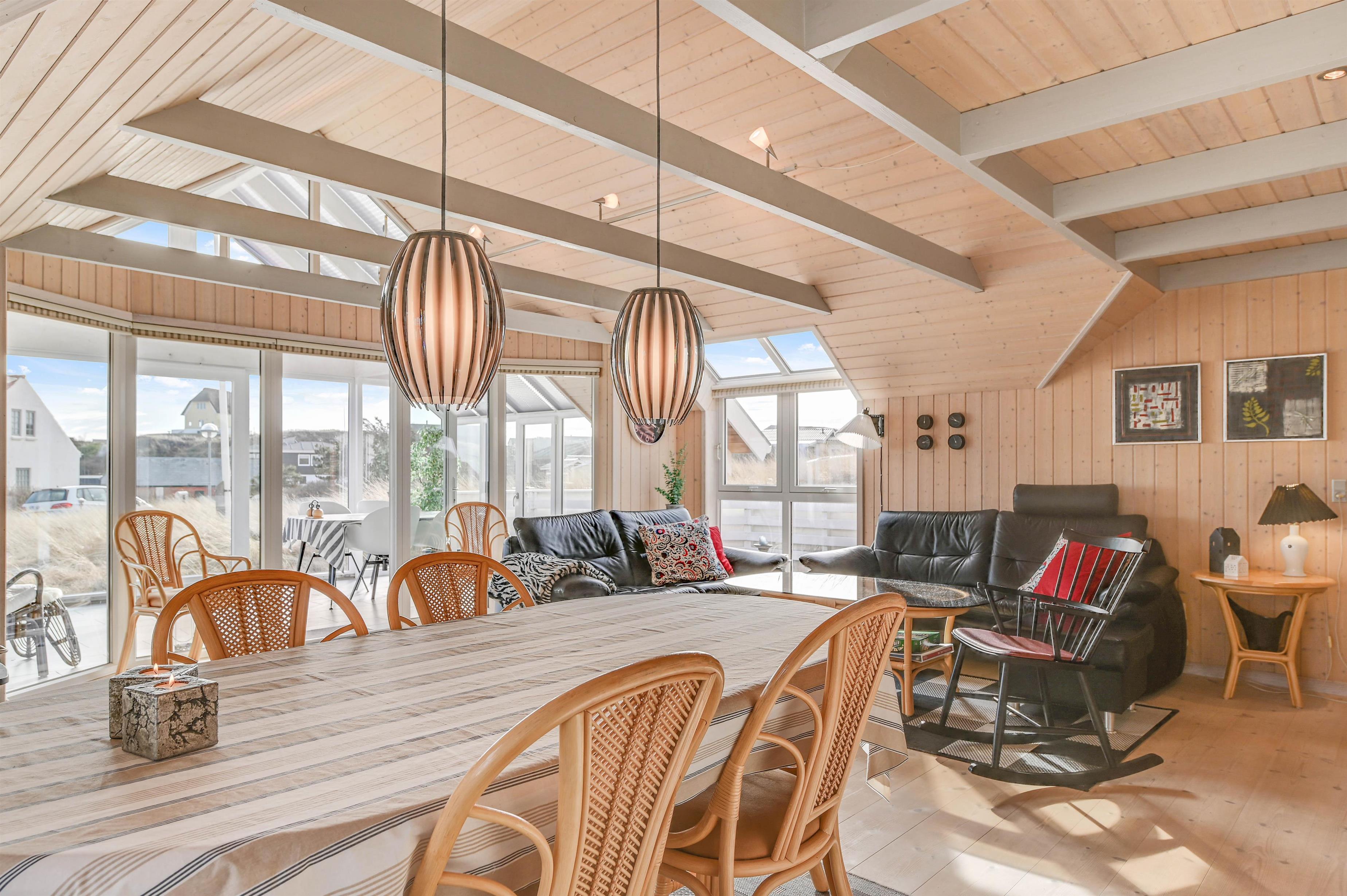 Kun 200 meter fra sommerhuset, bag en enkelt klitrække, finder I den skønneste sandstrand, som indbyder til badning, afslapning eller friske traveture. Dermed er sandstrandene og Vesterhavet også et oplagt udflugtspunkt på alle tider af året.