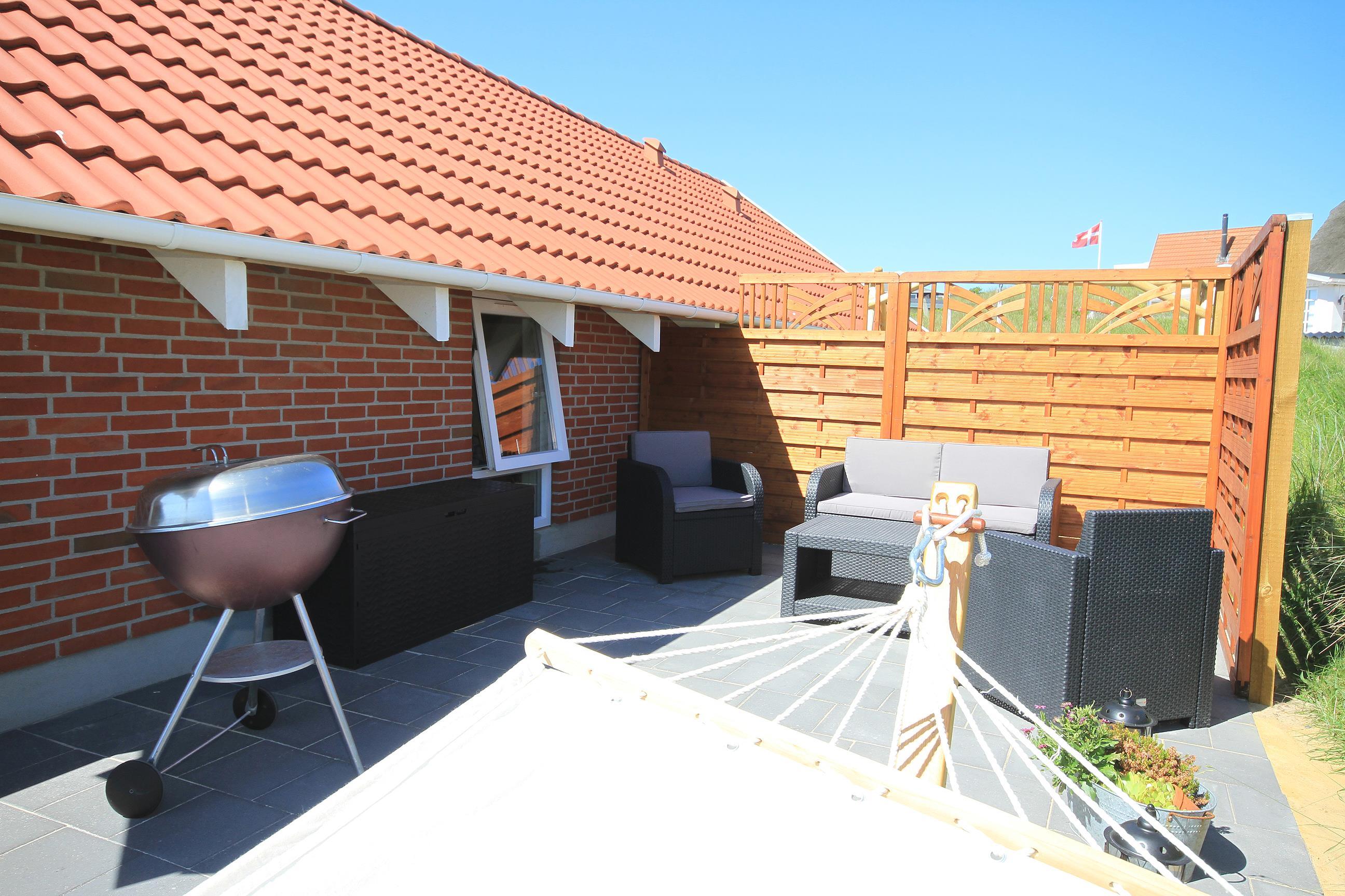 På de varme og solrige feriedage kan I rykke ud på sommerhusets 3 gode terrasser, der er møbleret med havemøbler, liggestole og grill. Mod øst har I en stor terrasse, hvor dagens første kop kaffe passende kan indtages. Derudover har I en terrasse mod sydvest samt en terrasse mod nord. I vil altid kunne finde jer et godt sted at slappe af på de tre terrasser.