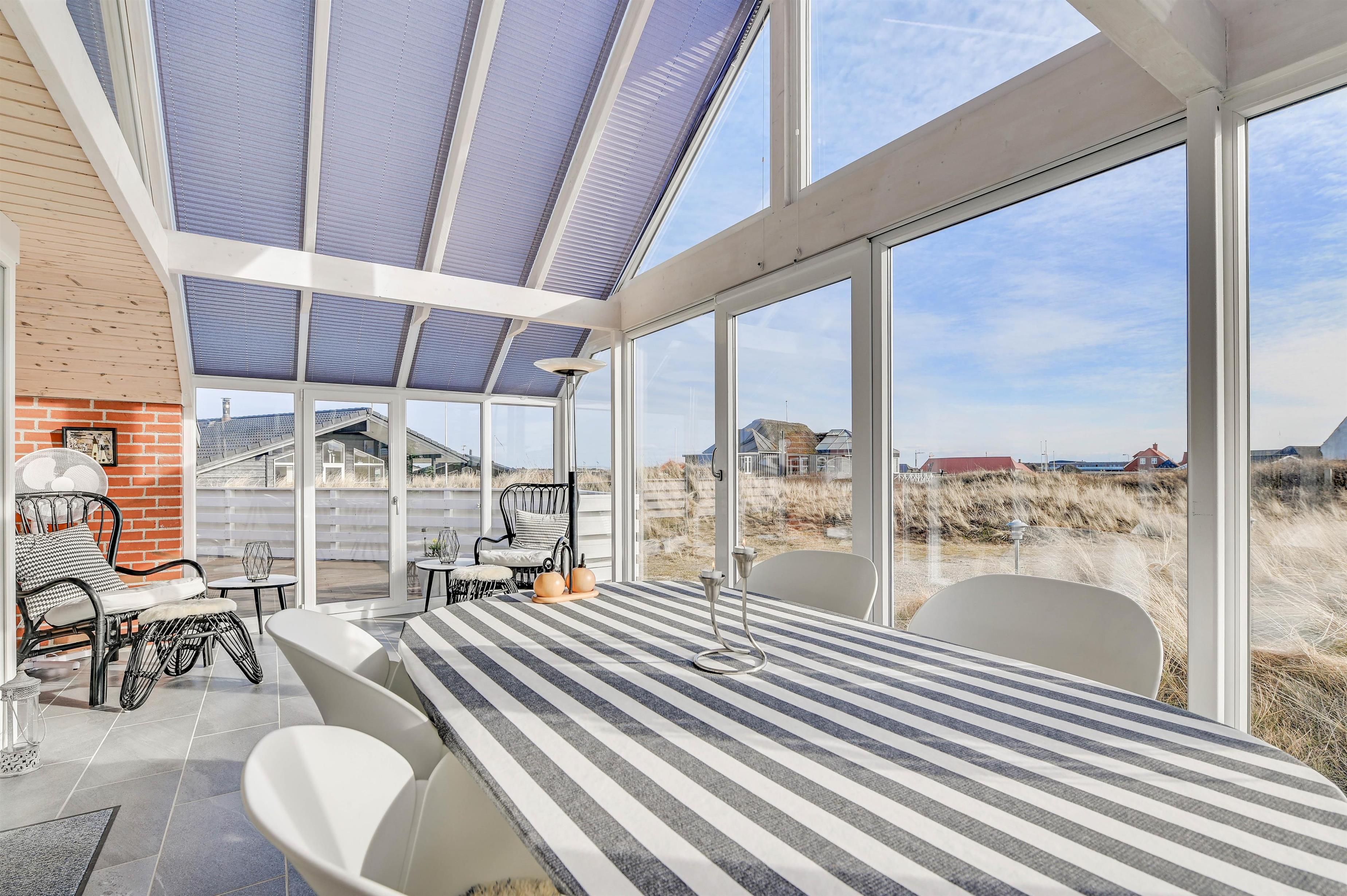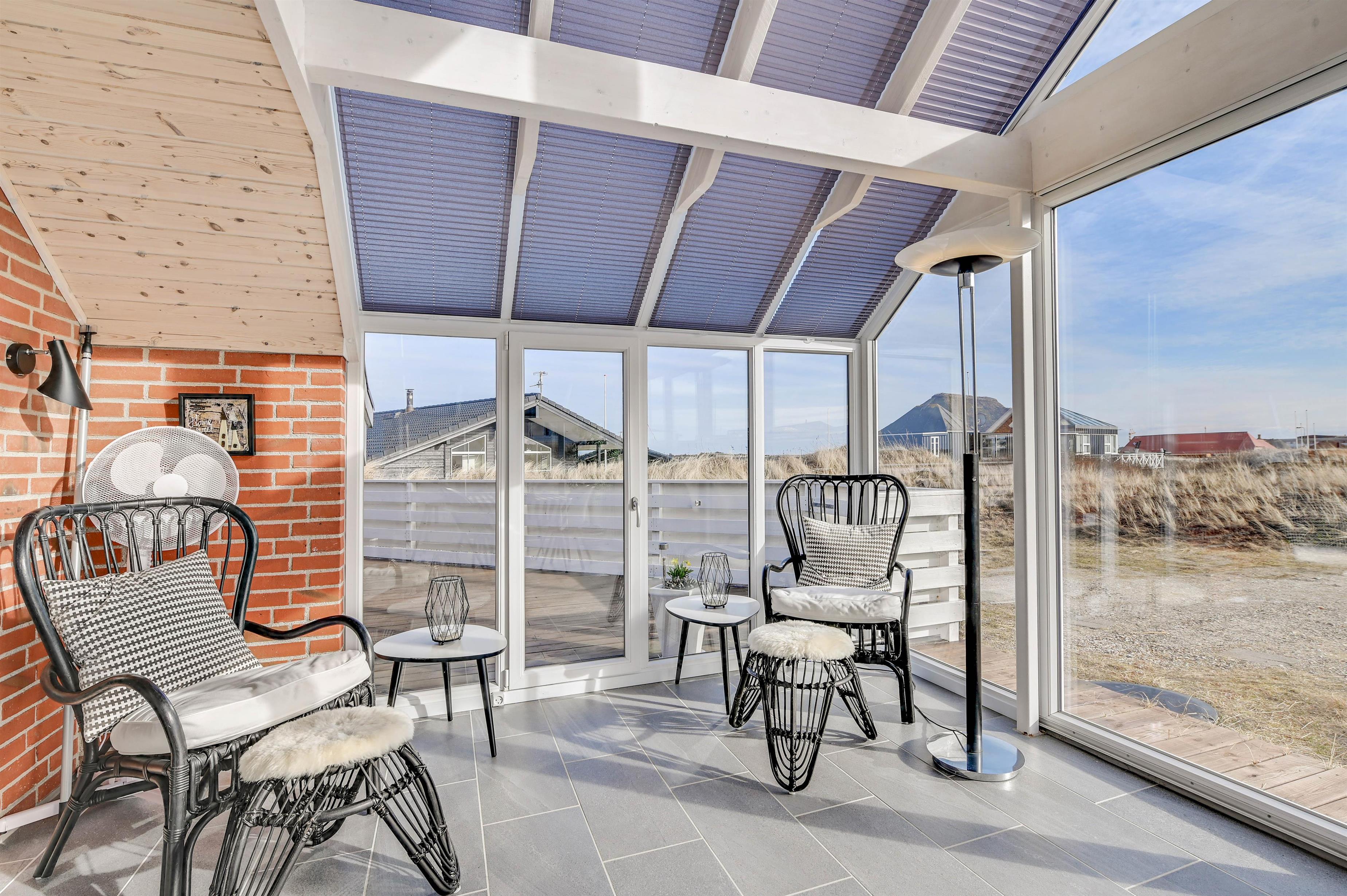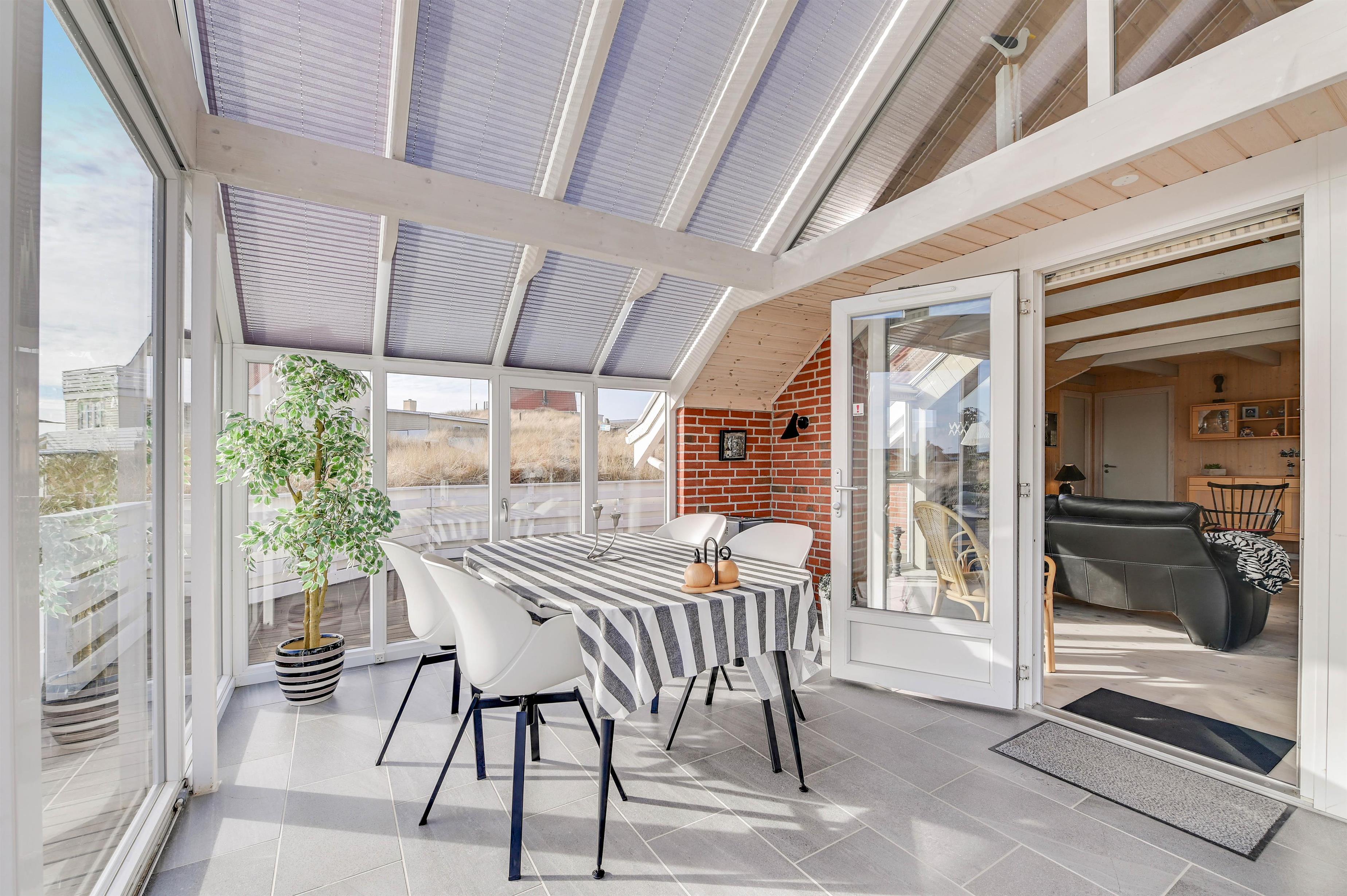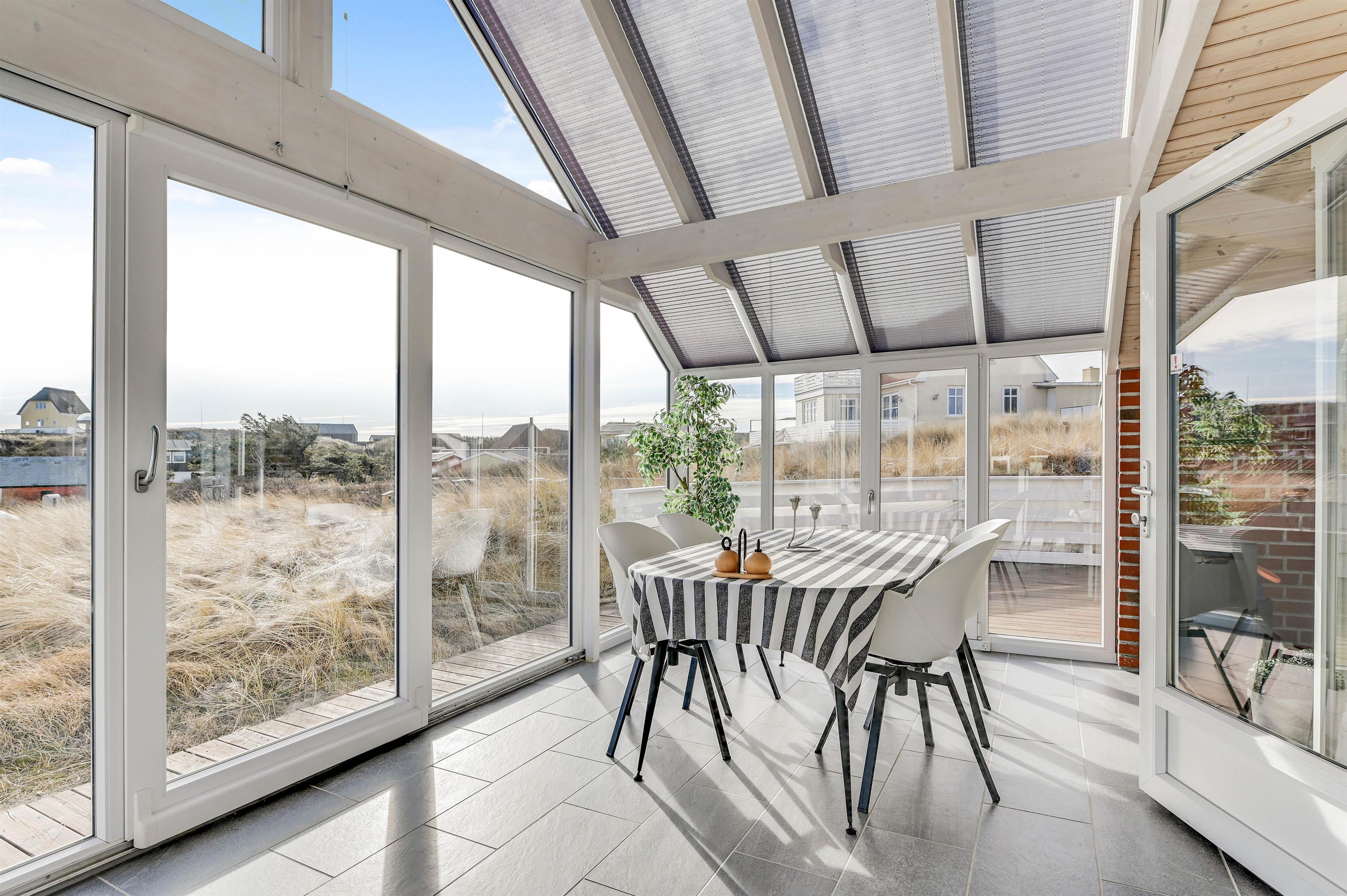 Hvis vejret ikke er med jer, men I gerne vil have oplevelsen af at sidde ude, kan I sætte jer i udestuen. Herfra har I en skøn udsigt til den omkringliggende natur, mens I sidder i komplet ly og læ. I udestuen har I desuden gulvvarme.