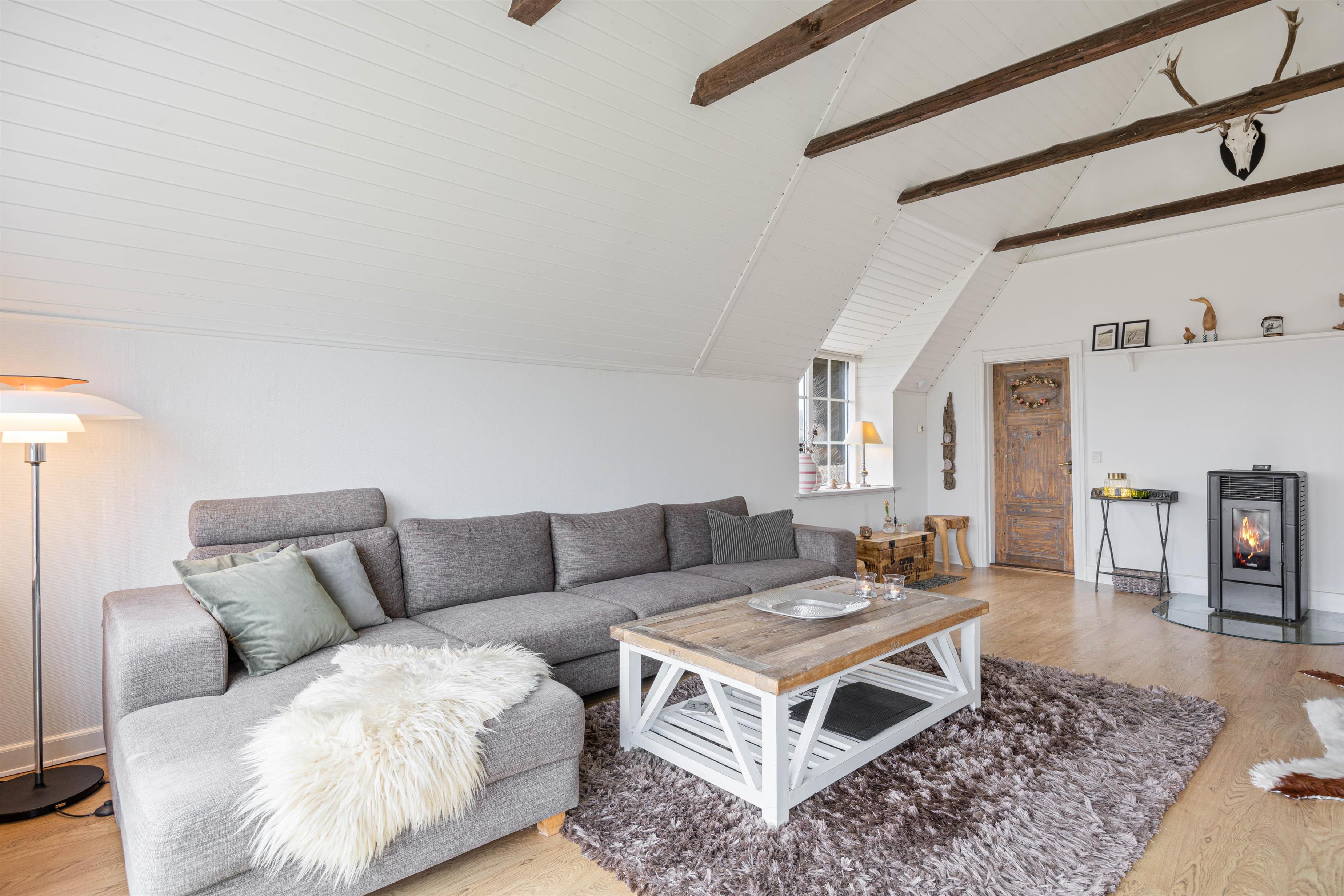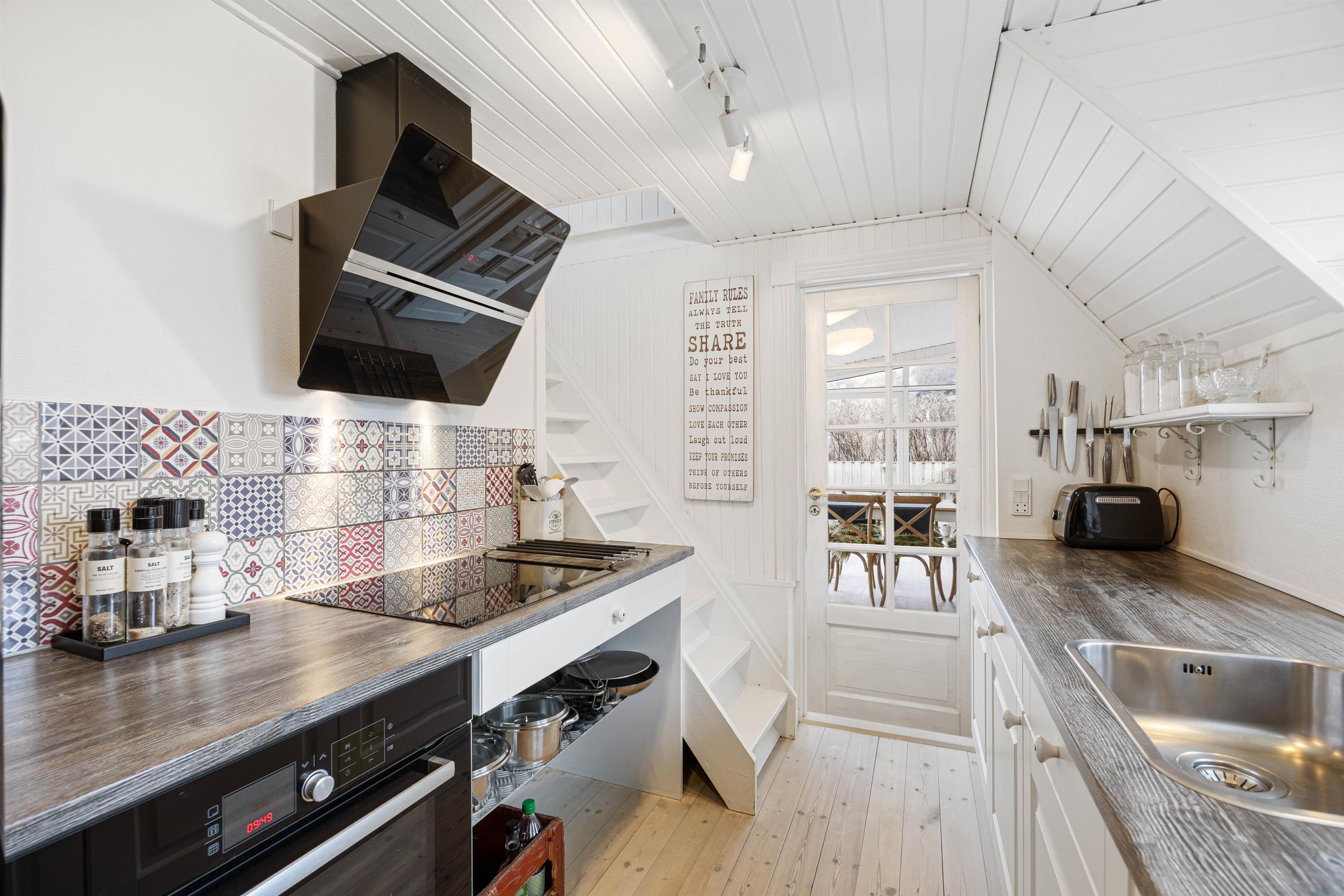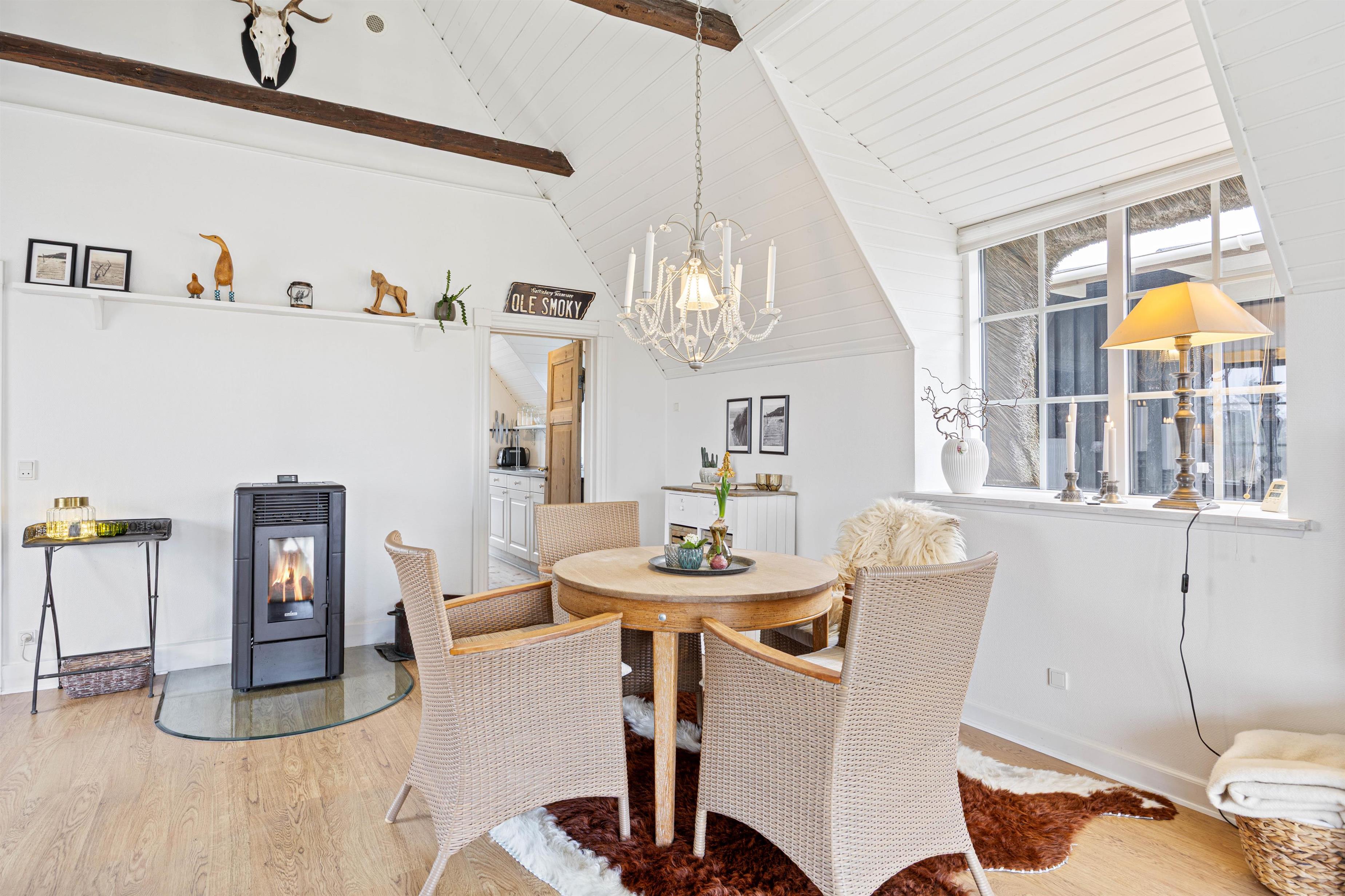 Med en størrelse på 104 kvadratmeter er der rigelig med plads til 4 personer og 1 hund. Køkkenet er hyggeligt og indbydende med masser af charme. Den skønne udestue med spiseplads giver fantastisk lysindfald og er det perfekte sted at nyde morgenmaden eller aftensmaden.