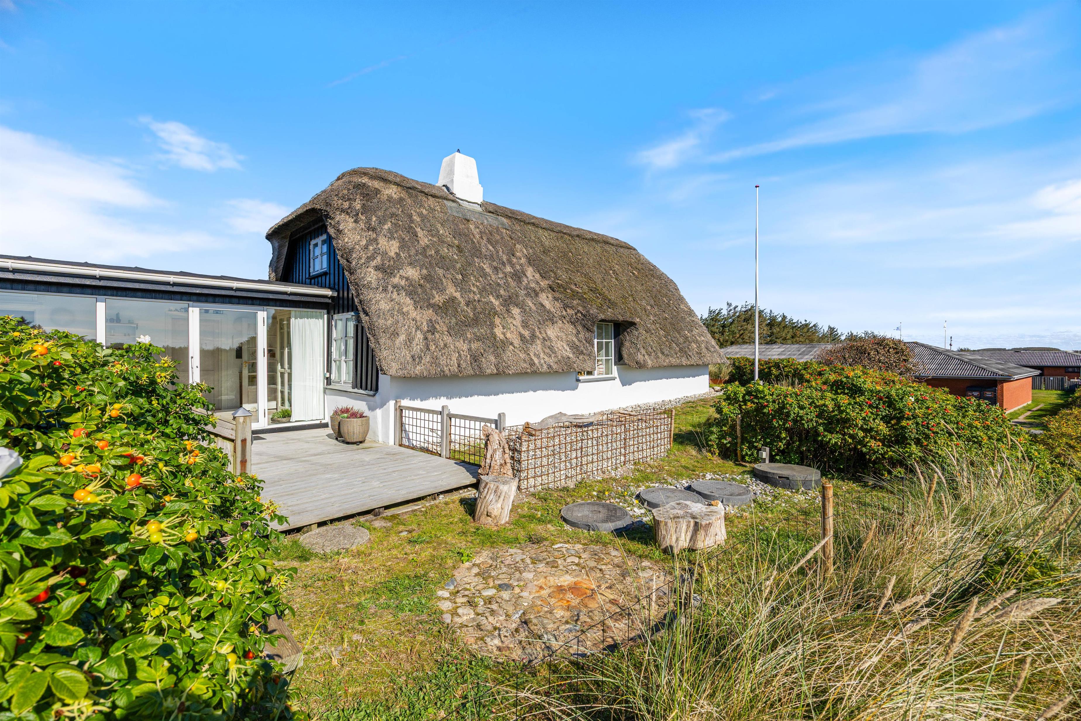 Det smukke og stråtækte sommerhus på Nordsøvej 200 er bygget i 1920 og blevet renoveret i 2015. Sommerhuset har et areal på 107 m2 og rummer plads til 4 personer og 1 hund. Beliggenheden er tæt på Vesterhavet, hvor I kan nyde lange gåture langs stranden, mens I lytter til bølgernes brusen.
