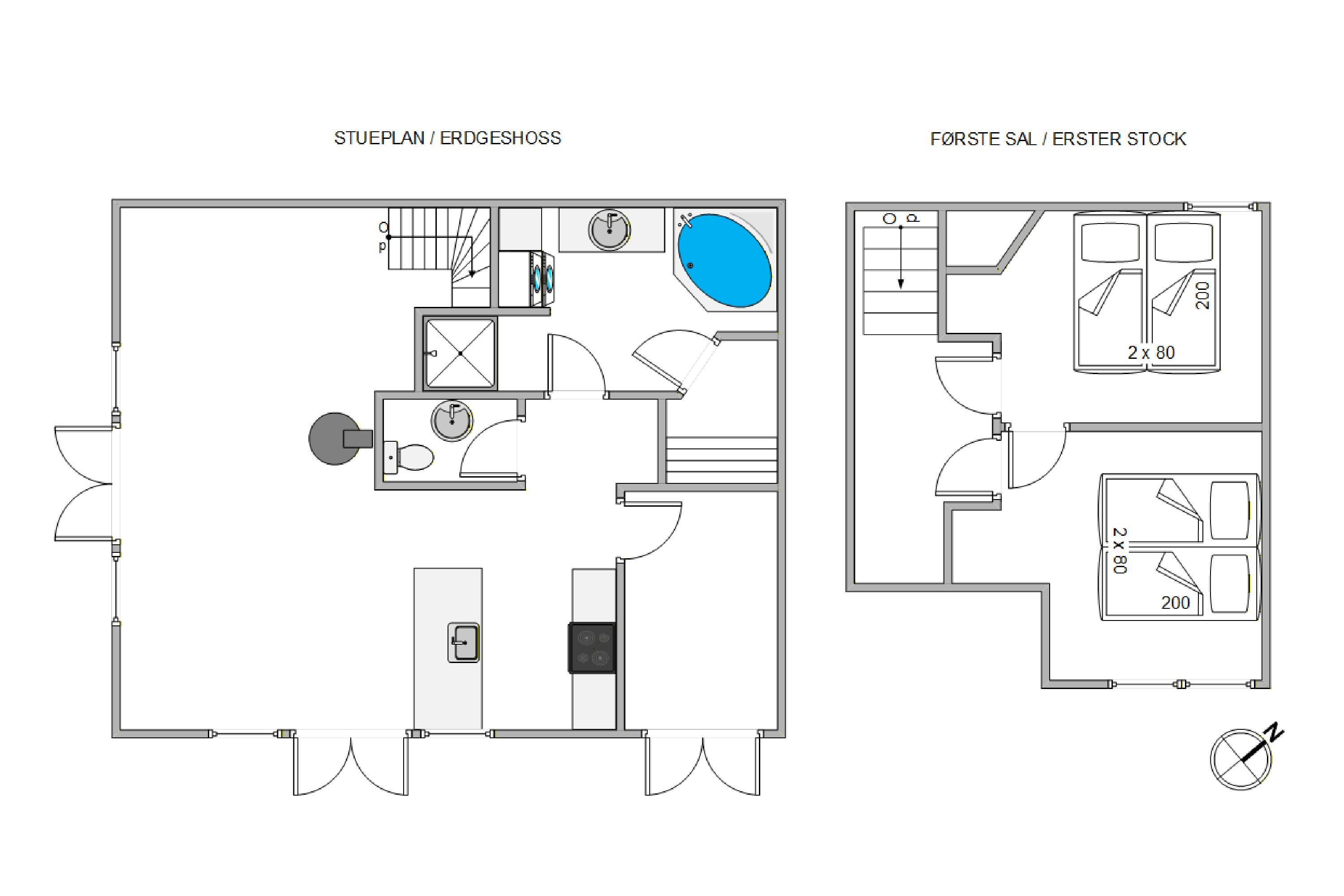 1. soverum/sengestørrelser2 x 80 x 200 cm