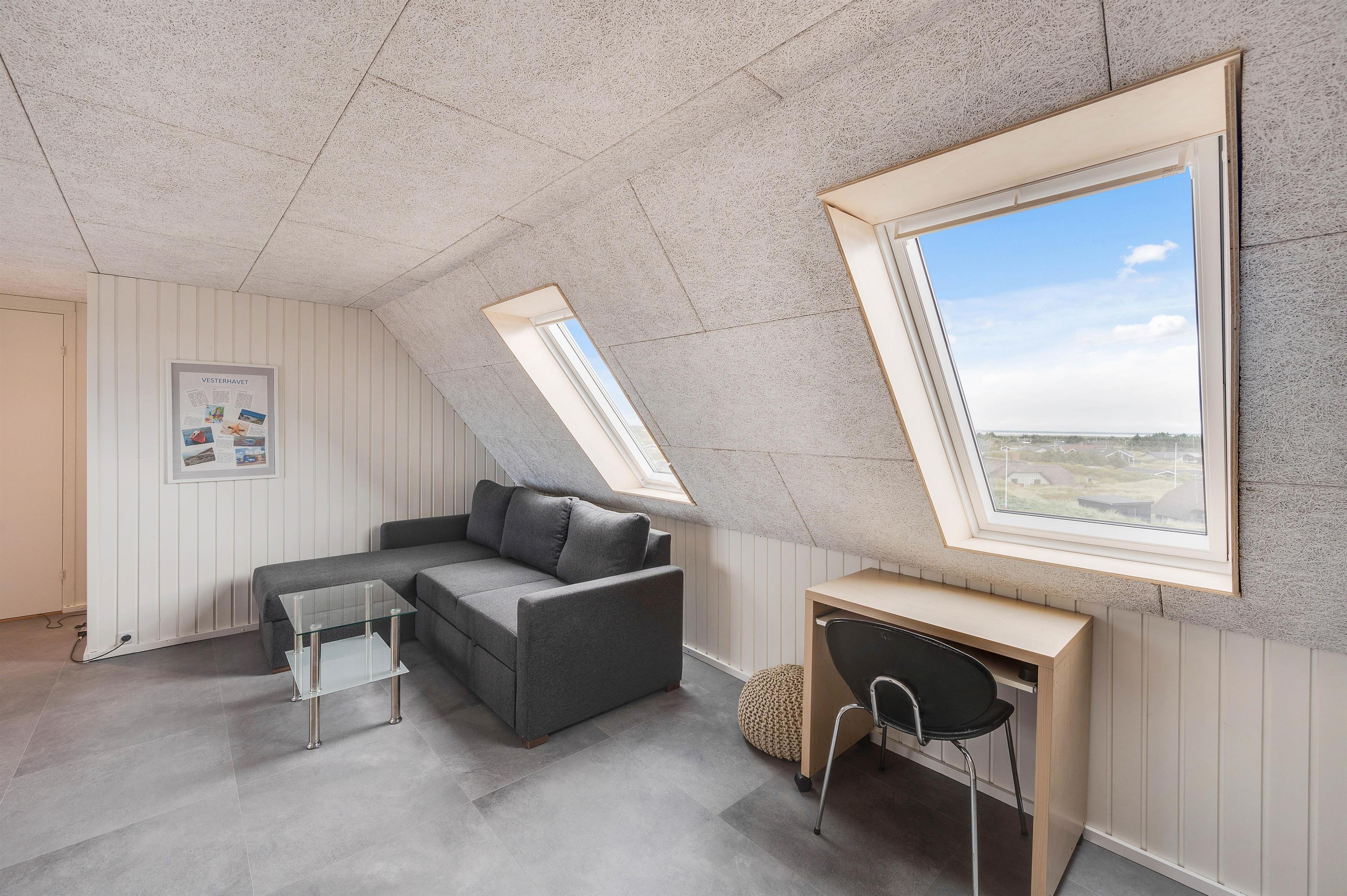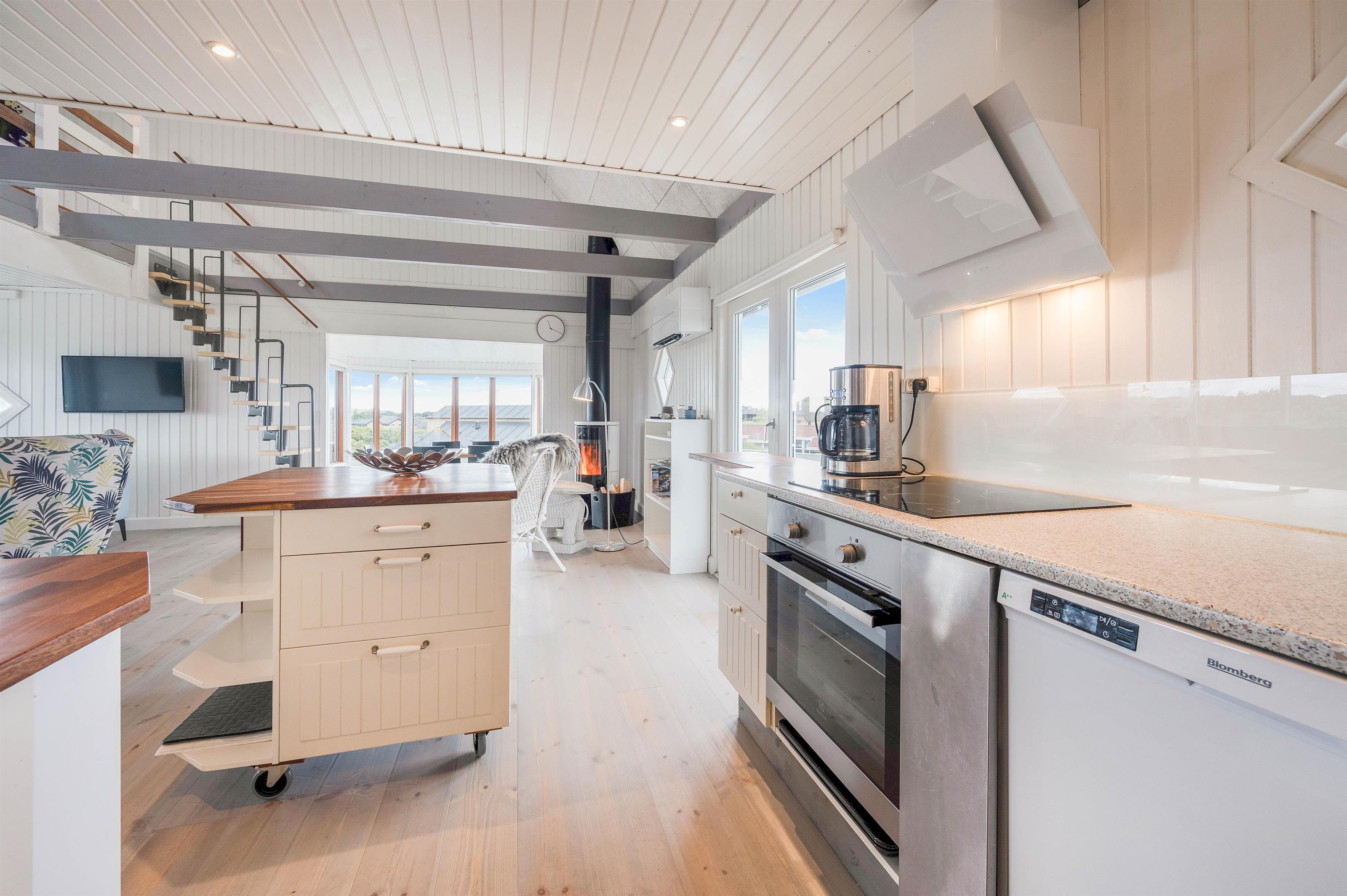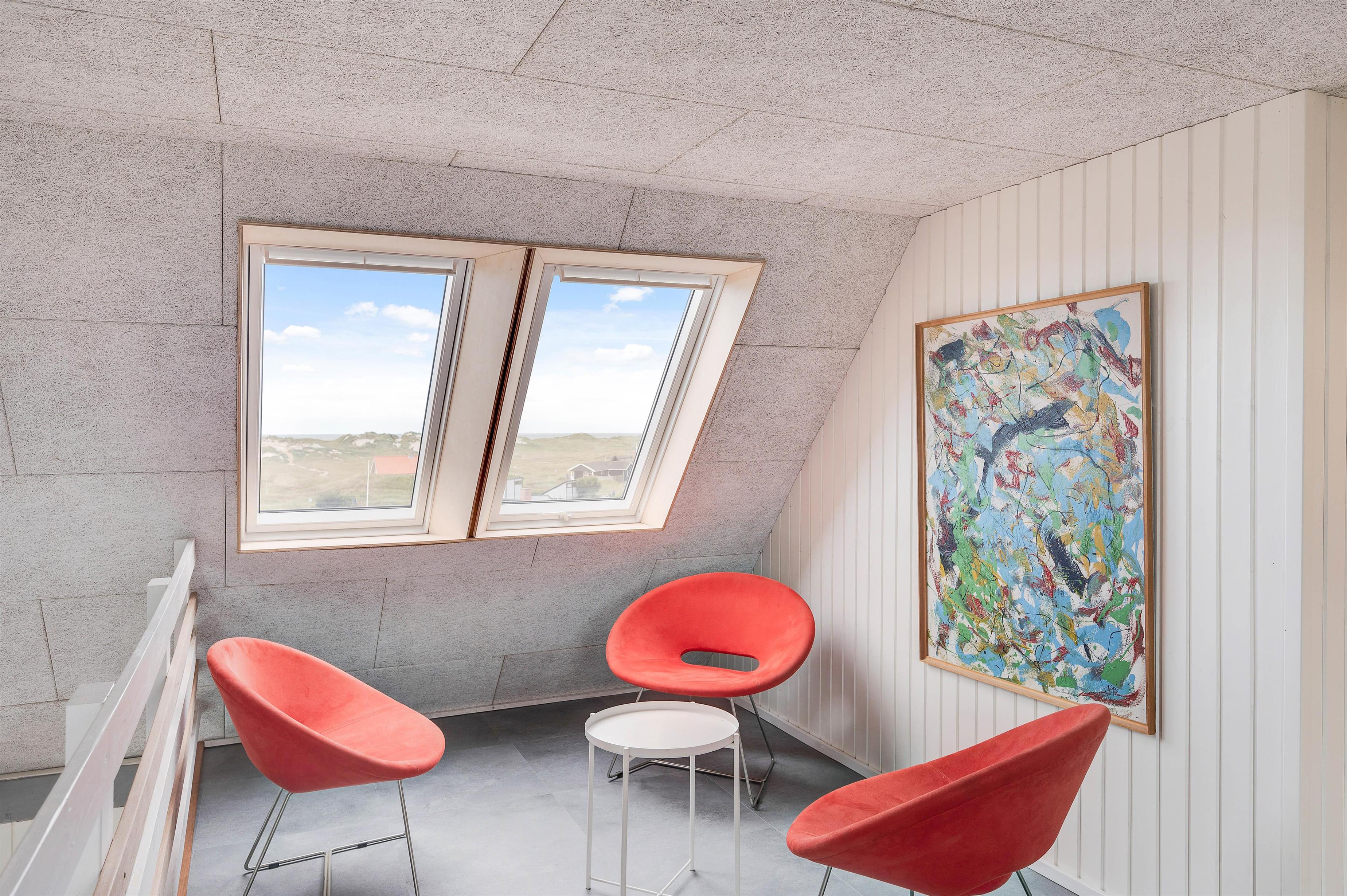 Det dejlige træhus har en god lukket terrasse, som gør, at du kan sidde ugeneret og nyde duften af den danske sommer. Har I mindre børn, så behøver I heller ikke bekymre jer om, at de kan løbe væk. Udsigten fra terrassen er noget for sig. Da huset ligger hævet i landskabet, kan I nemlig se langt ud i horisonten. Her er der mulighed for at nyde den skønne natur ved Vesterhavet.