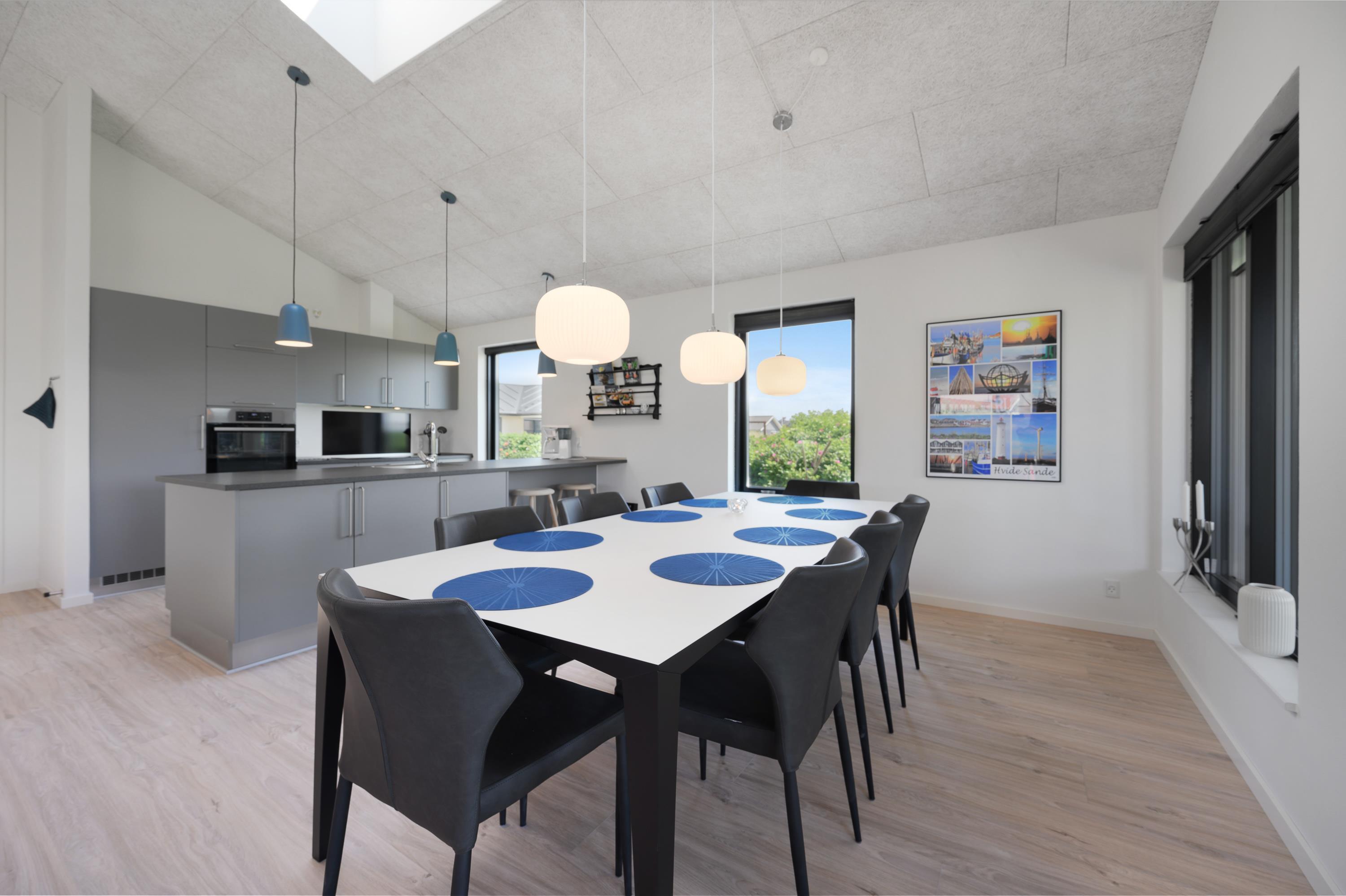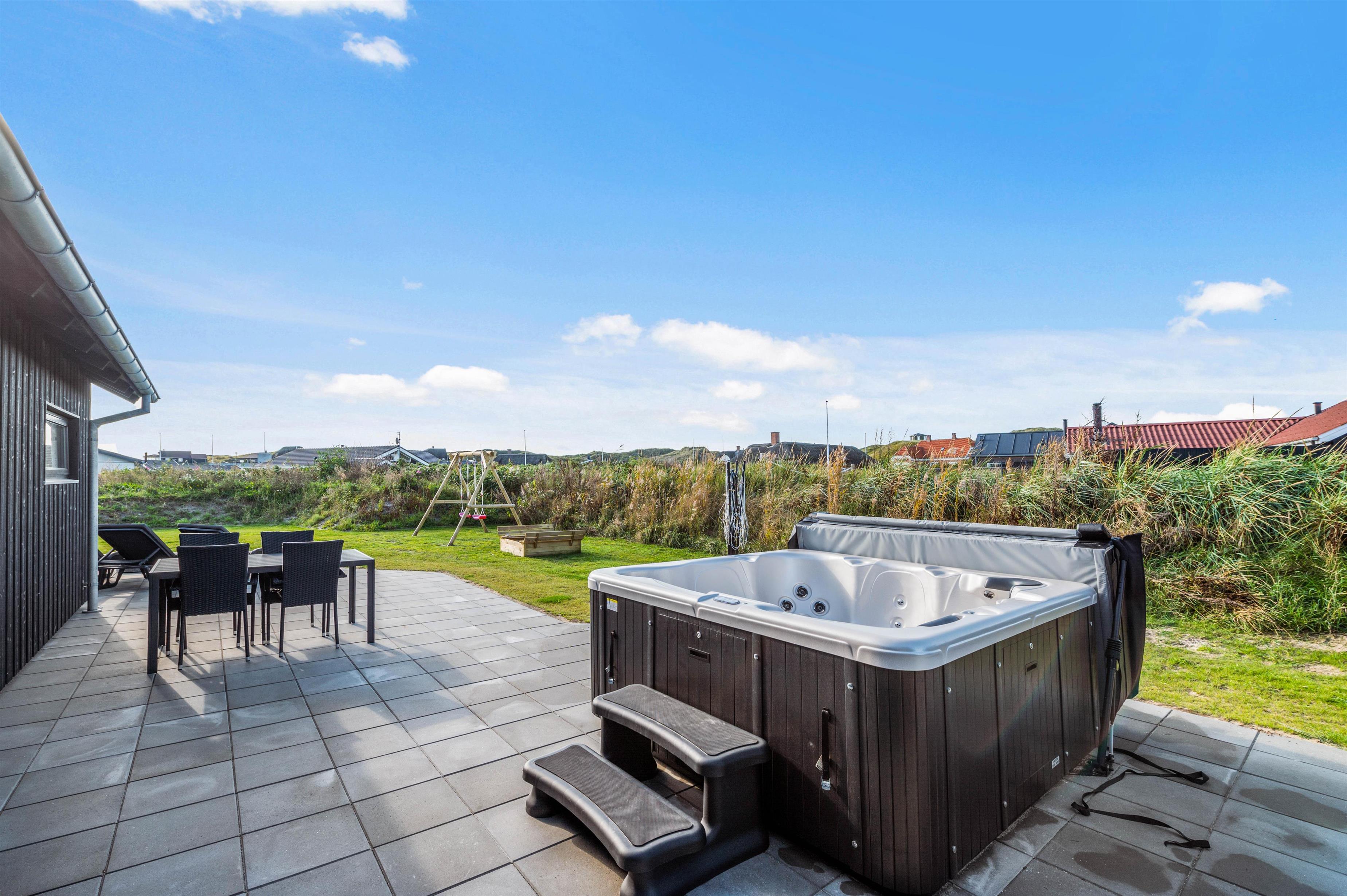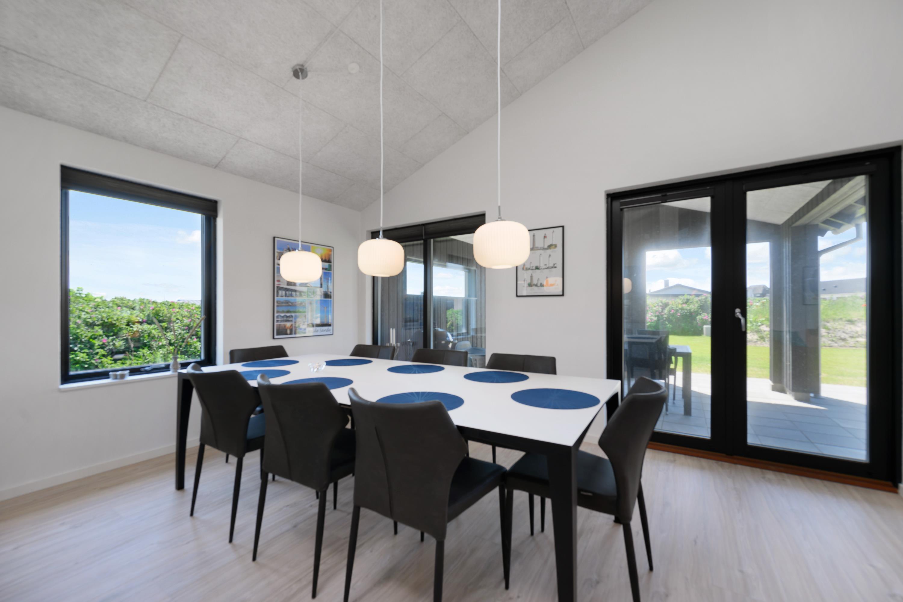 Drømmer I om en sommerhusferie ud over det sædvanlige i det vestjyske klitlandskab så tæt på havet, at I kan høre bølgebrus fra terrassen? Så er dette femstjernede sommerhus på Hafavej 26 i Søndervig bestemt værd at se nærmere på! Sommerhuset er opført i 2021, og beliggenheden er helt fantastisk på en stor naturgrund med kun 200 meter til Vesterhavet. Det flotte sommerhus har plads til 8 personer, og der er sørget for underholdning for alle aldre med både aktivitetsrum og udespa. Hunde er også velkomne! Der er mulighed for at lade jeres elbil ved feriehuset med 16 amp kraftstik.