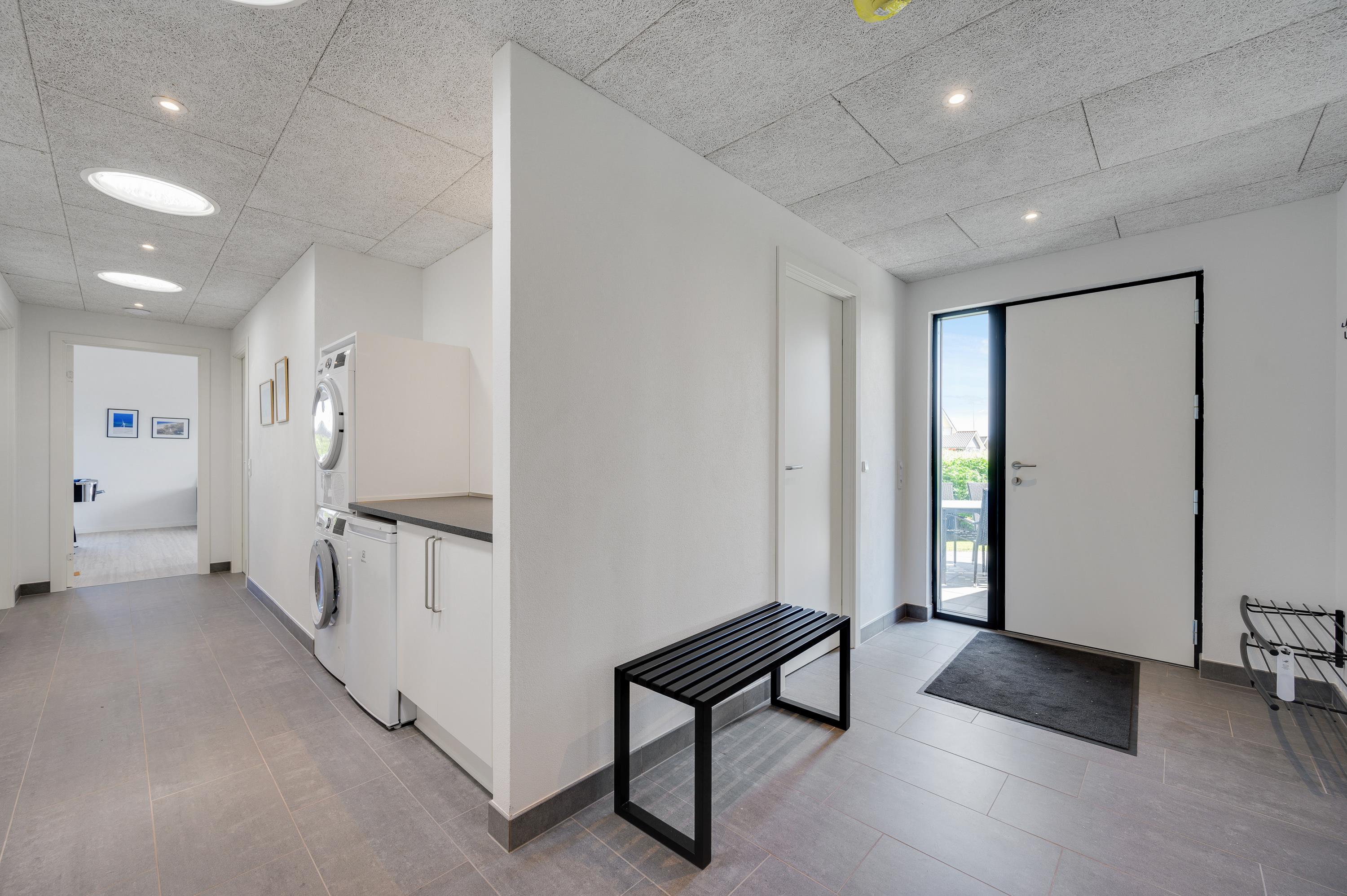 Det flotte sommerhus har alle de nødvendige praktiske bekvemmeligheder, der skal til at lette gøremålene på ferien, som fx opvaskemaskine, tørretumbler, vaskemaskine og ikke mindst hurtigt fiberbredbånd.