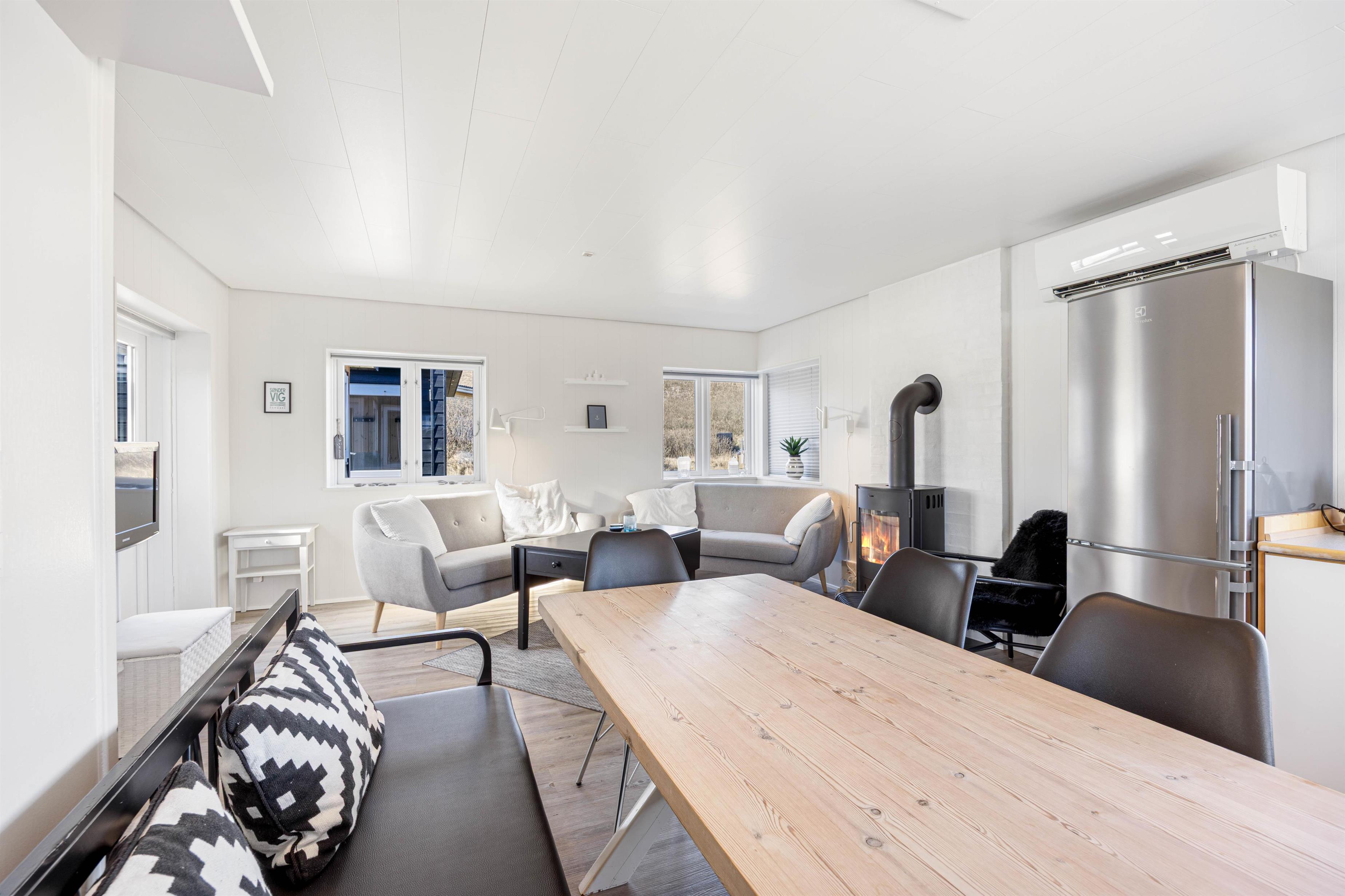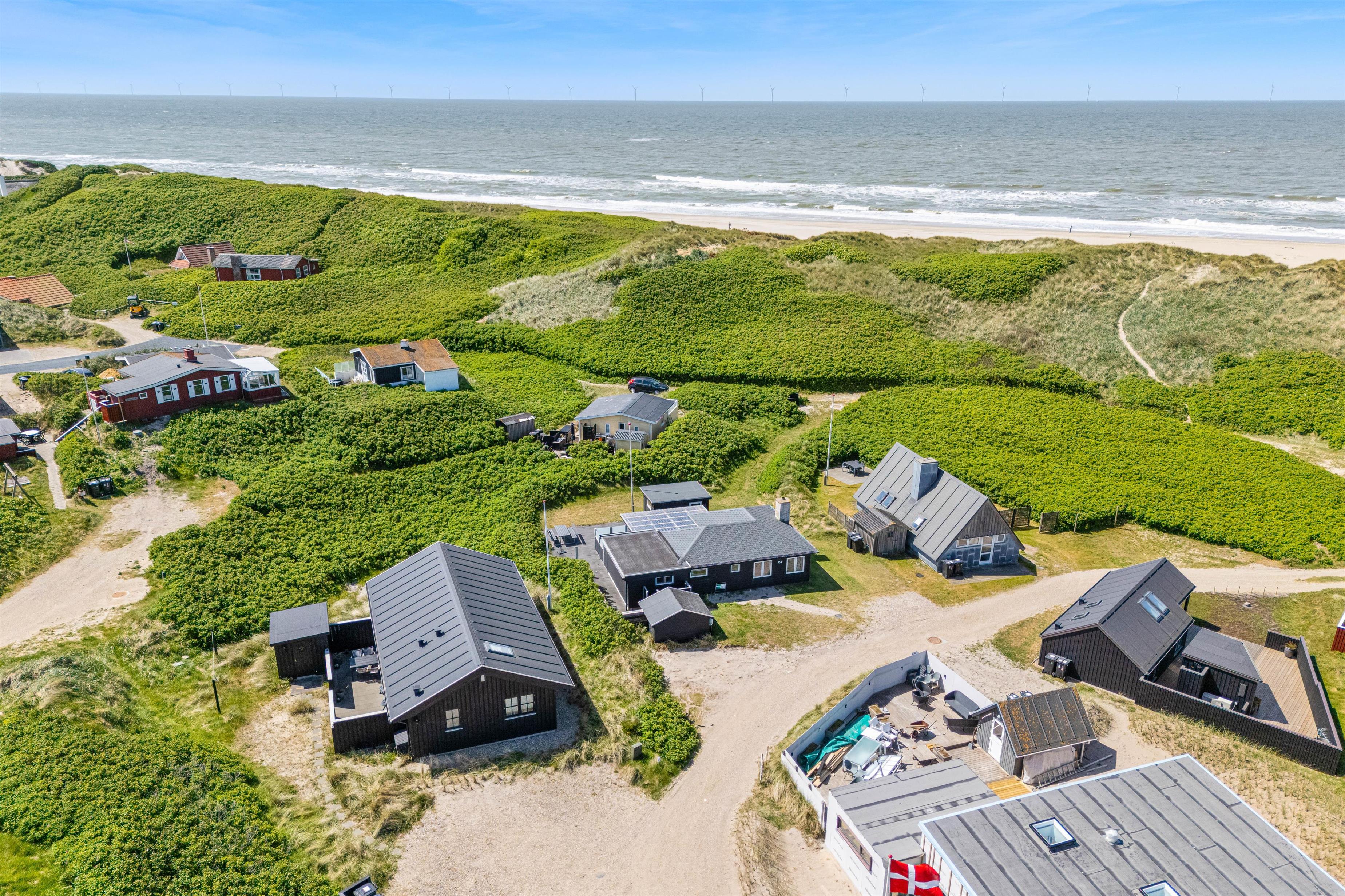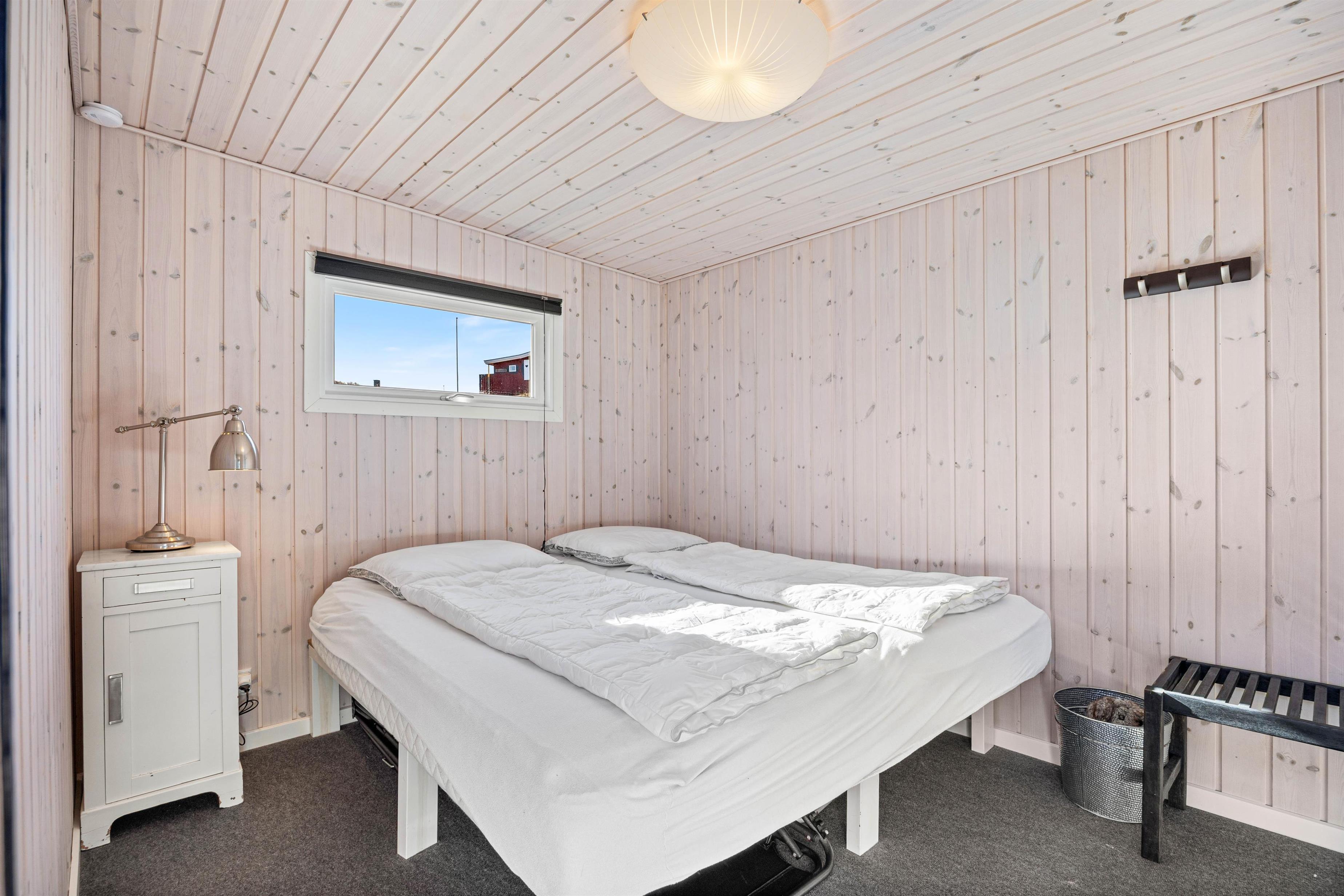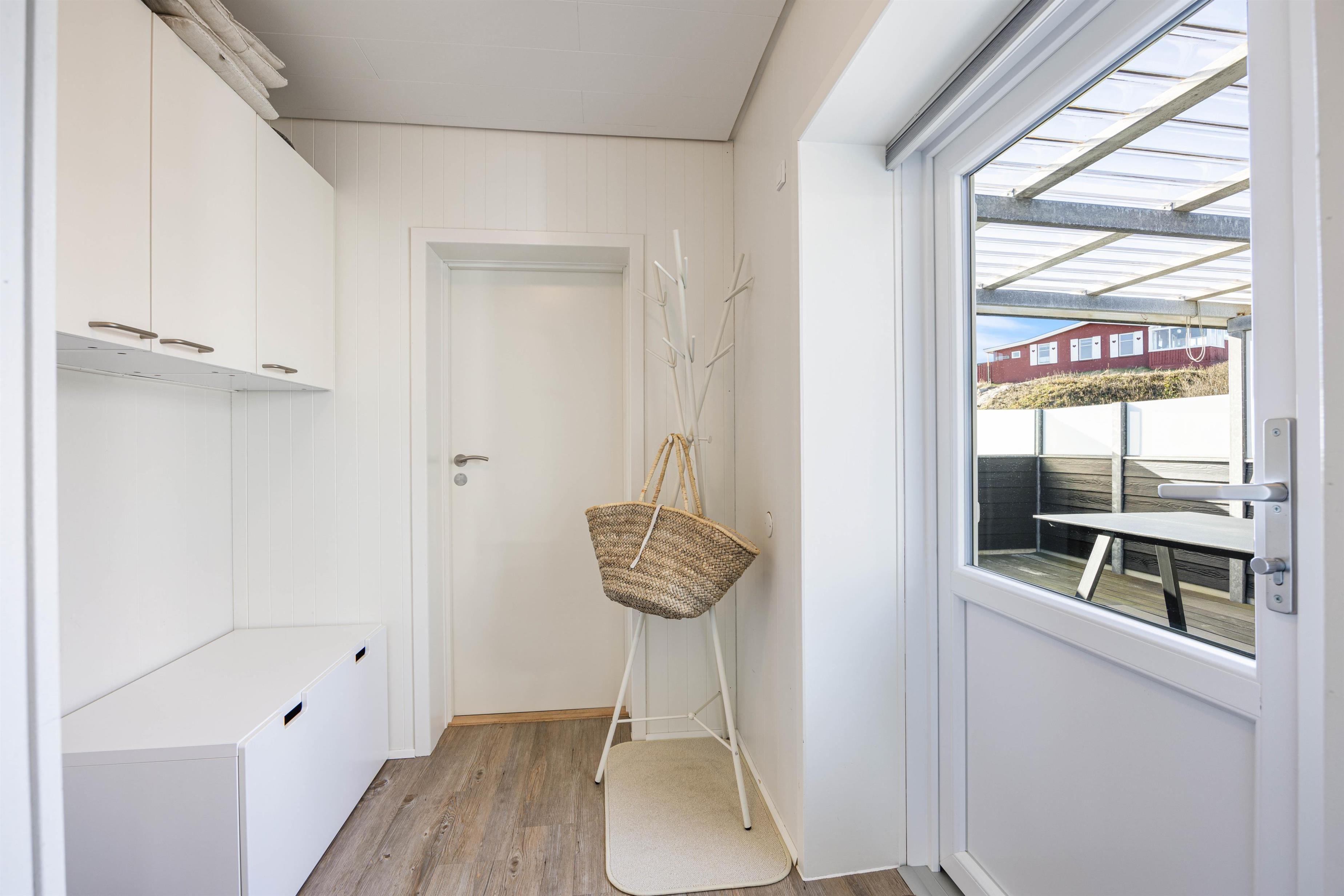 Sommerhusets indretning er omhyggeligt planlagt med tre gode rummelige soveværelser, der hver er udstyret med en dobbeltseng, hvilket giver mulighed for at 4 glade feriegæster kan holde en god ferie sammen her. Sommerhuset har to badeværelser med gulvvarme, som giver en ekstra følelse af luksus på de kølige morgener. Derudover er der en praktisk udebruser, som er perfekt til at skylle sandet af efter en dag på stranden. Brændeovnen i sommerhusets stue er med til at skabe hyggelige aftener, og en energibesparende luft til luft varmepumpe sikrer en behagelig indeklima hele året rundt.