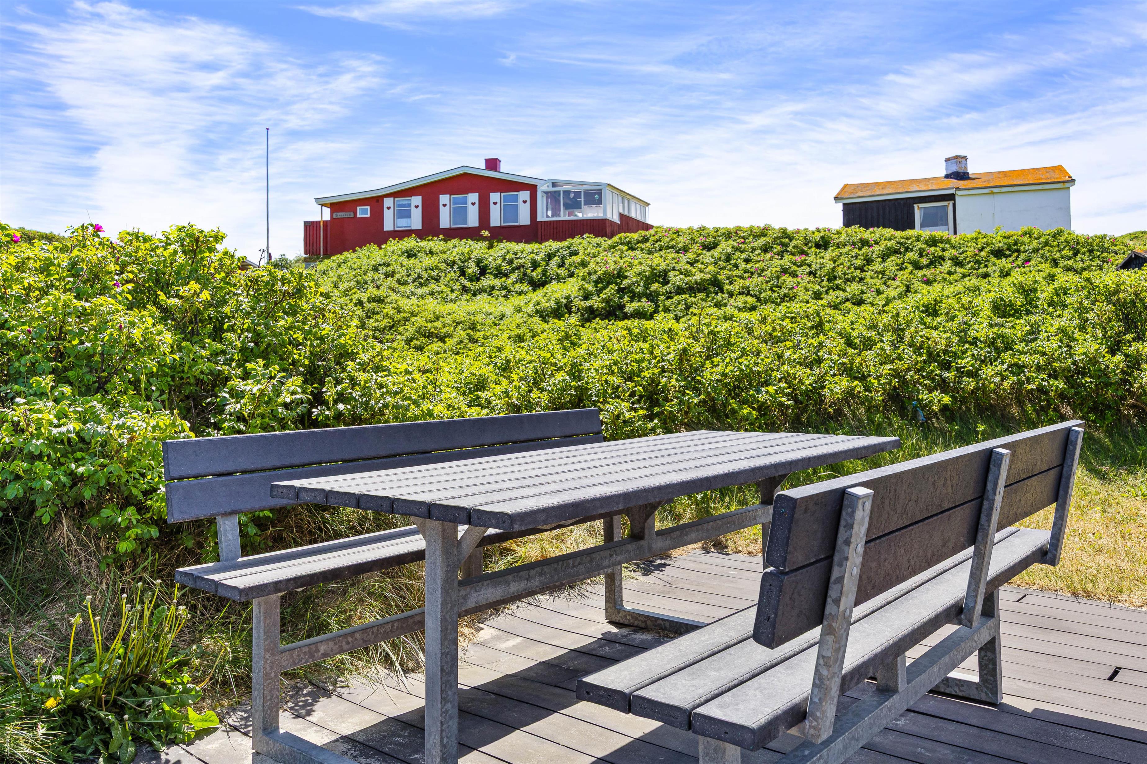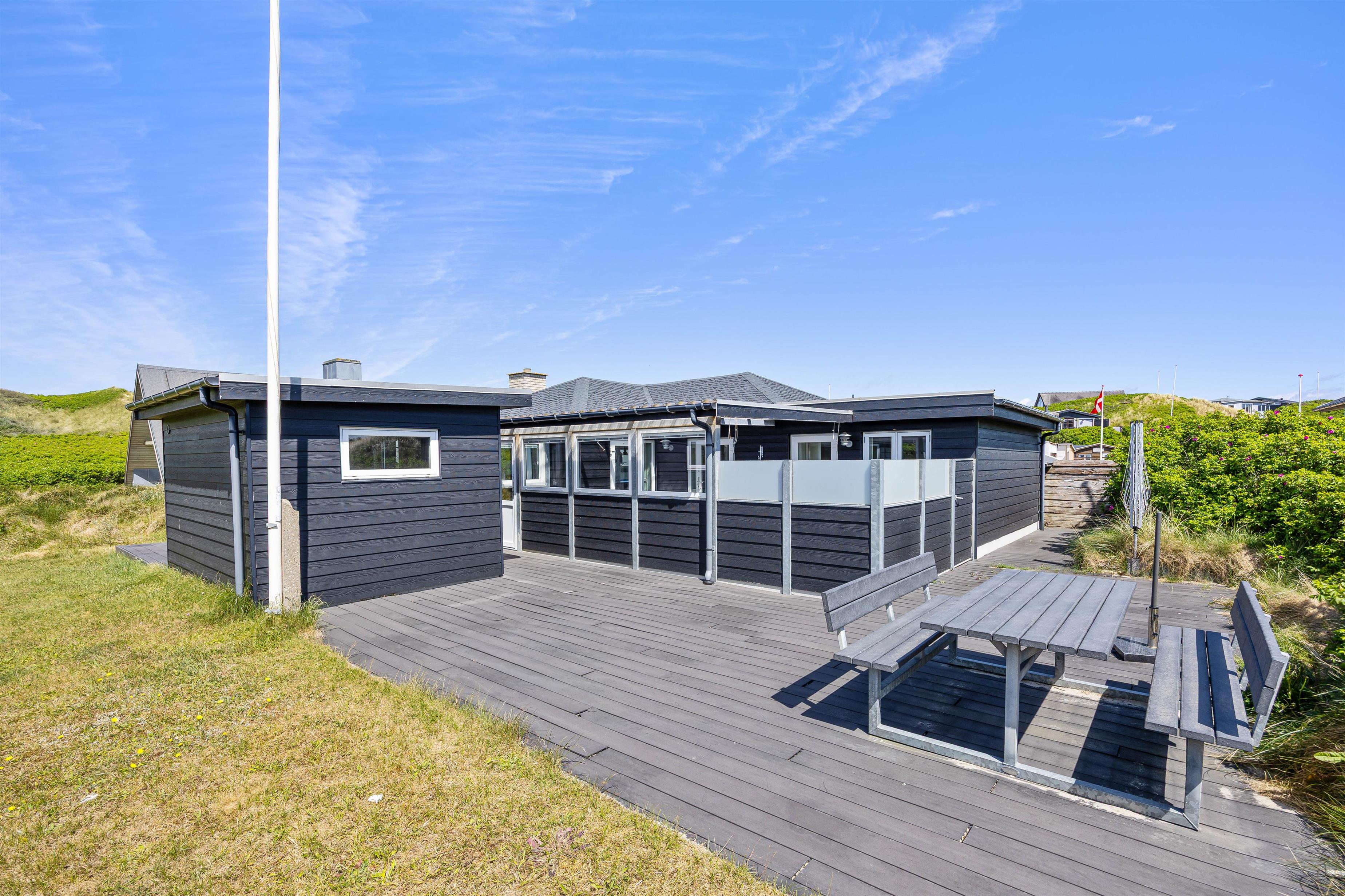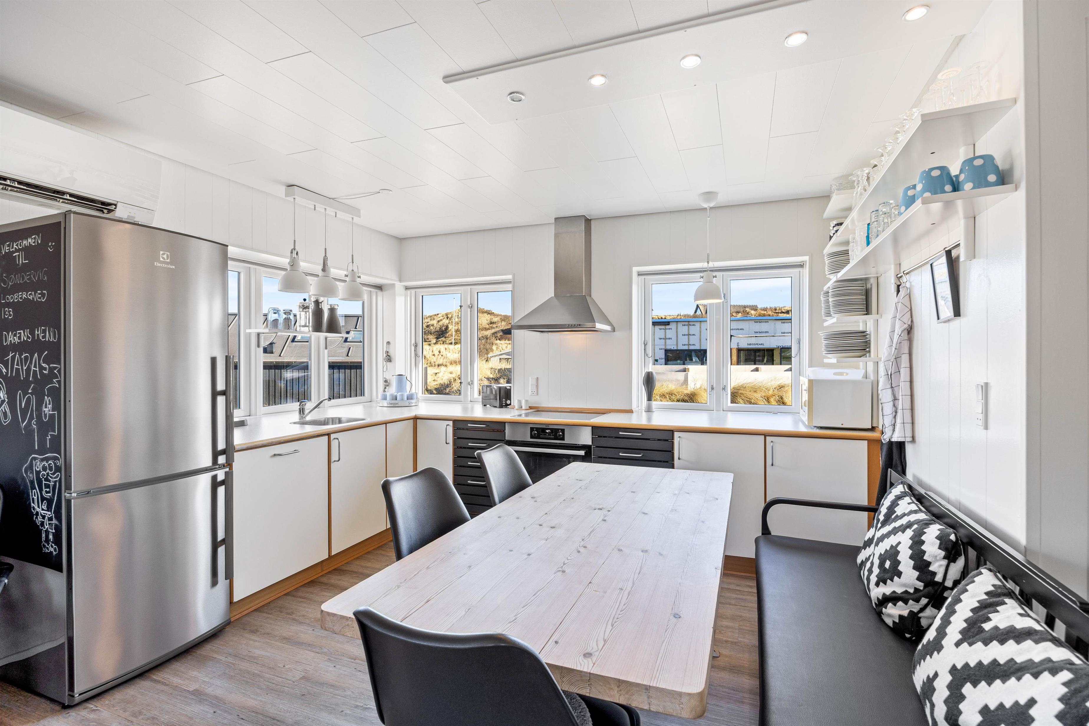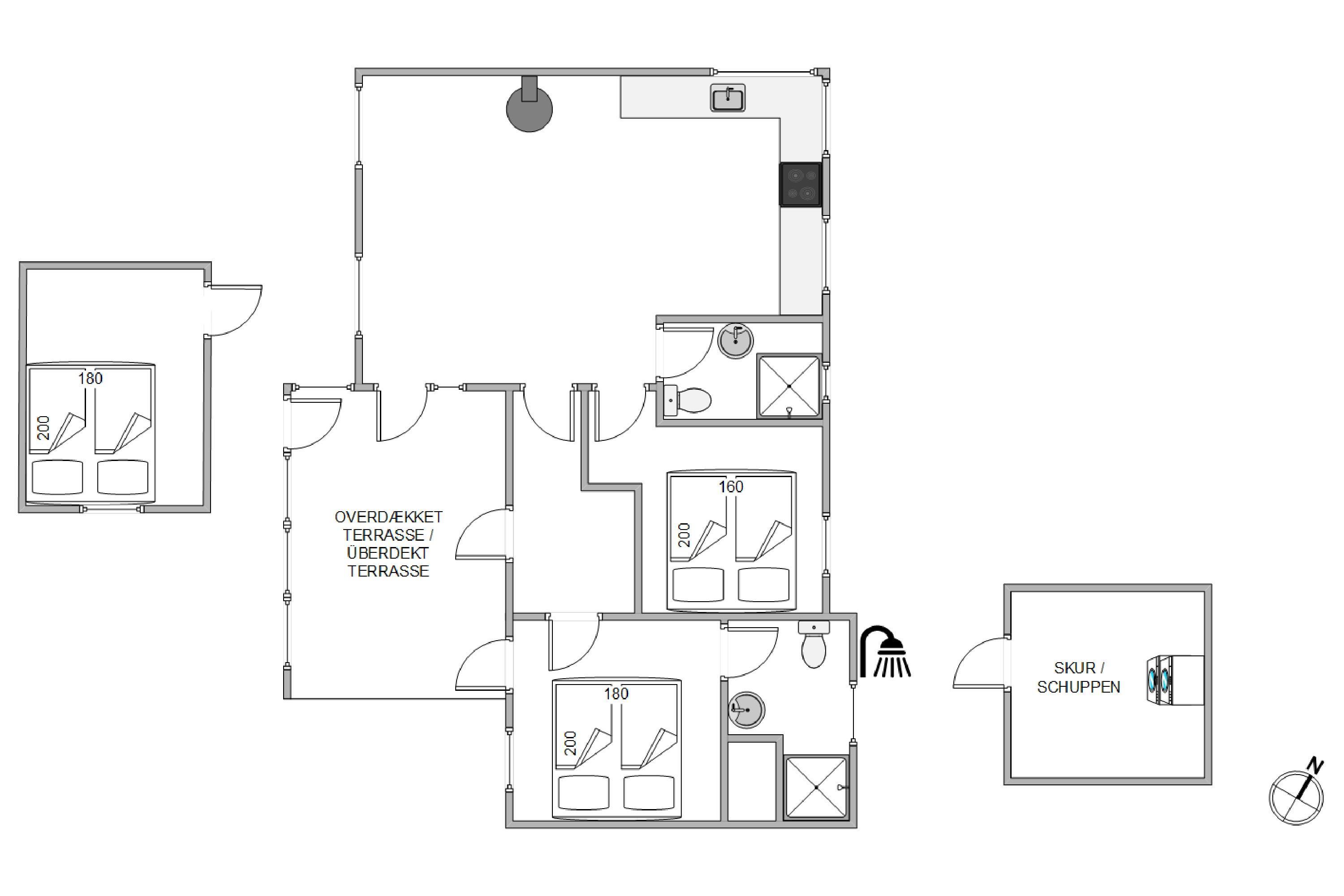 Sommerhusets indretning er omhyggeligt planlagt med tre gode rummelige soveværelser, der hver er udstyret med en dobbeltseng, hvilket giver mulighed for at 4 glade feriegæster kan holde en god ferie sammen her. Sommerhuset har to badeværelser med gulvvarme, som giver en ekstra følelse af luksus på de kølige morgener. Derudover er der en praktisk udebruser, som er perfekt til at skylle sandet af efter en dag på stranden. Brændeovnen i sommerhusets stue er med til at skabe hyggelige aftener, og en energibesparende luft til luft varmepumpe sikrer en behagelig indeklima hele året rundt.