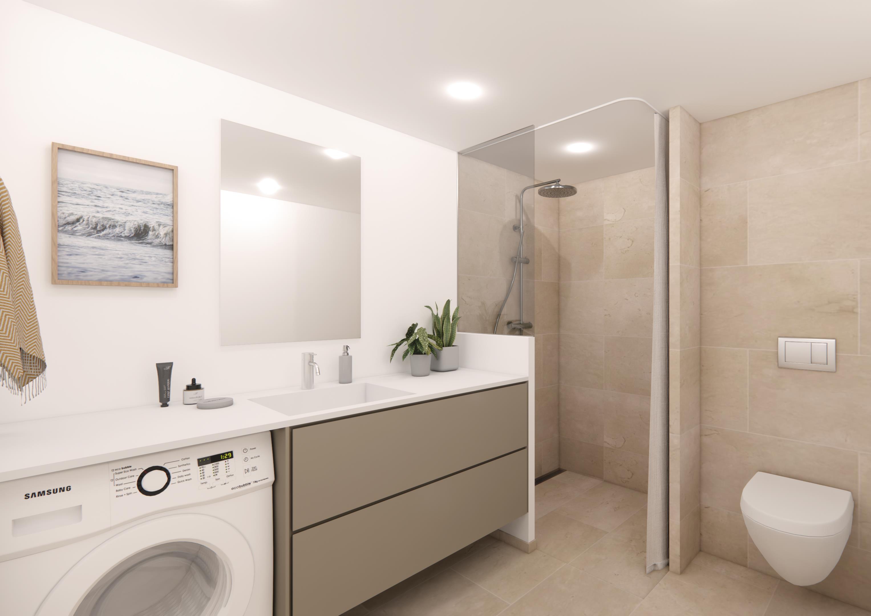 Køkkenet er fuldt udstyret med alt, hvad I behøver til feriens måltider – herunder opvaskemaskine, så I kan bruge tiden på nærvær frem for praktiske gøremål. Derudover er boligen udstyret med en kombi vaskemaskine og tørretumbler, som gør det nemt at holde feriegarderoben frisk under hele opholdet.
