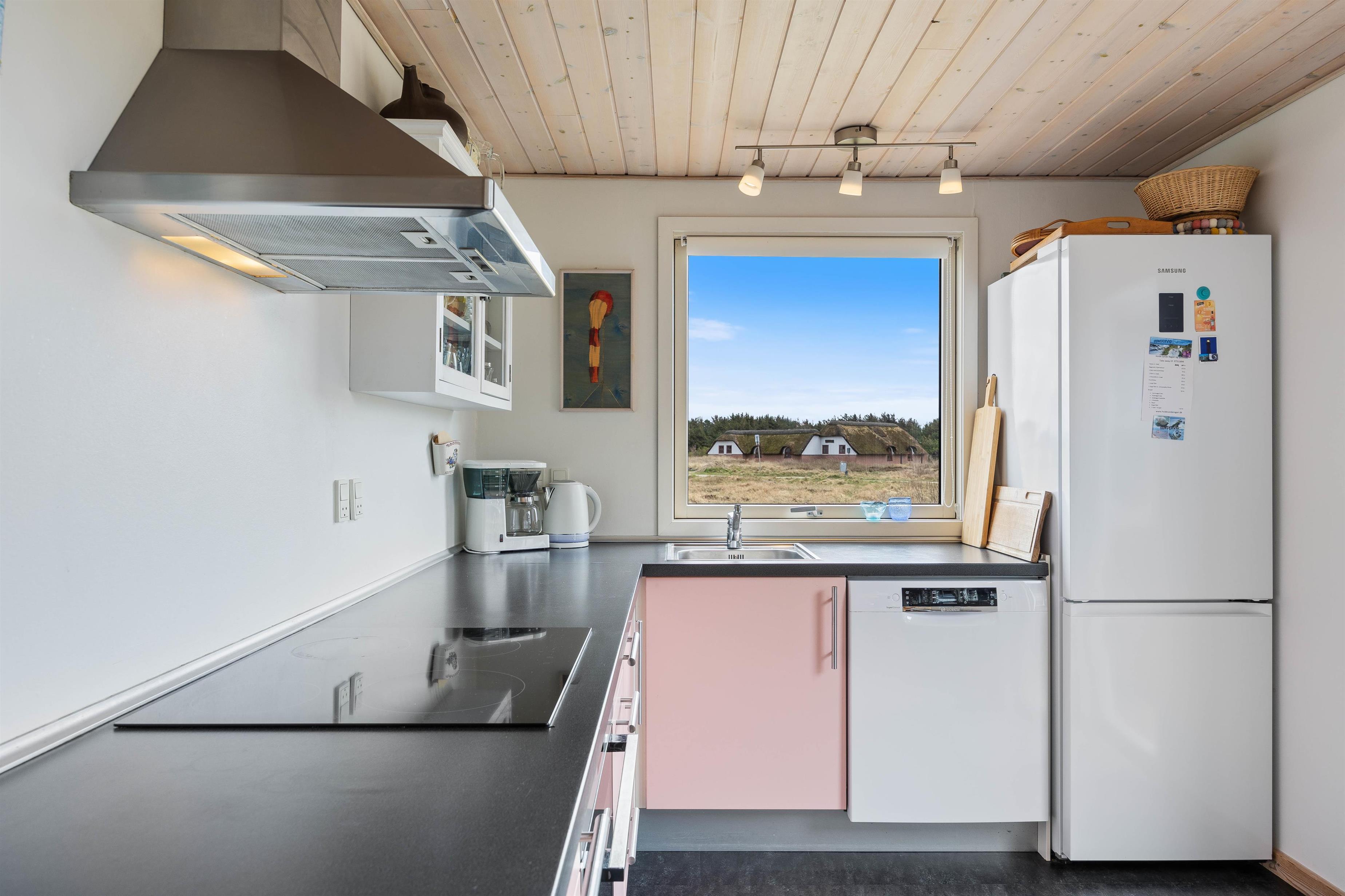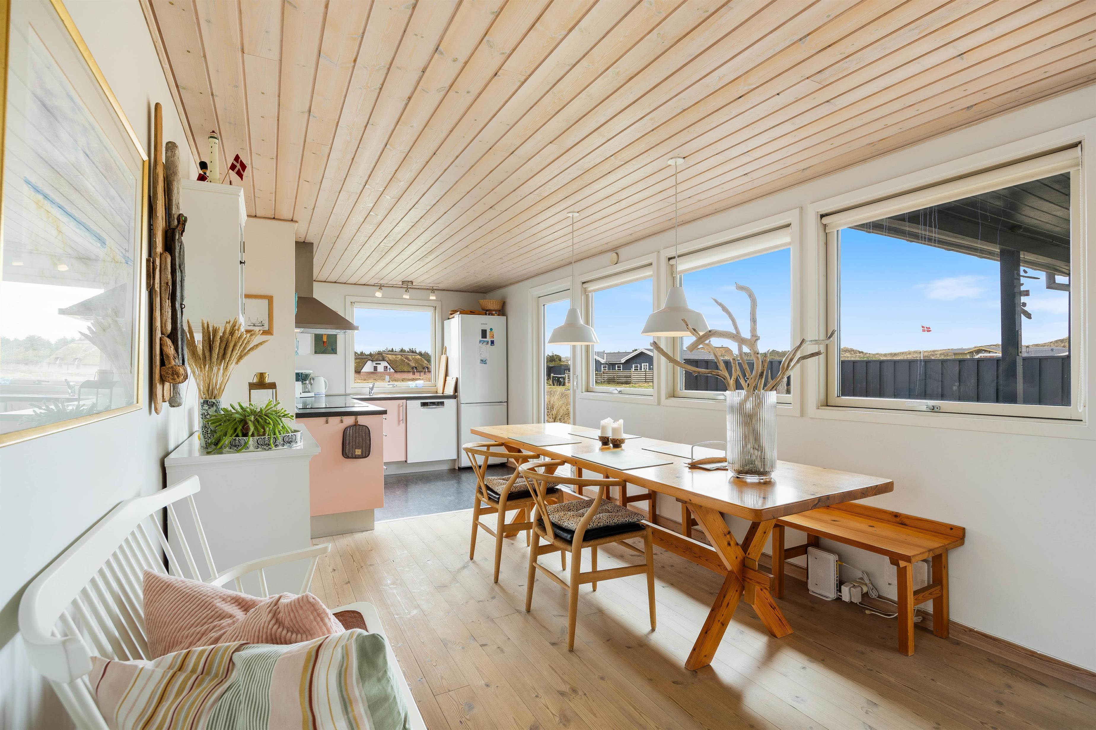 Yderligere er køkken og spiseafdelingen i et rum, hvilket giver en dejlig åbenhed, hvor hele familien kan tilbringe mange dejlige ferietimer sammen. Sommerhuset er derfor ideelt til en lille familie med små børn, som ønsker en god ferie i Søndervig.