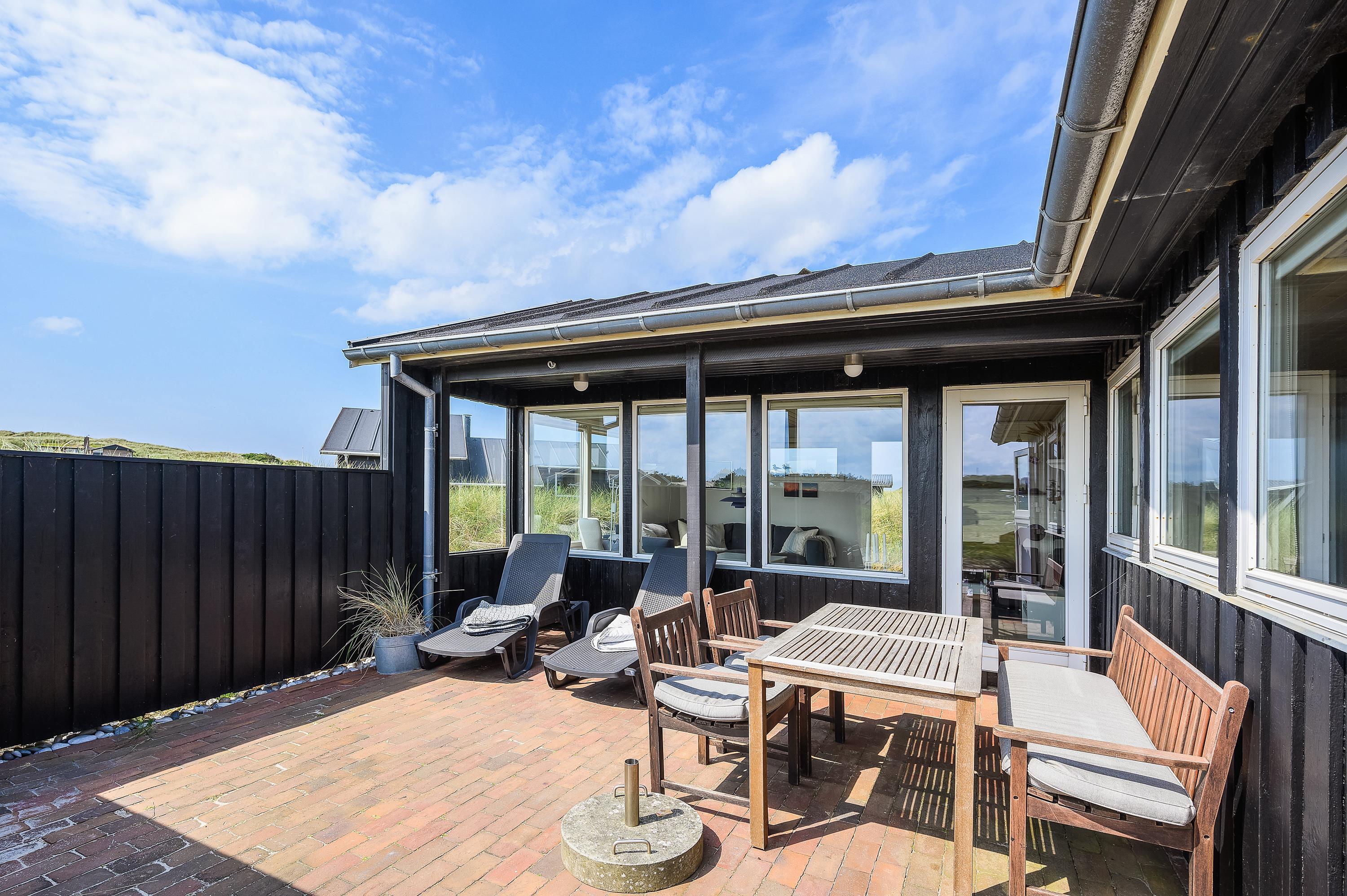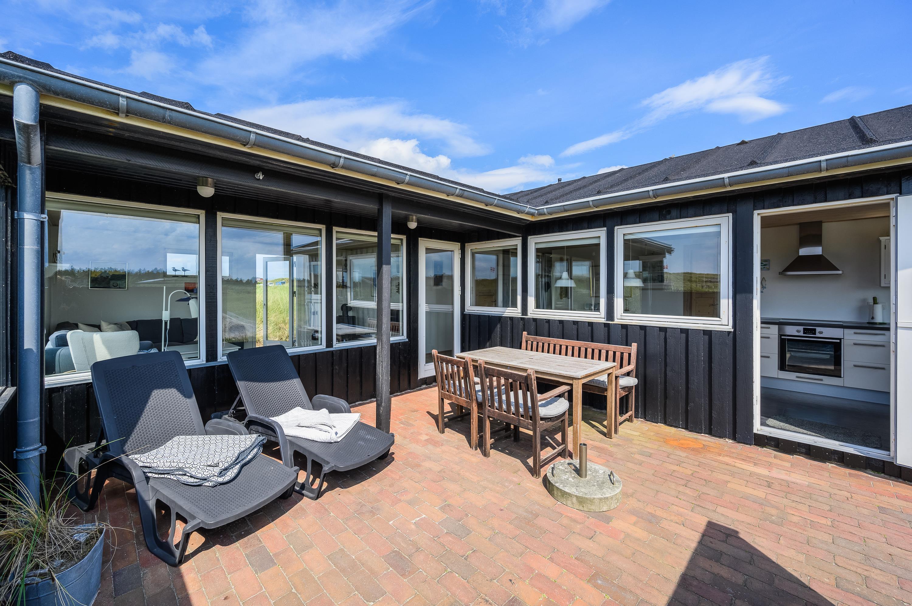 Sommerhuset har hele to terrasser, som er udstyret med alt det I behøver for at nyde nogle dejlige feriedage. Her finder I bl.a. diverse havemøbler, liggestole og ikke mindst en grill, som kan benyttes til at tilberede et lækkert måltid. Fra køkkenet og spisestuen er der direkte udgang til den hyggelige syd- vestvendte terrasse. Sommerhuset har også en overdækket nordvendt terrasse, hvor I har helt uforstyrret kan slappe af og nyde den friske vesterhavsluft.