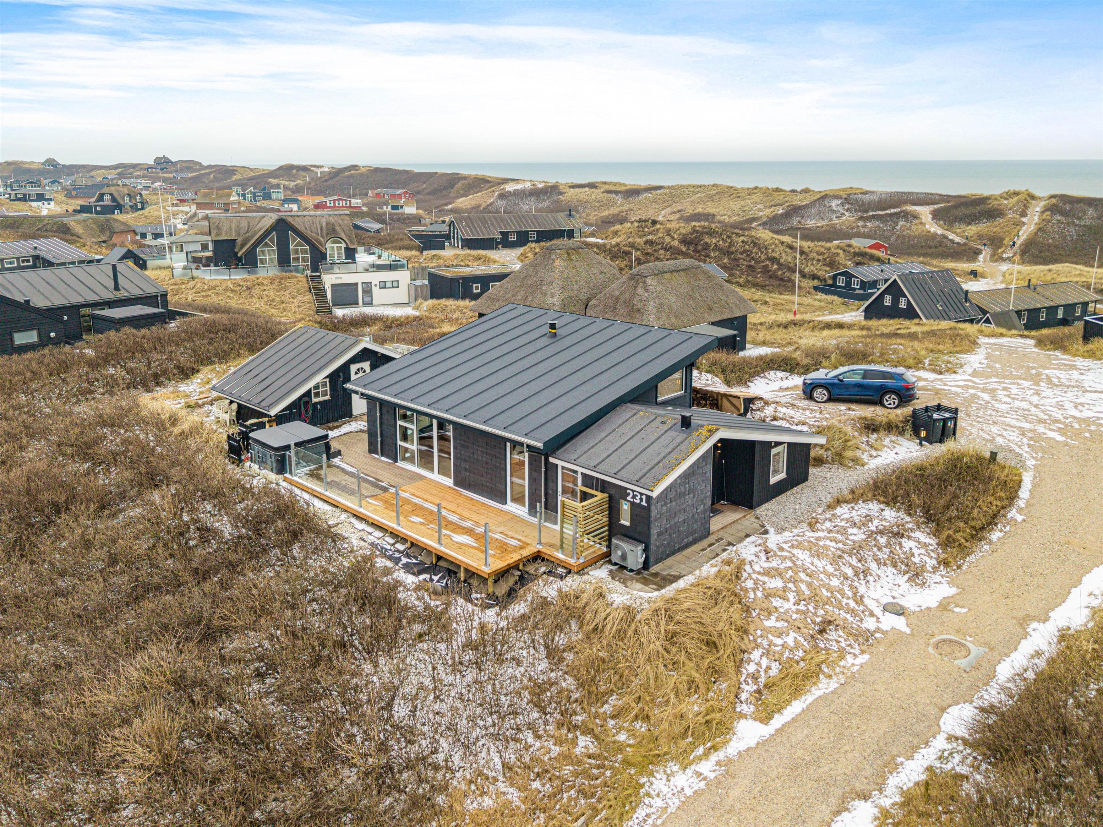 Feriehuset på Lodbergsvej 231 er særligt velegnet til både familier og hundeejere, da terrassen er lukket. Her kan I nyde ren afslapning i udespaen, mens I tager den smukke udsigt ind. For familiens yngste er der desuden en sandkasse, hvor der kan leges og bygges sandslotte i trygge rammer.