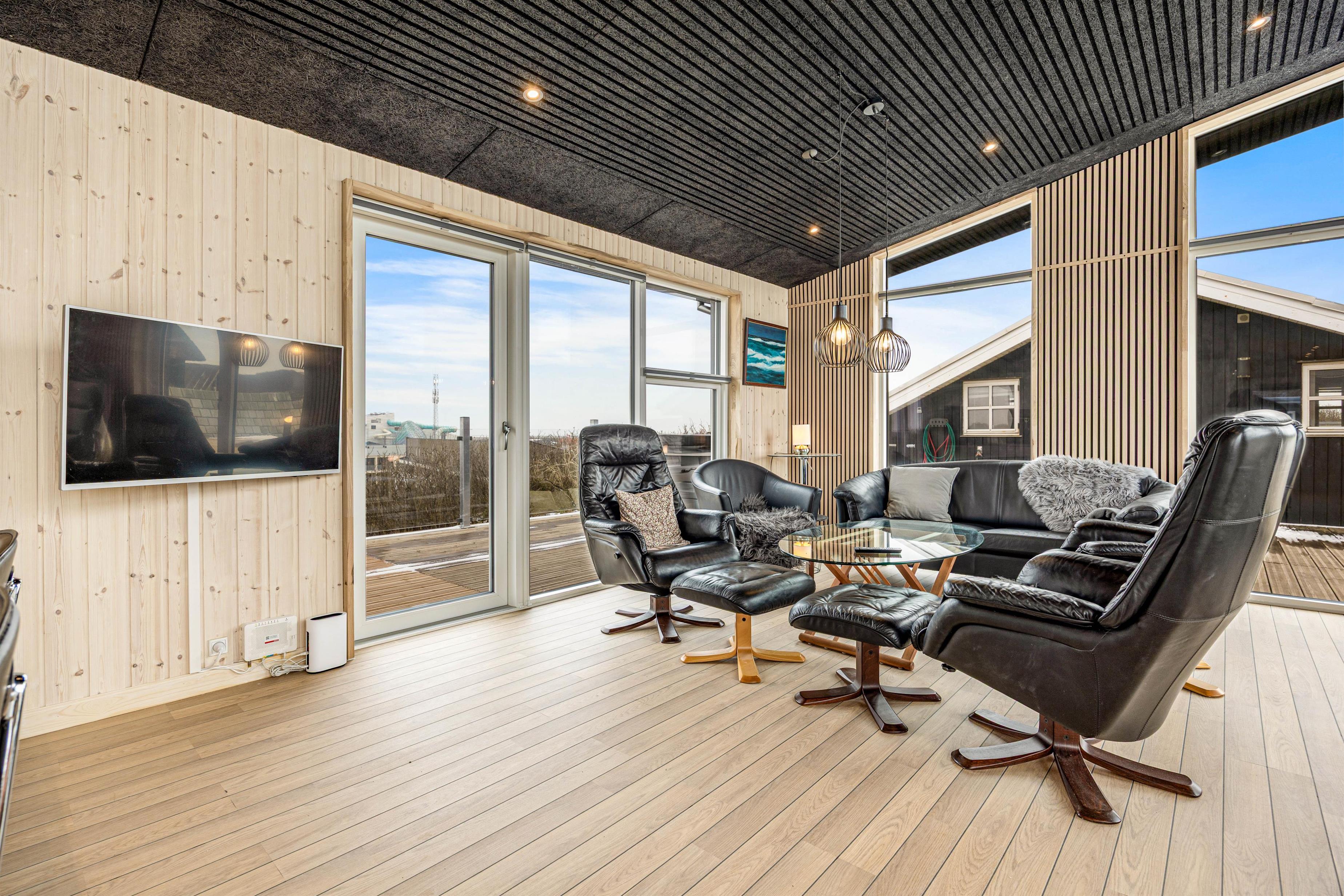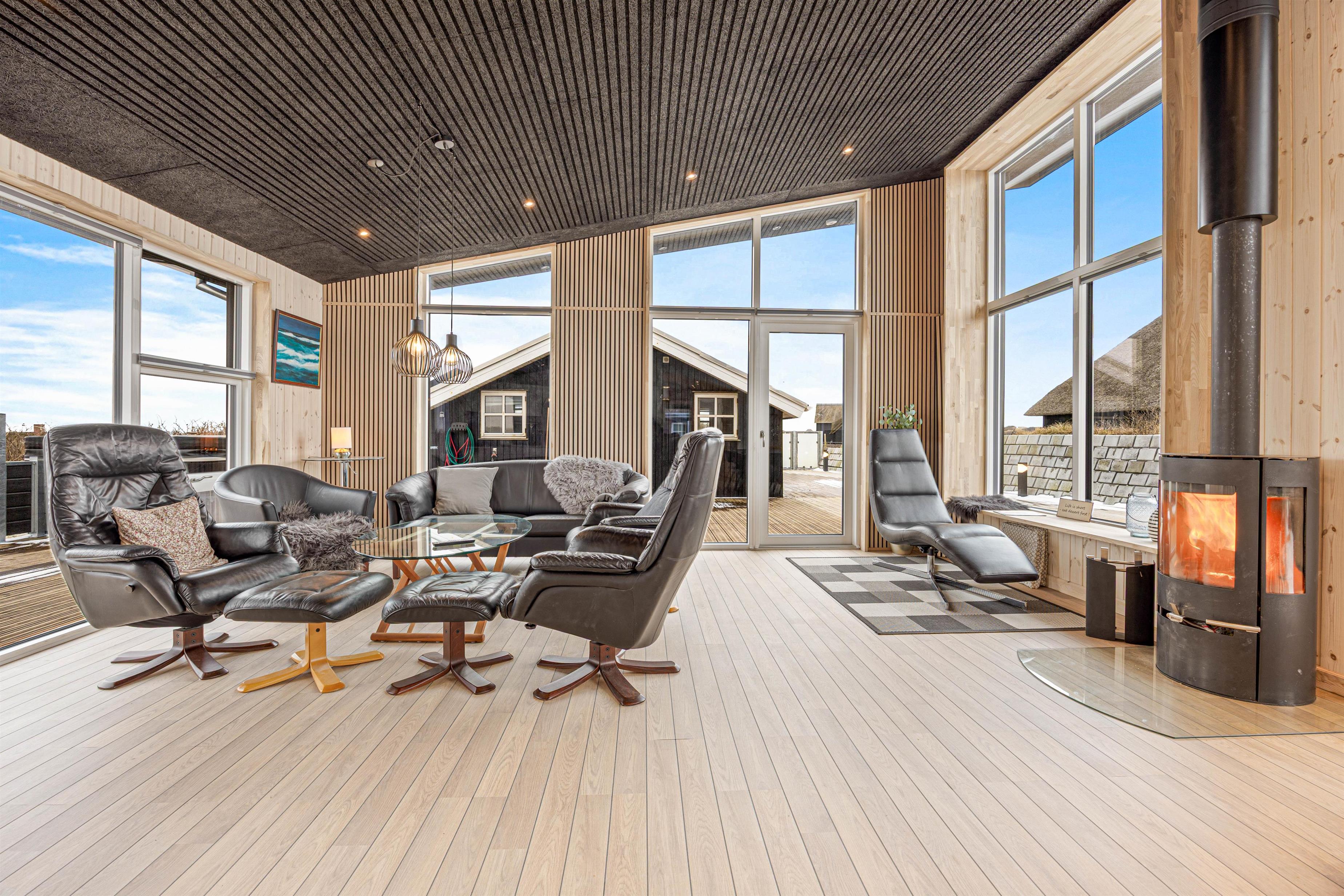 I den indbydende stue kan I slå jer ned og nyde udsigten gennem de store vinduer, der lukker masser af lys ind. Tænd op i brændeovnen med gratis brænde, læn jer tilbage og nyd den hyggelige stemning med ildens knitren i baggrunden.
